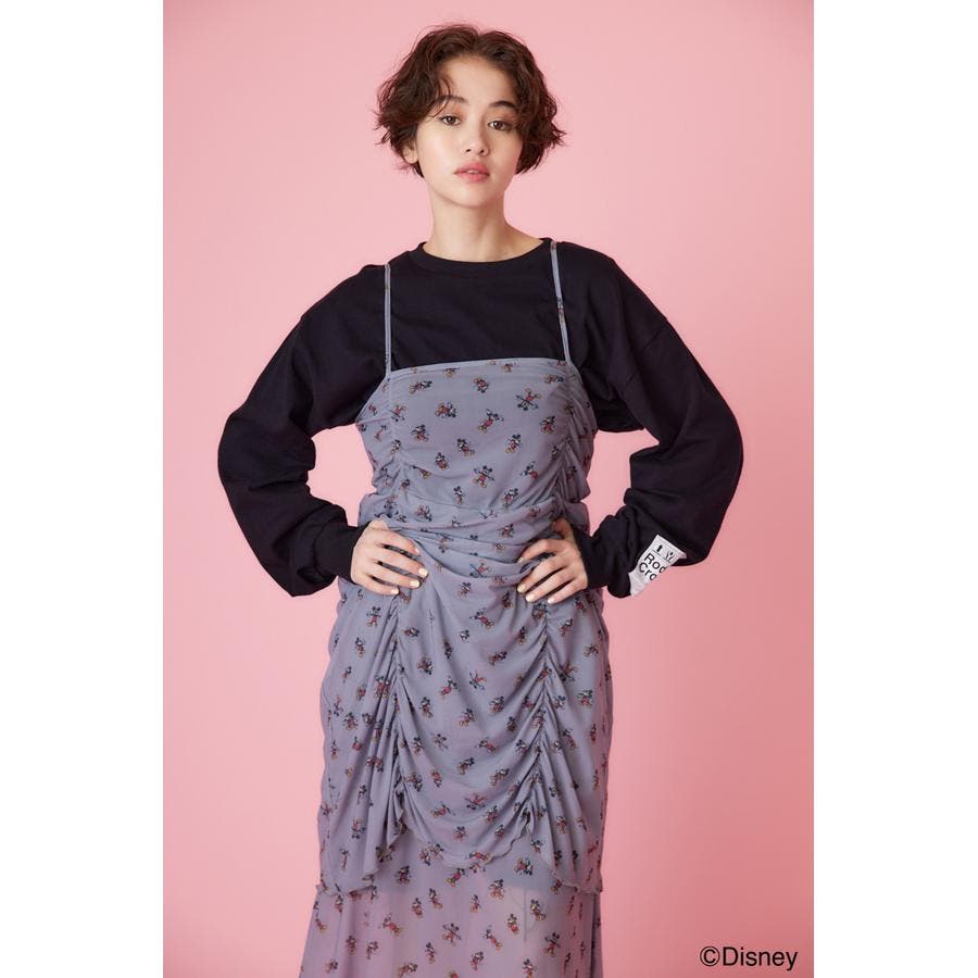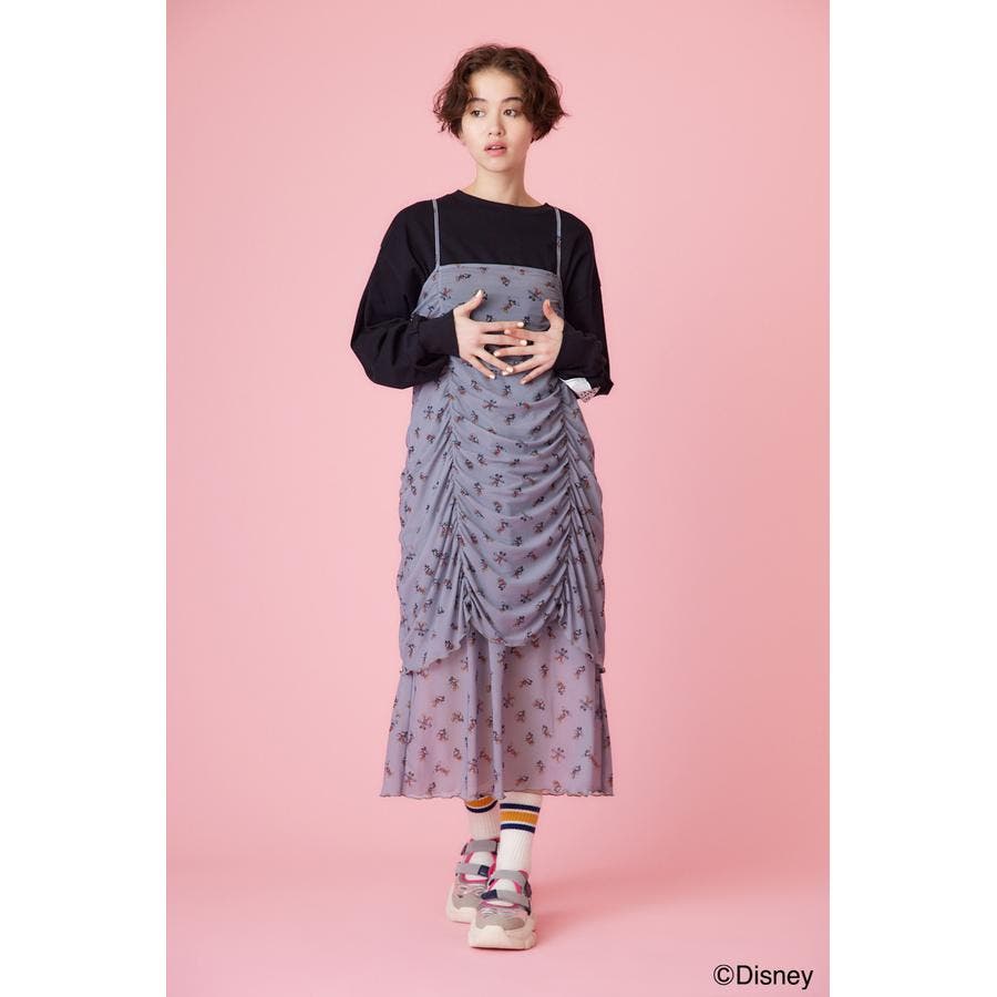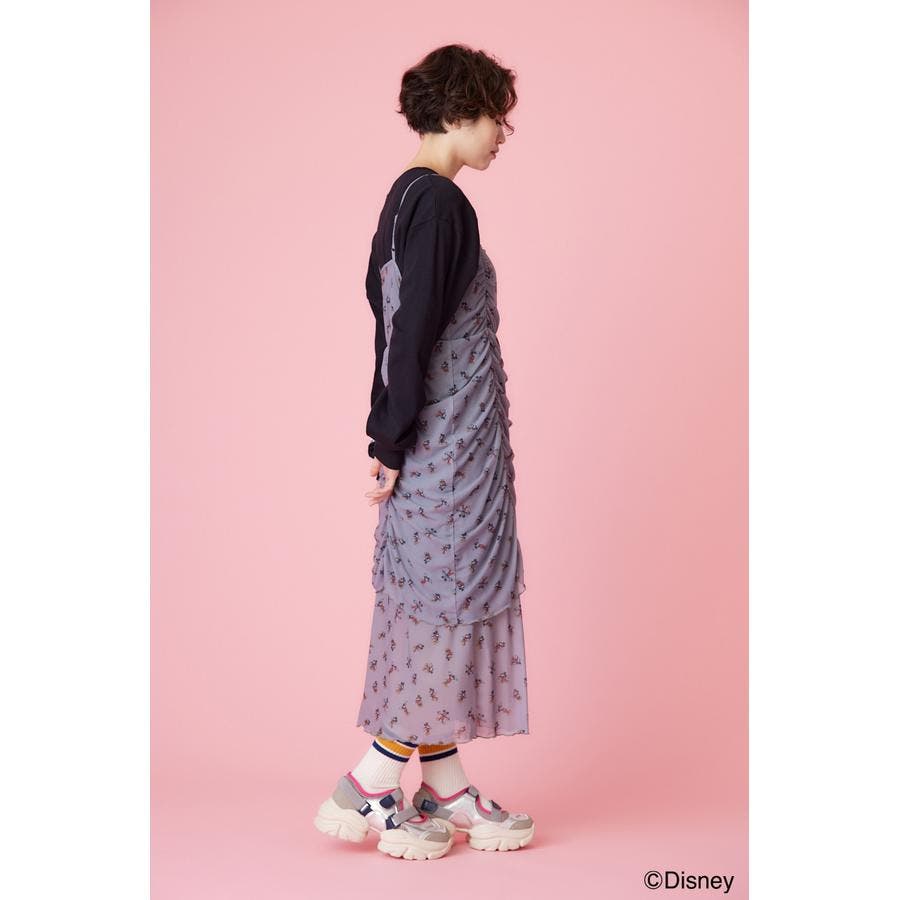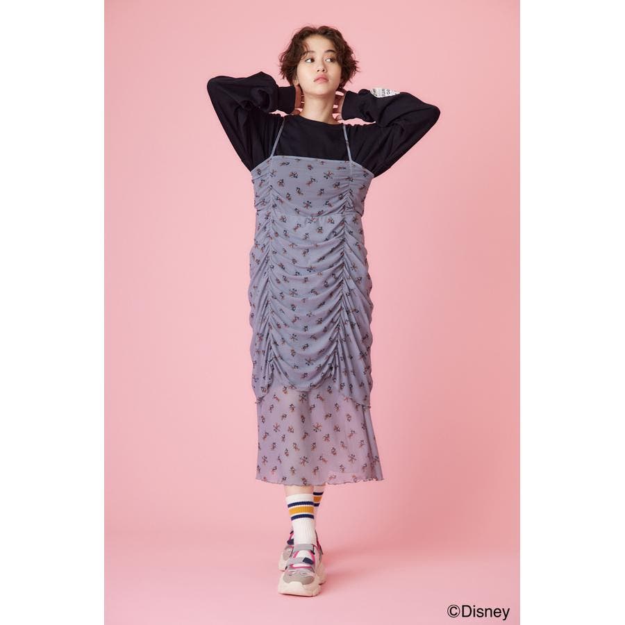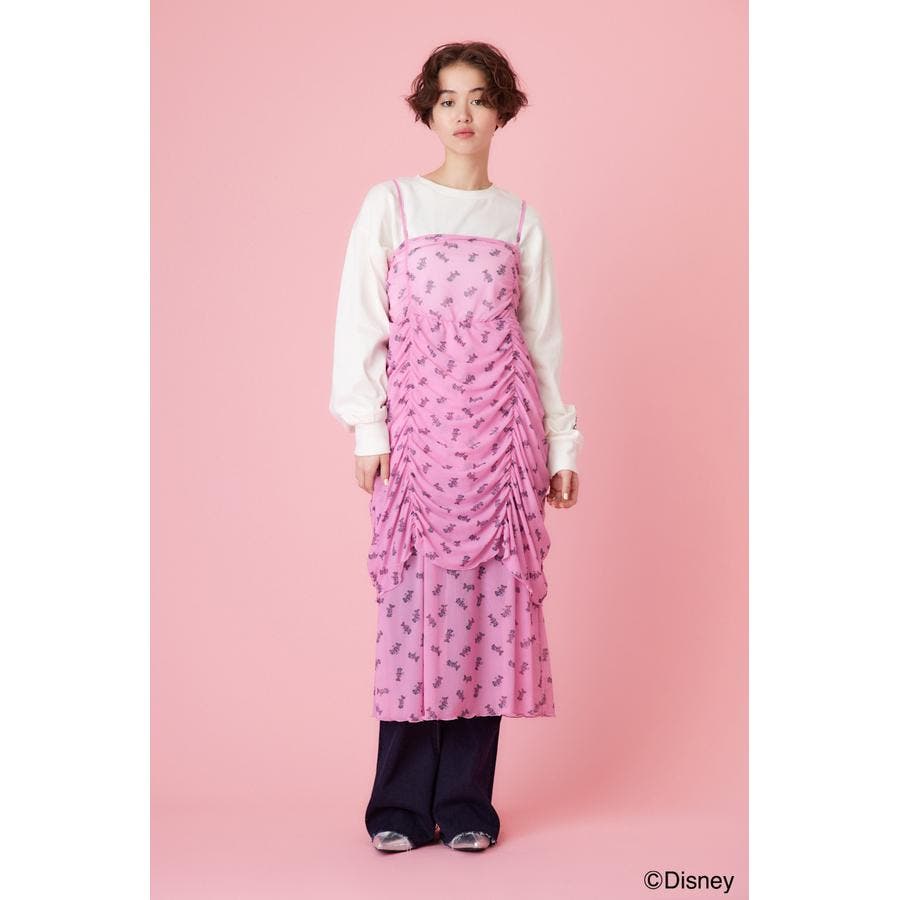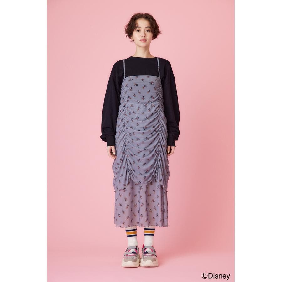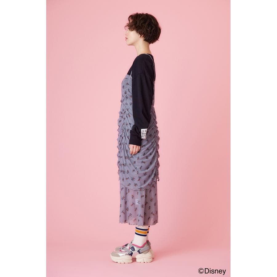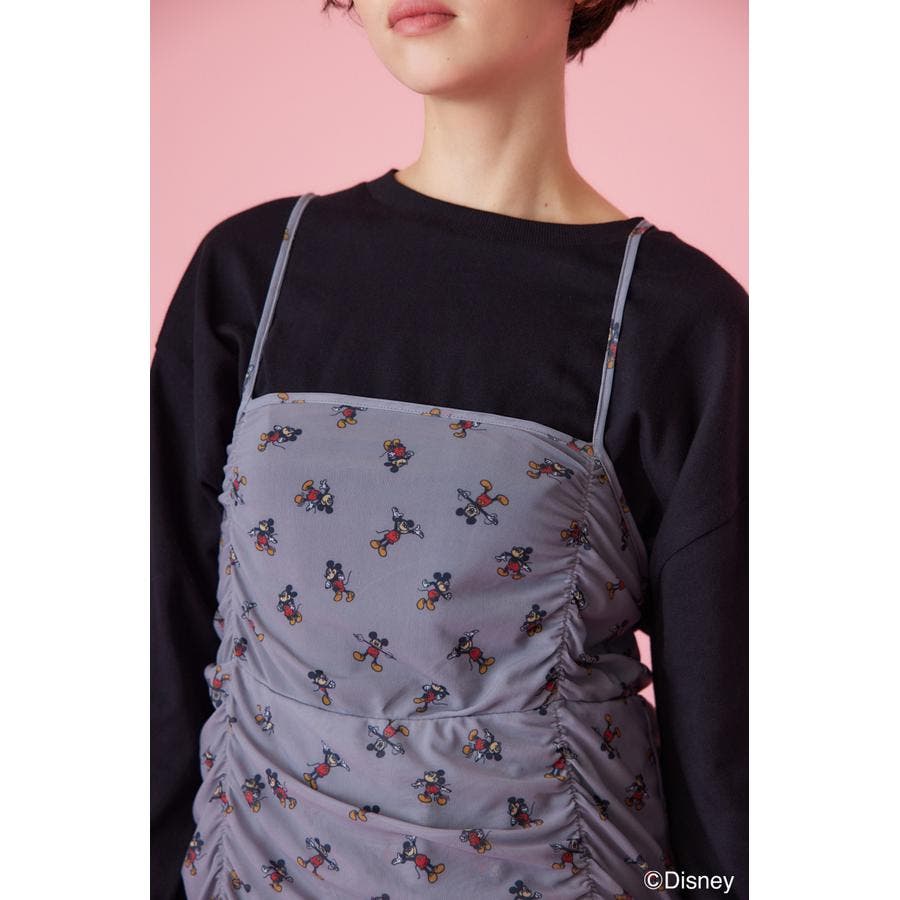 MICKEY&MINNIEデザインのシアーワンピース。柄GRYにはミッキーの総柄、柄PNKにはミニーの総柄が施されたデザインになっています。