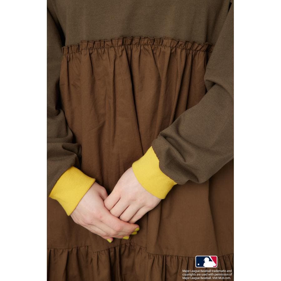 ロングスリーブ部分をカット天竺、スカート部分を布帛でドッキングしたリメイクのような作りでカジュアル感を演出。それぞれの球団カラーでまとめた1カラー1デザインのアイテム。
