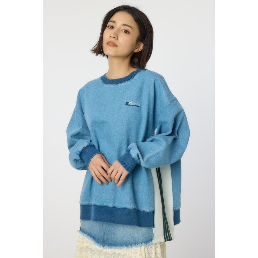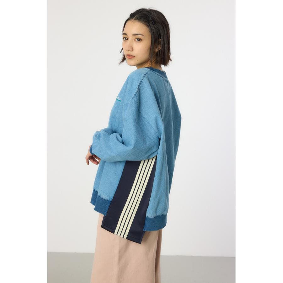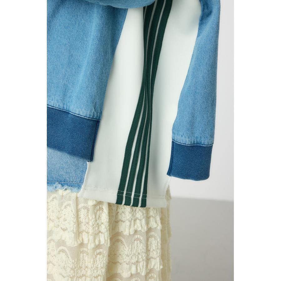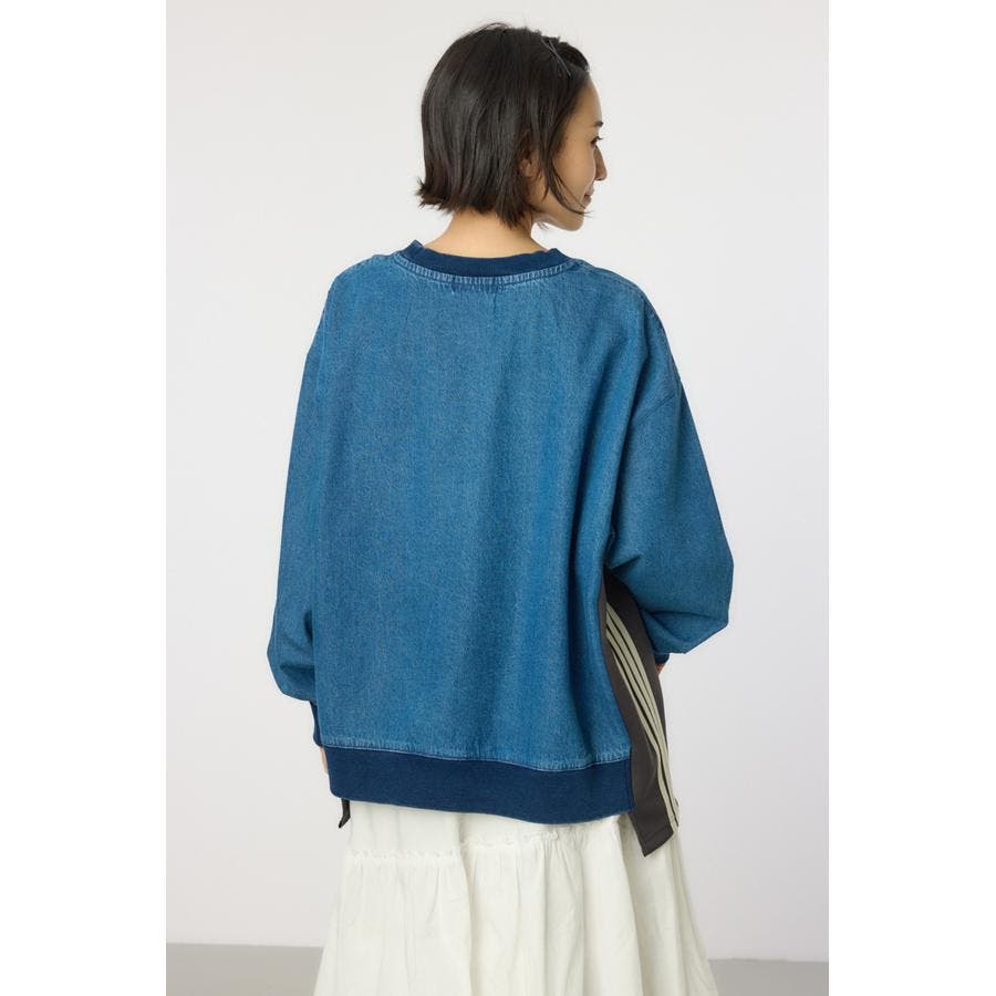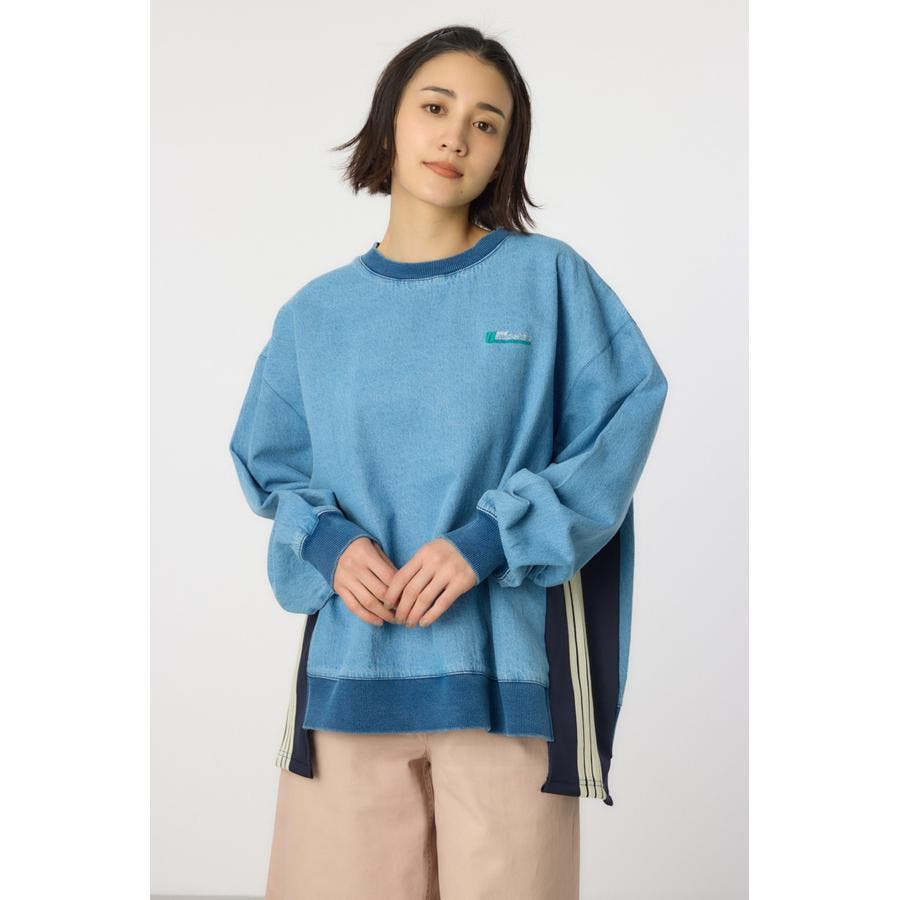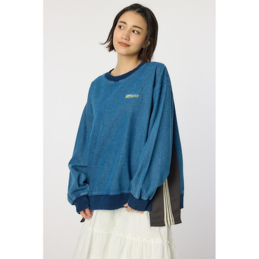 デニムのプルオーバーにサイドをジャージとドッキングさせたリメイク風デザイン。