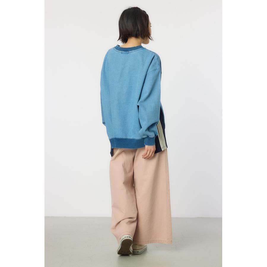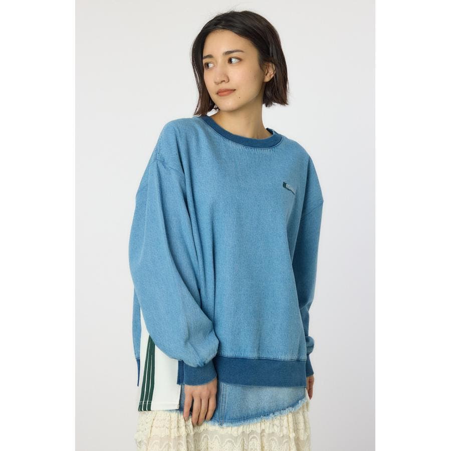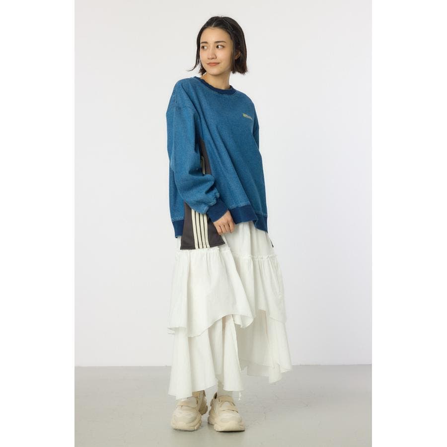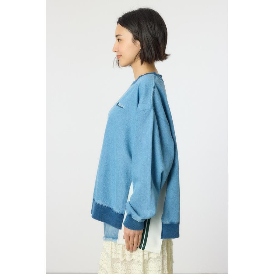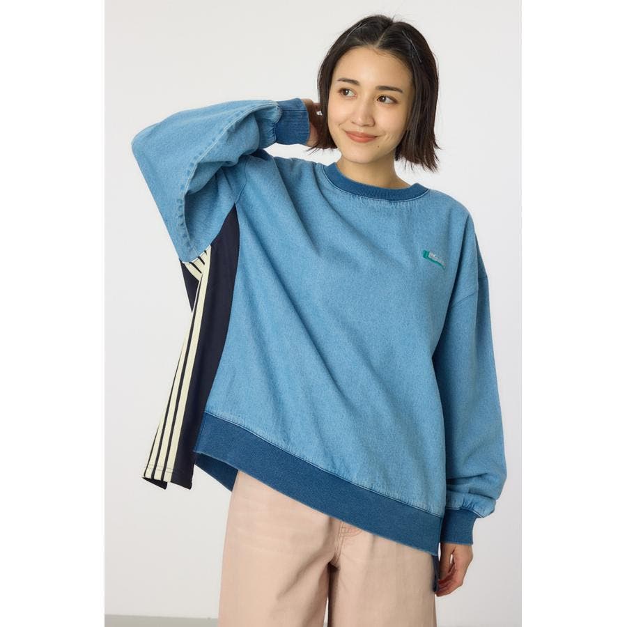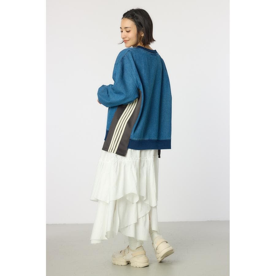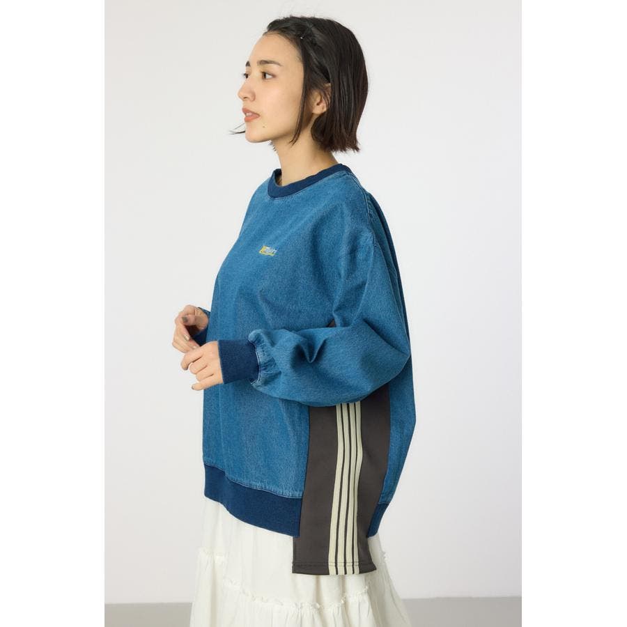 デニムのプルオーバーにサイドをジャージとドッキングさせたリメイク風デザイン。