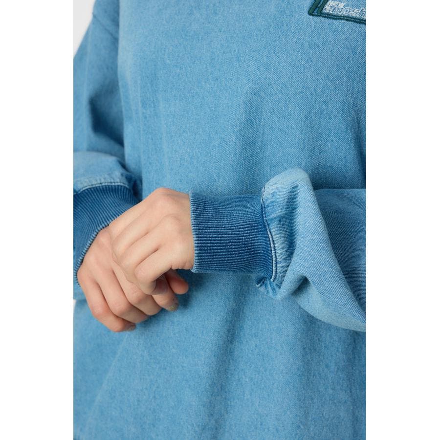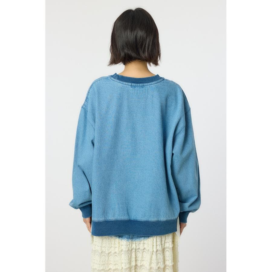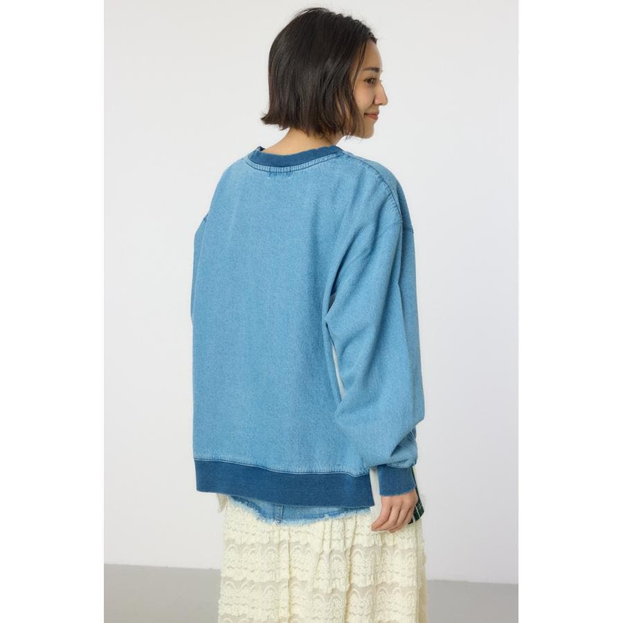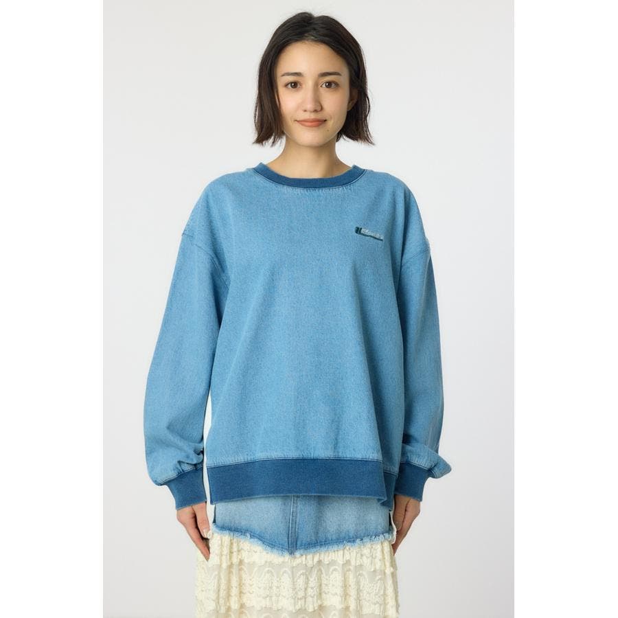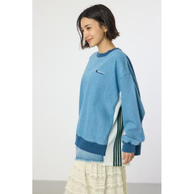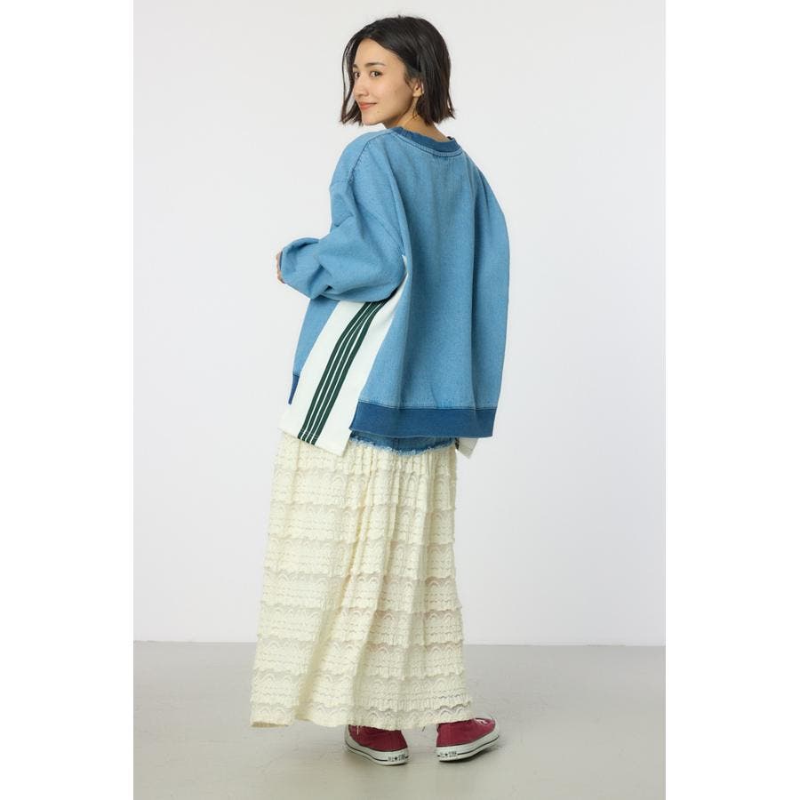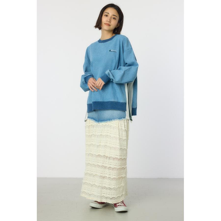 デニムのプルオーバーにサイドをジャージとドッキングさせたリメイク風デザイン。