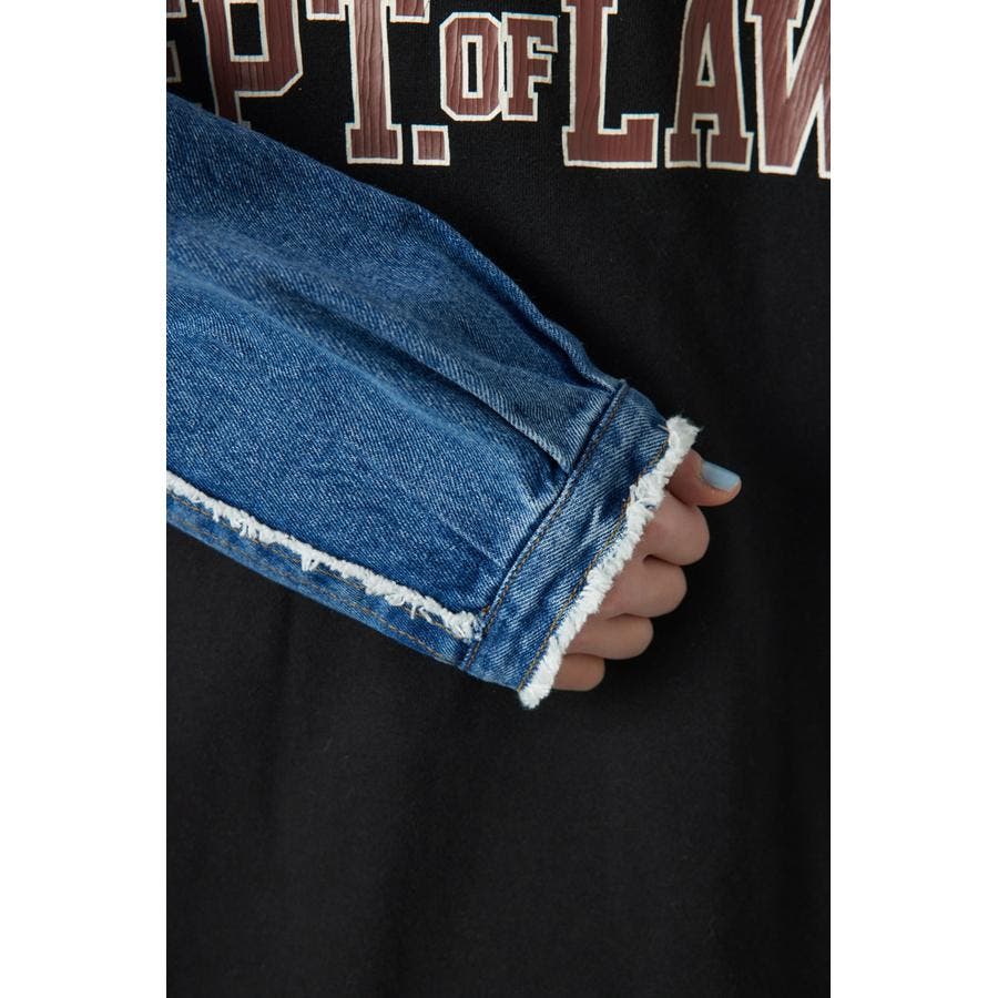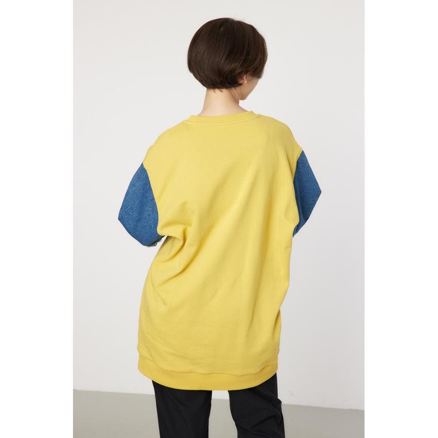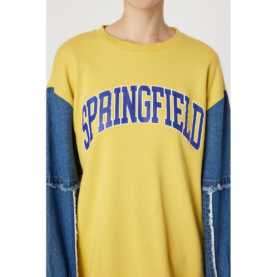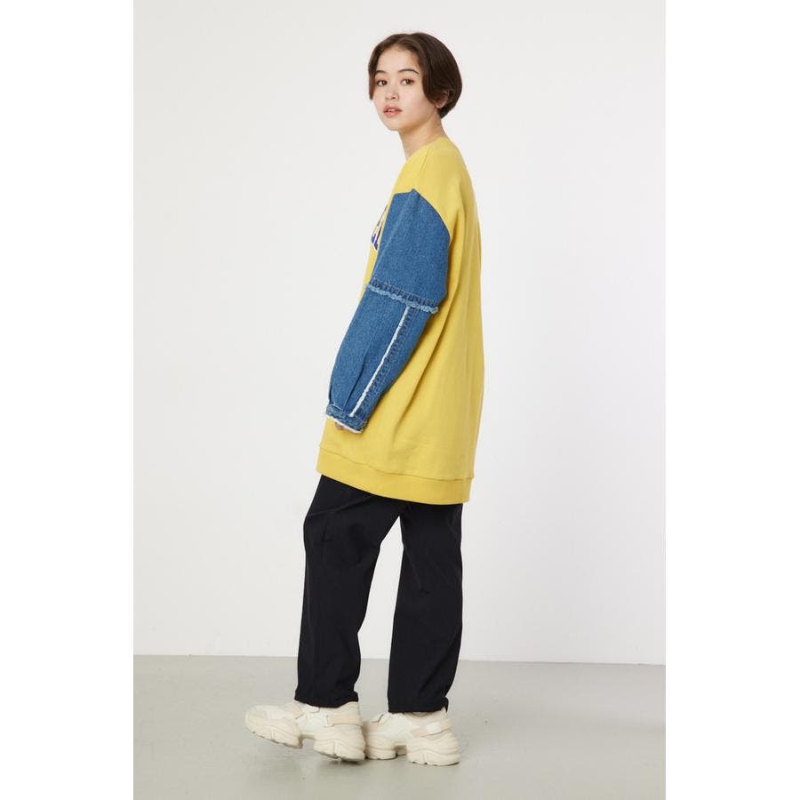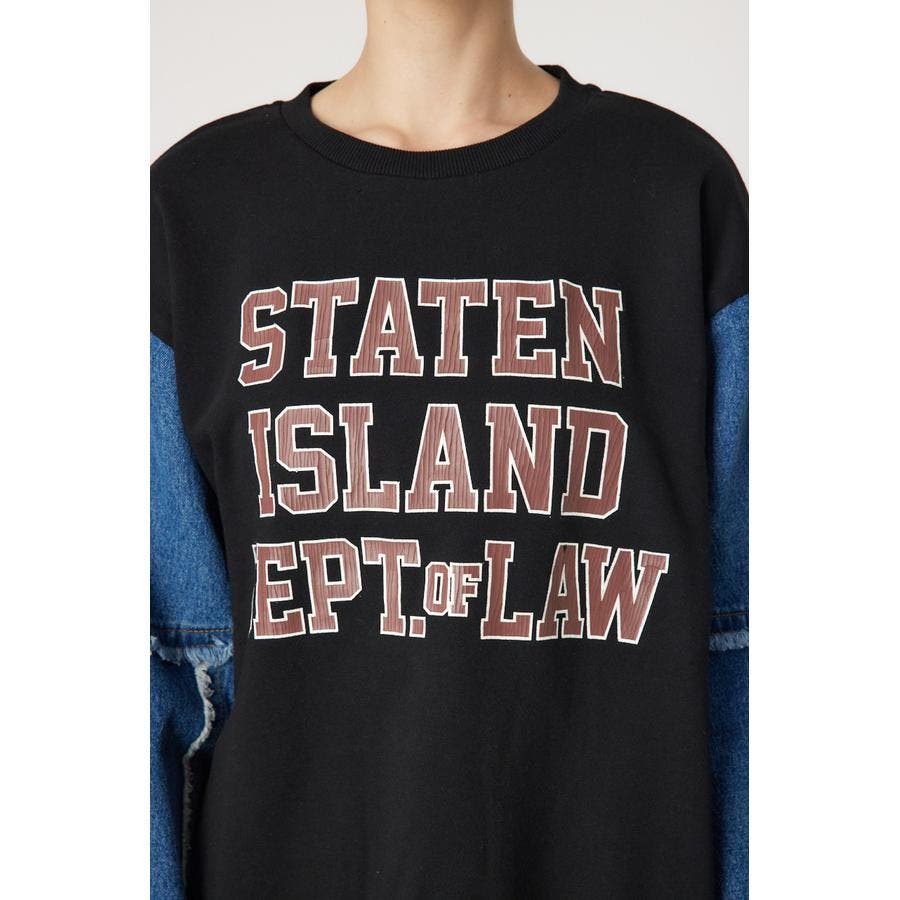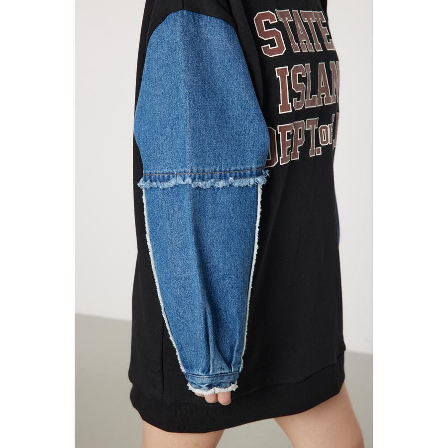 大人気のデニムドッキングアイテムが登場。スウェットワンピースとデニムジャケットをドッキングしたようなデザインのワンピース。カラーによって異なるカレッジデザインがポイント。