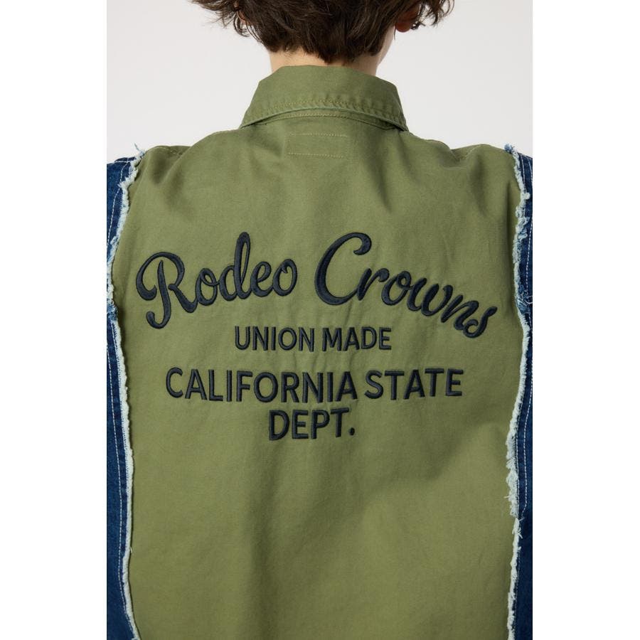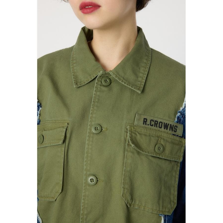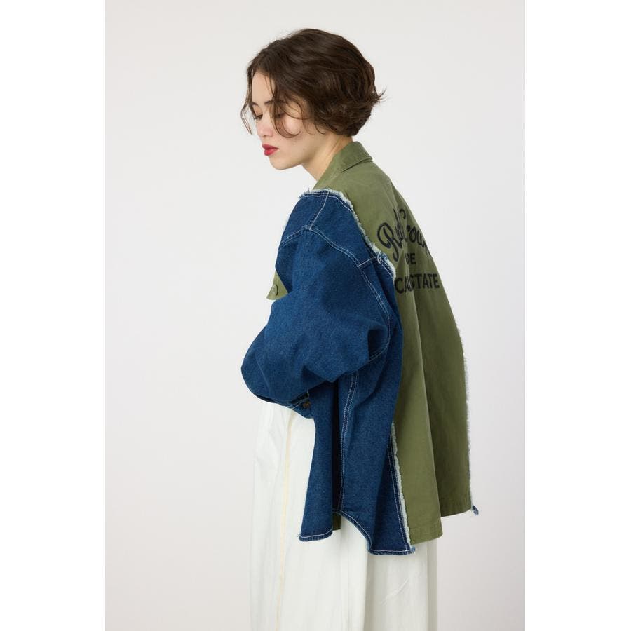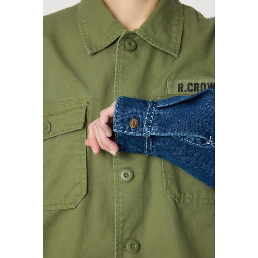 デニムとツイル生地がドッキングされたリメイクライクなミリタリーシャツです。