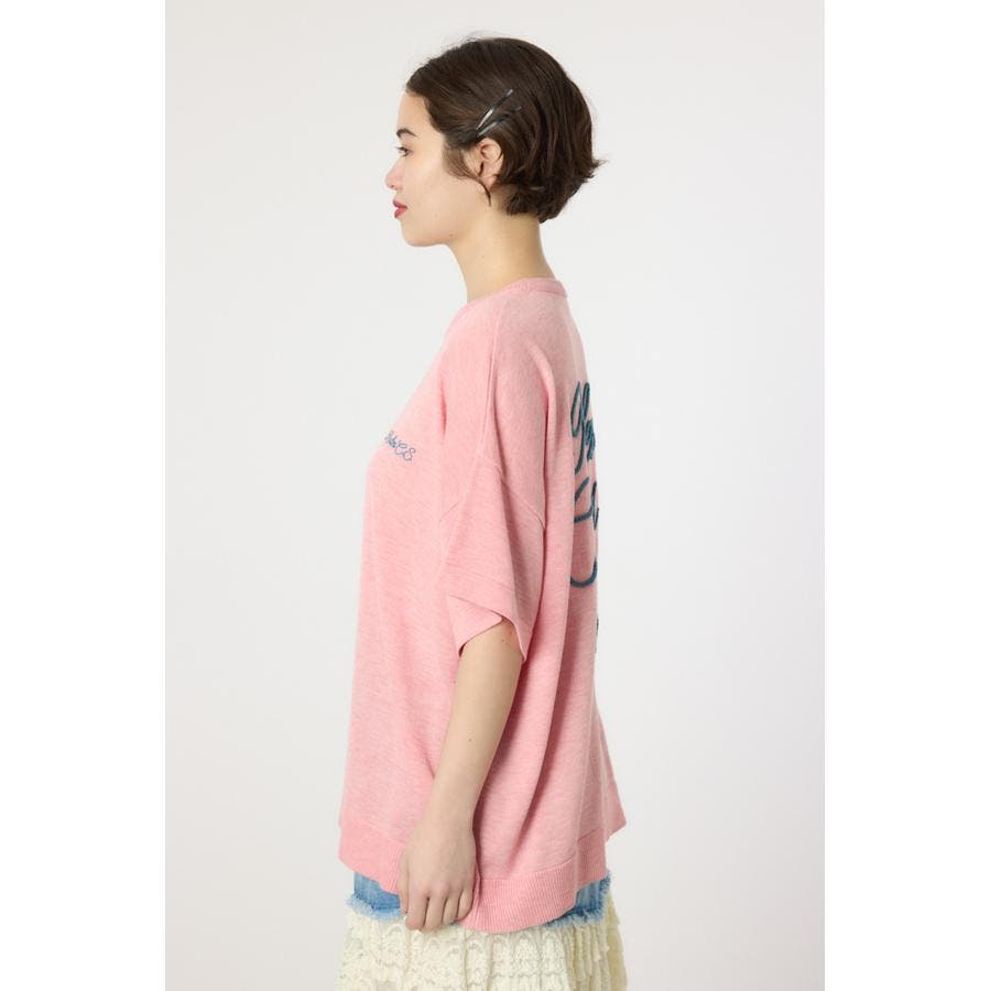 トレンド感のあるバックのロープ刺繍ロゴが目を惹くニットトップスです。