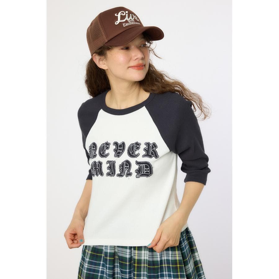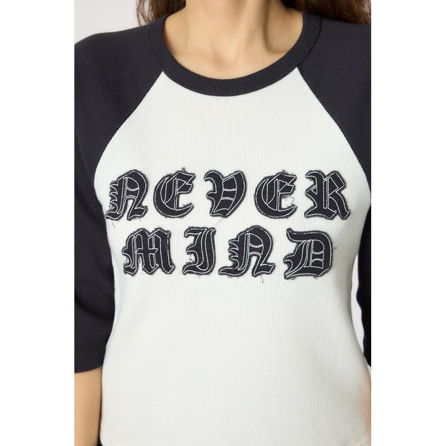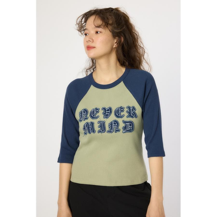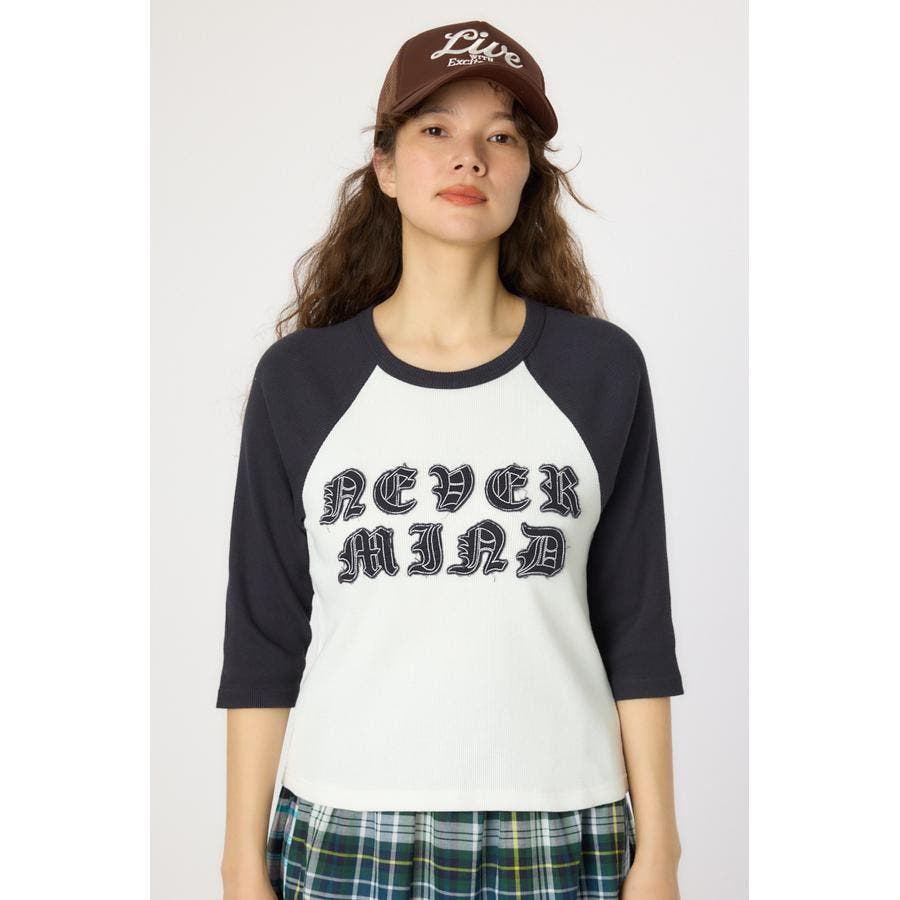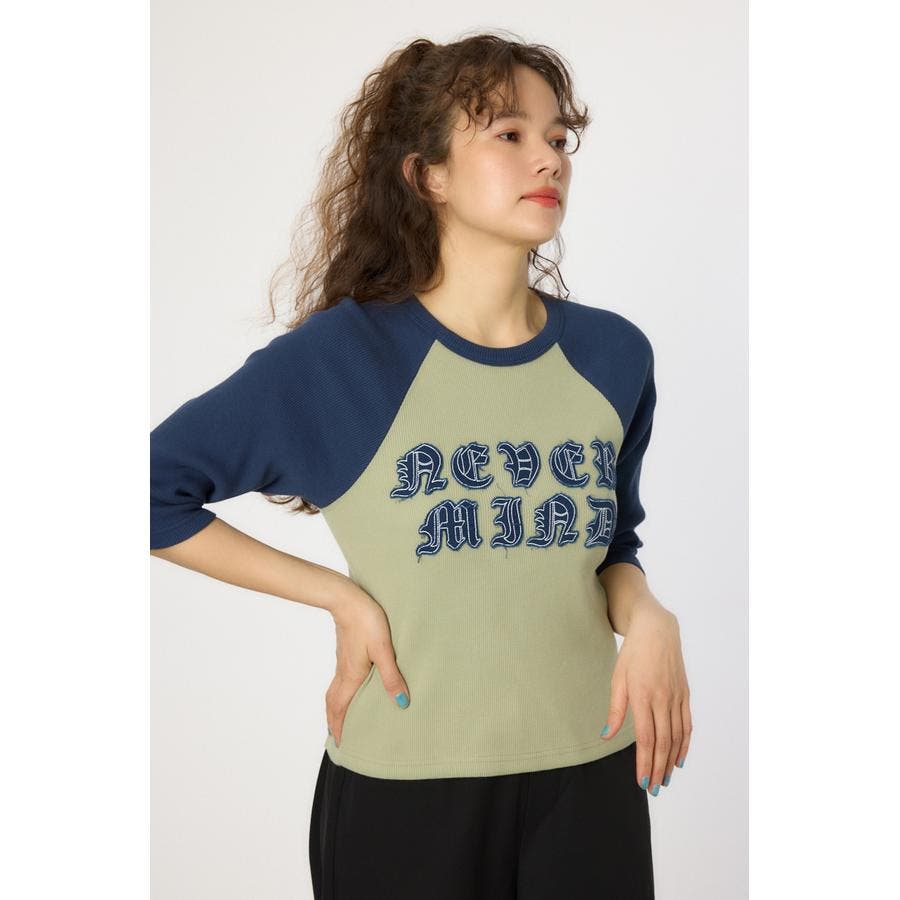 タイトめなサイズ感と、ダメージを加えたオールドイングリッシュのレタリングアップリケがヴィンテージ感たっぷりなリブ生地のTシャツです。