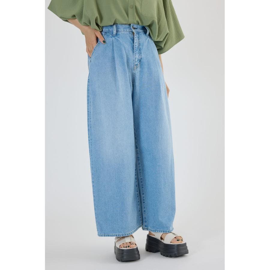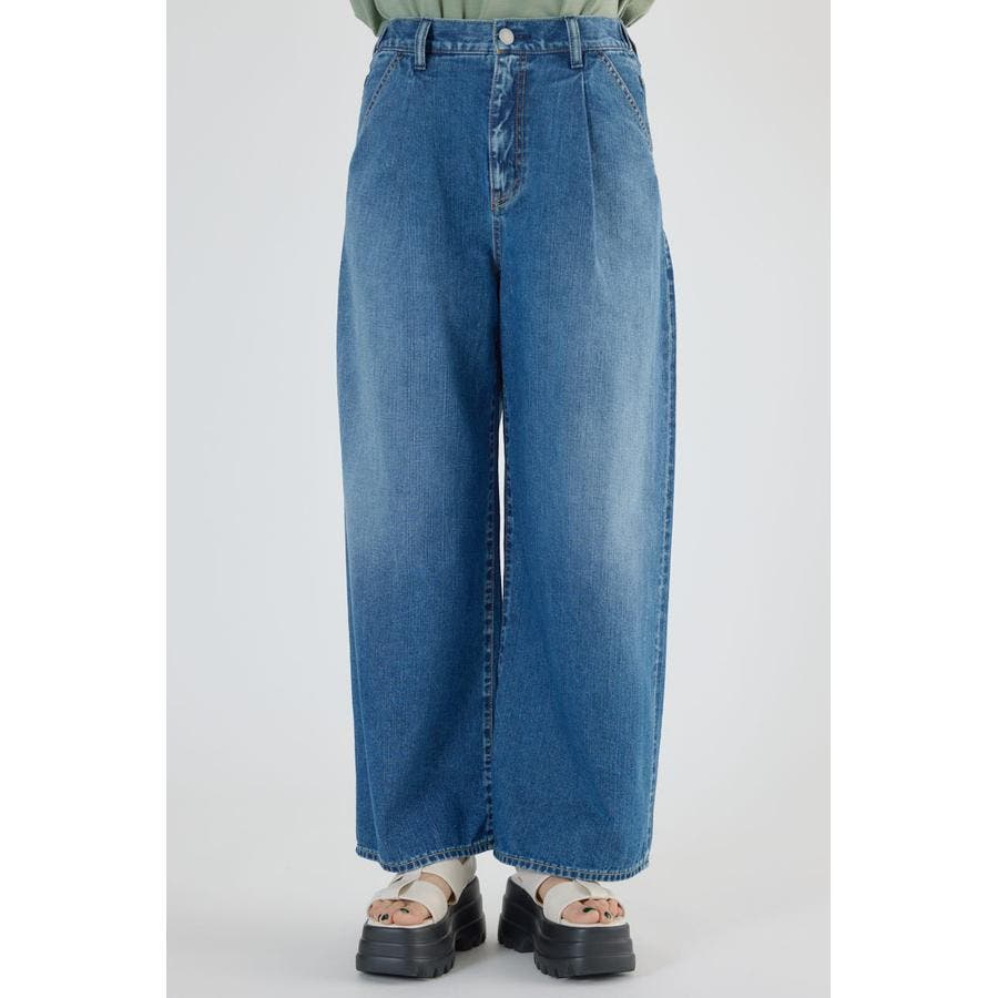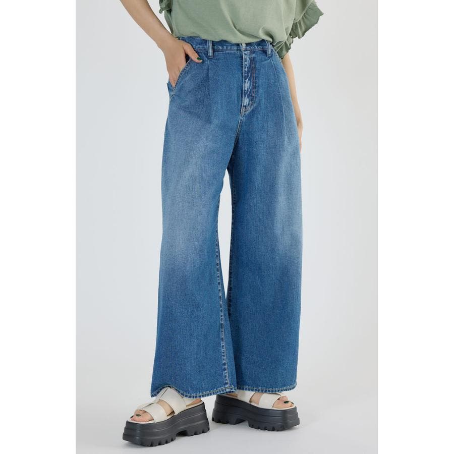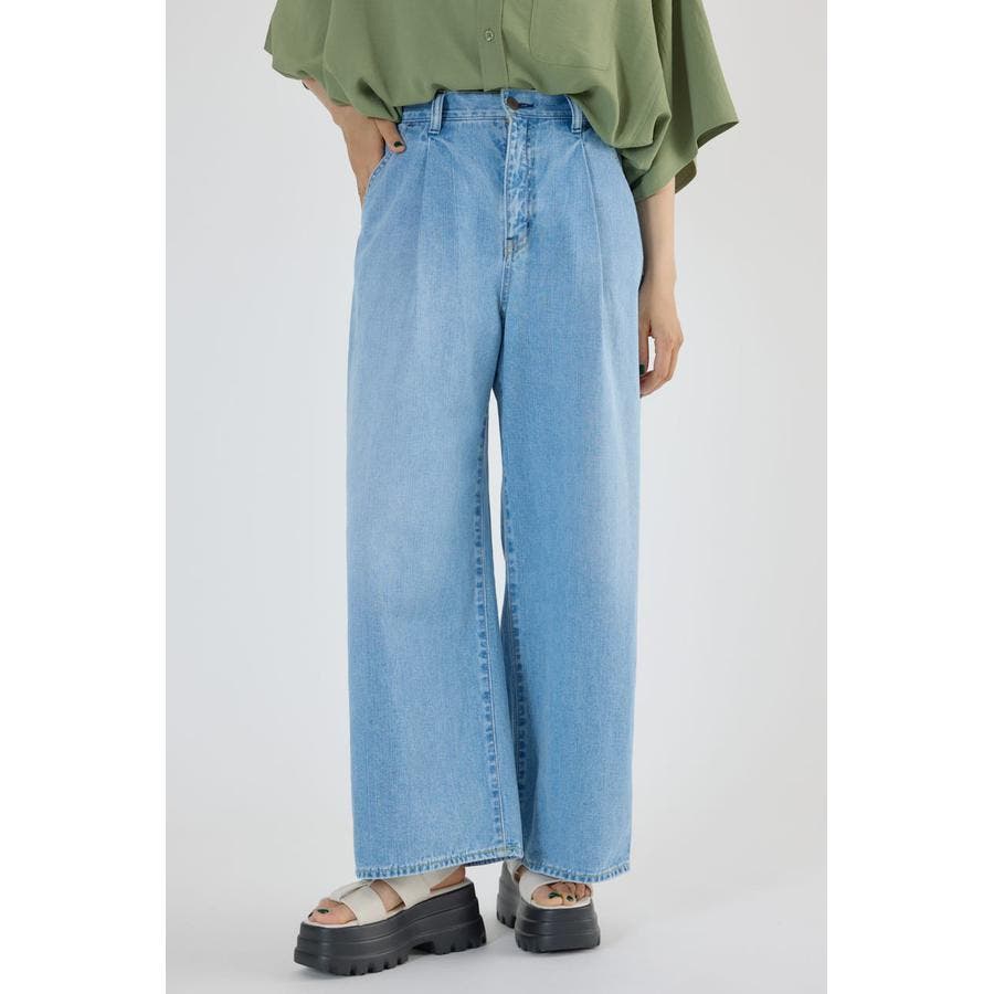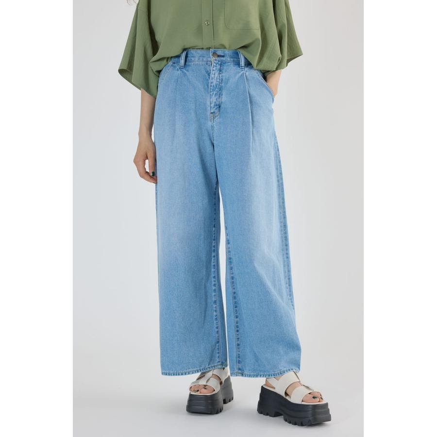 幅広いスタイリングに着用できるタックデニムパンツ。