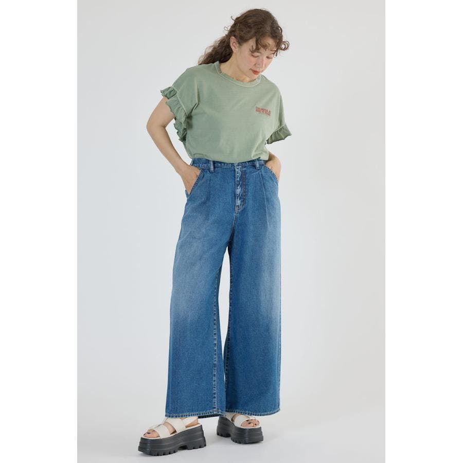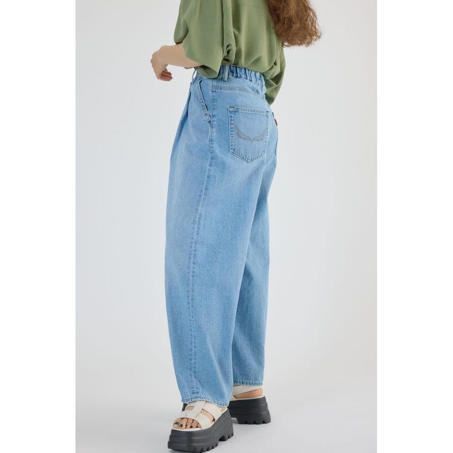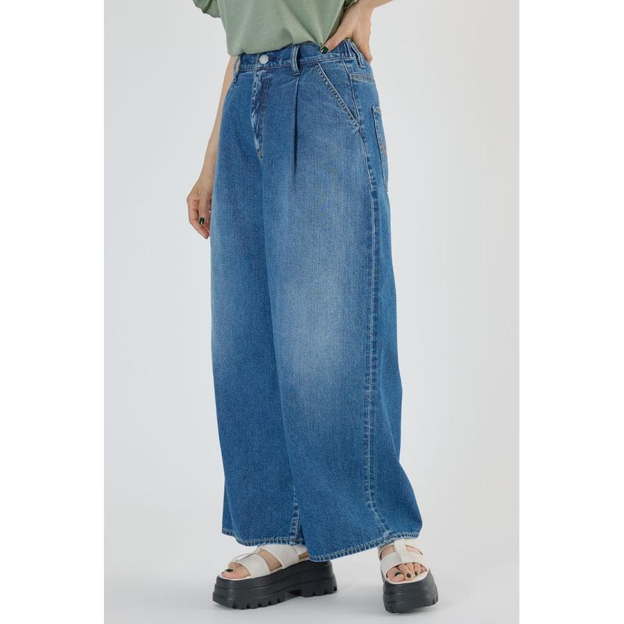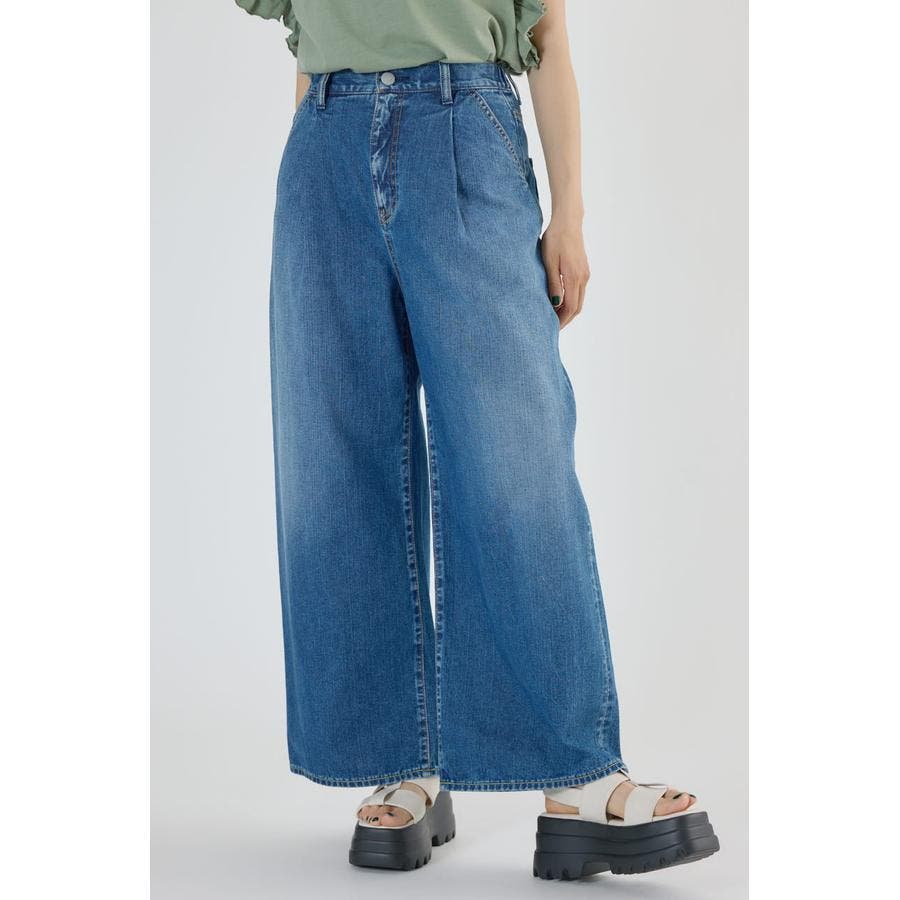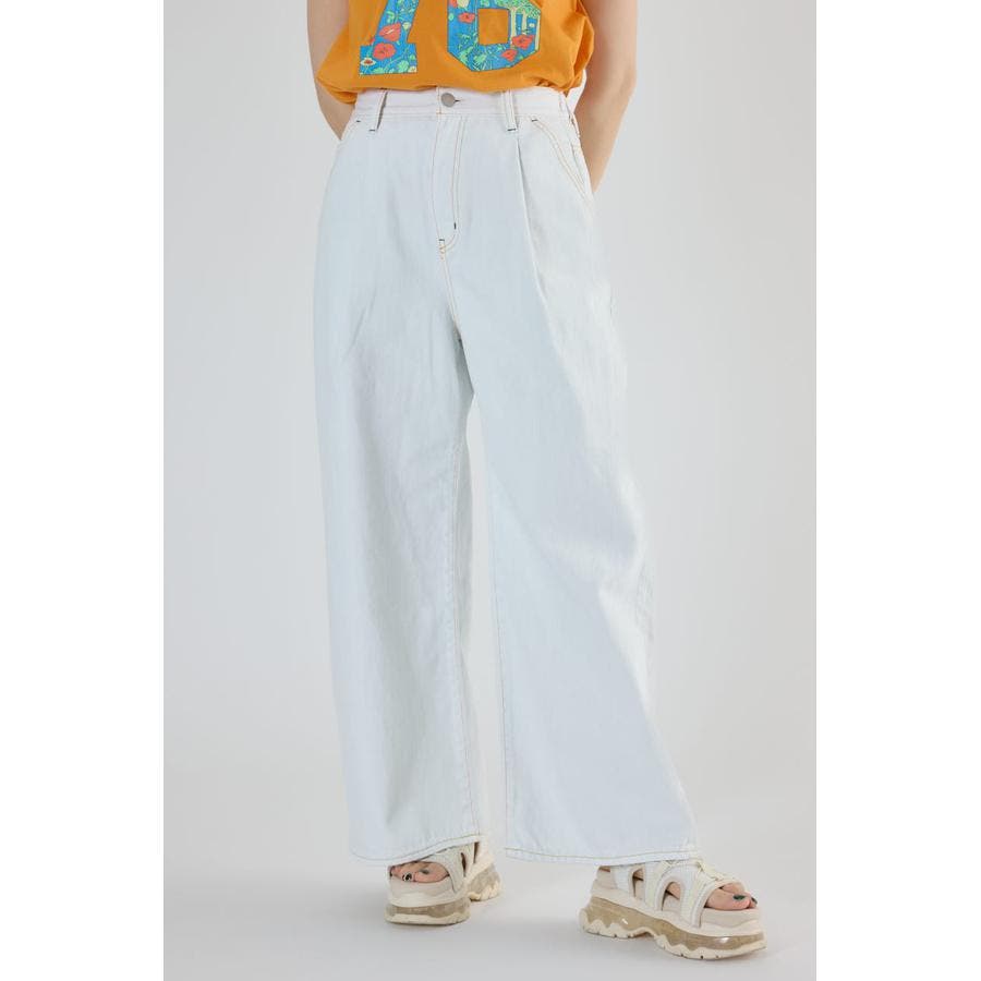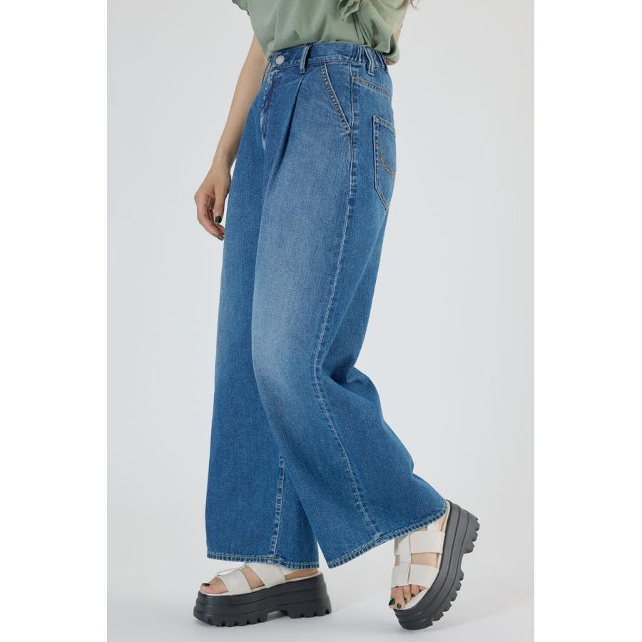 幅広いスタイリングに着用できるタックデニムパンツ。