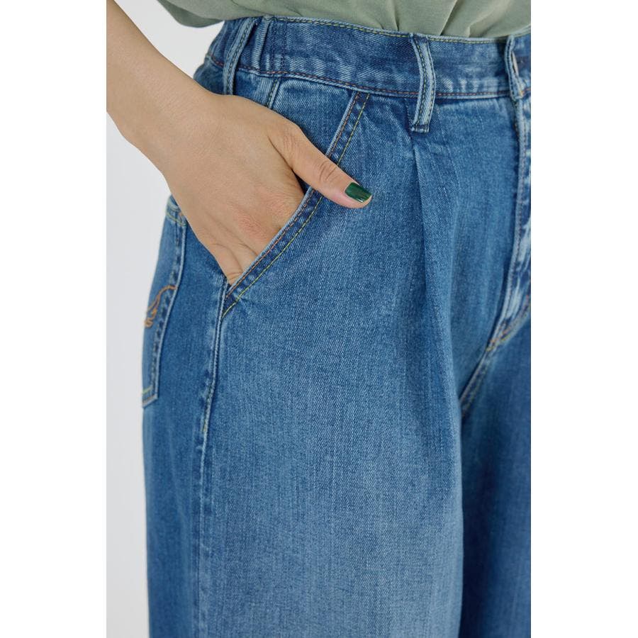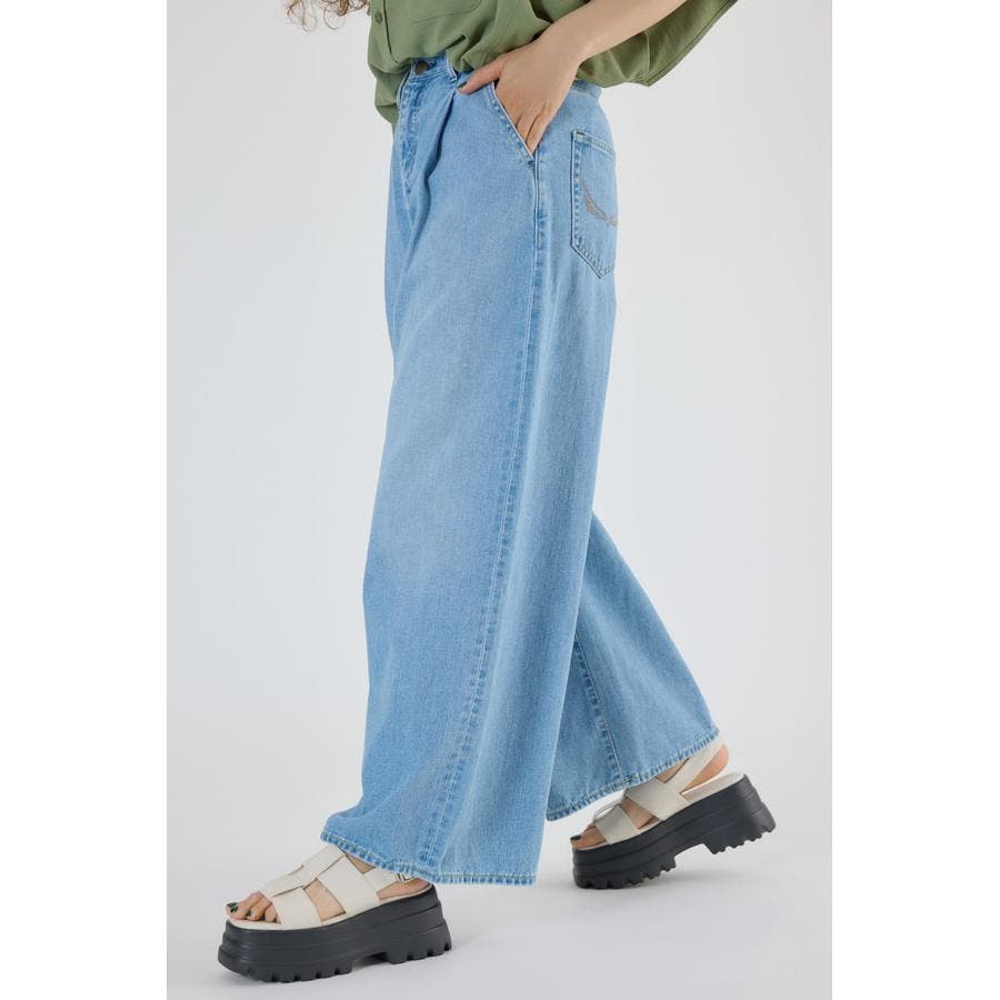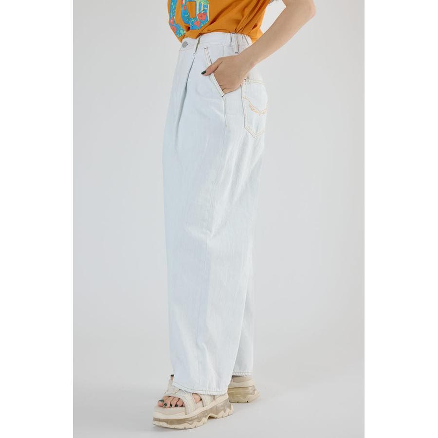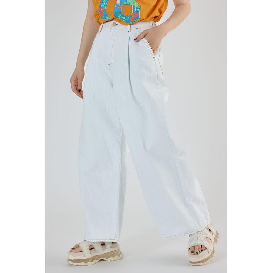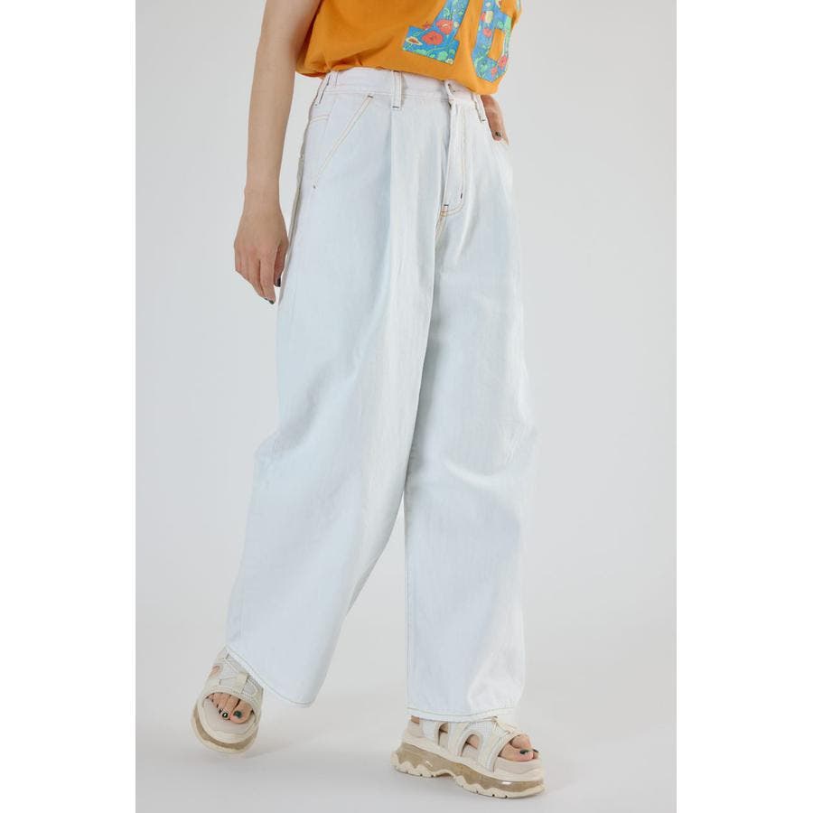 幅広いスタイリングに着用できるタックデニムパンツ。