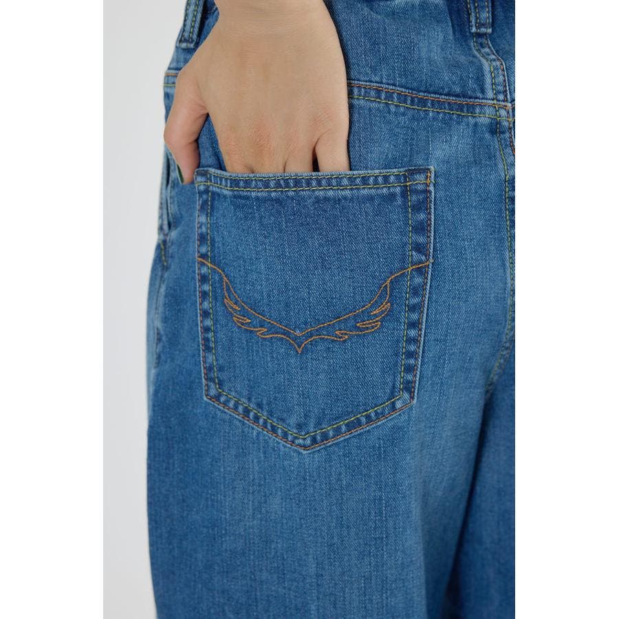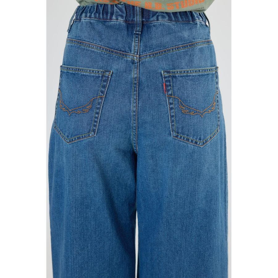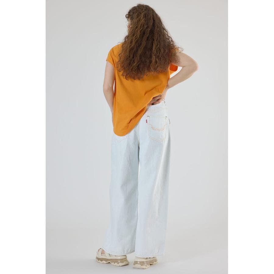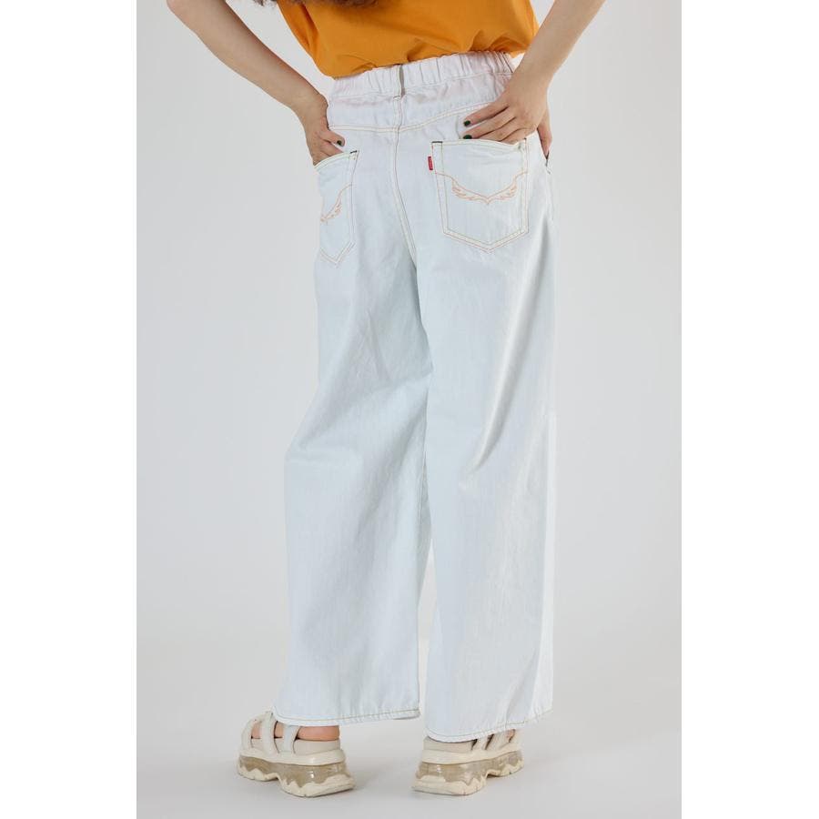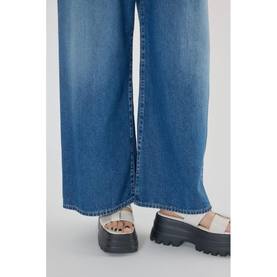 ジャストウエストで着用する為、脚長効果と、ストレートワイドシルエットで脚線カバーと二等流のスぺシャルなオリジナルデニムです。