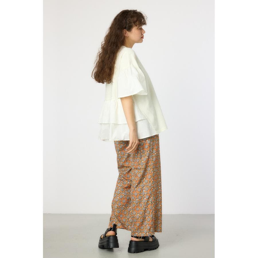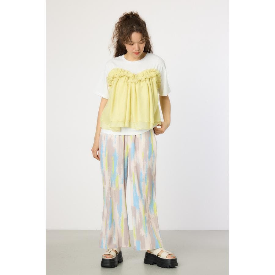 ピグメントバックフリルトップス(420ISR80-2841)など、ガーリーアイテムとの相性も抜群です。