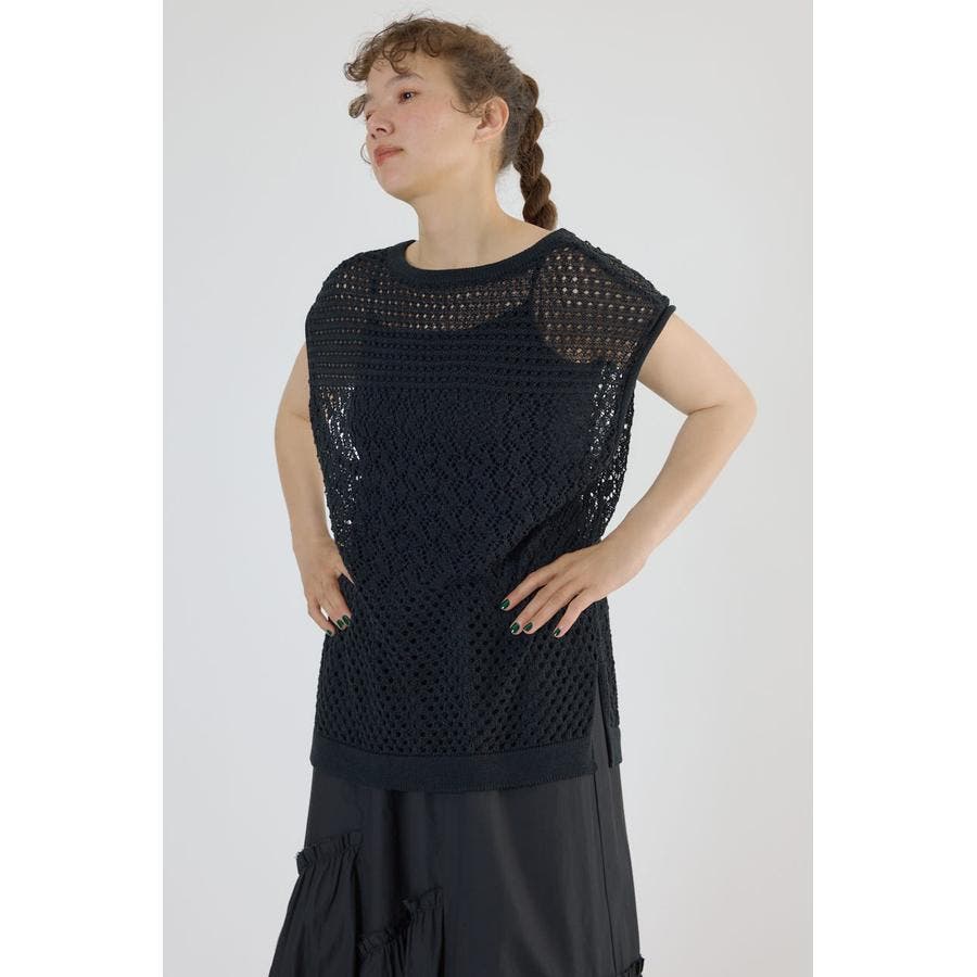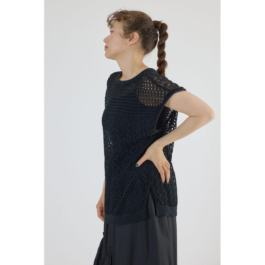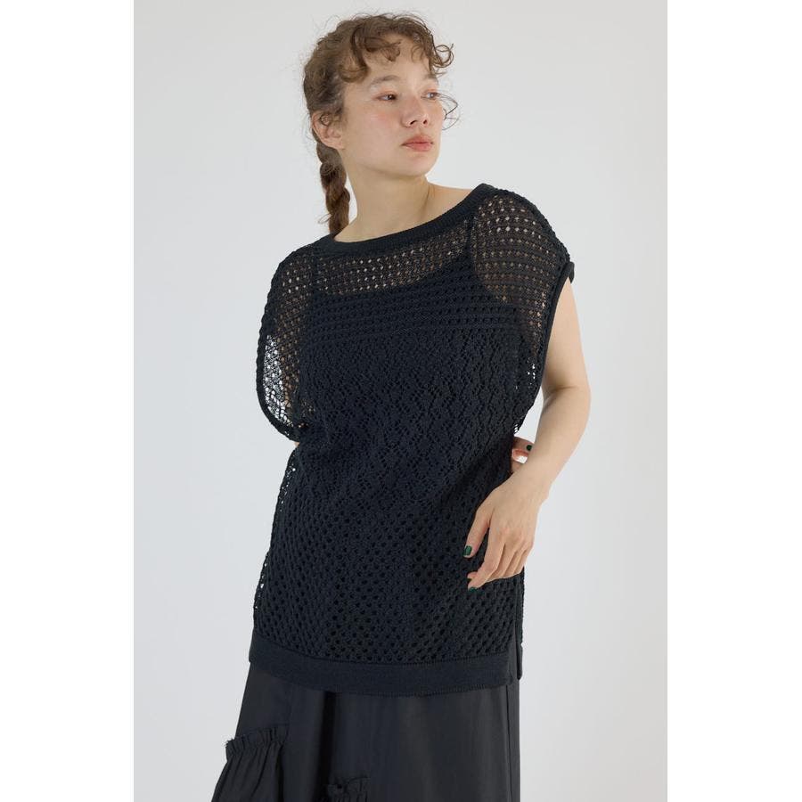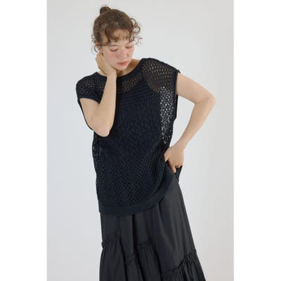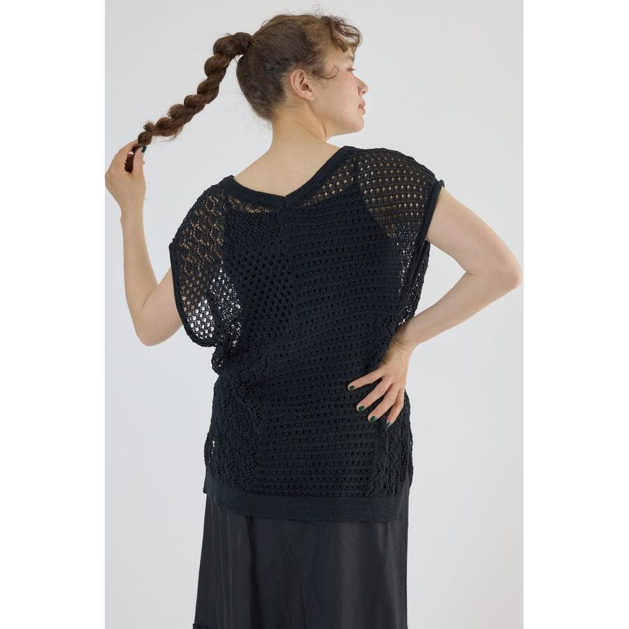 フロントとバックの表情が違う前後で着用できる透かしニット。