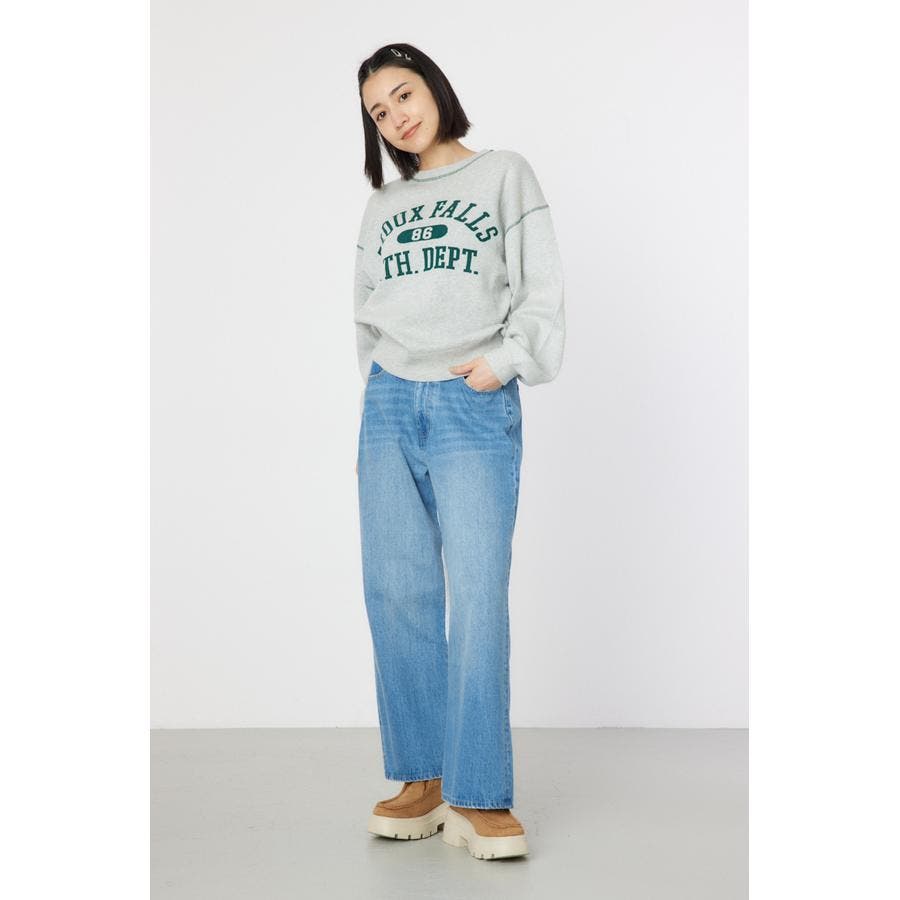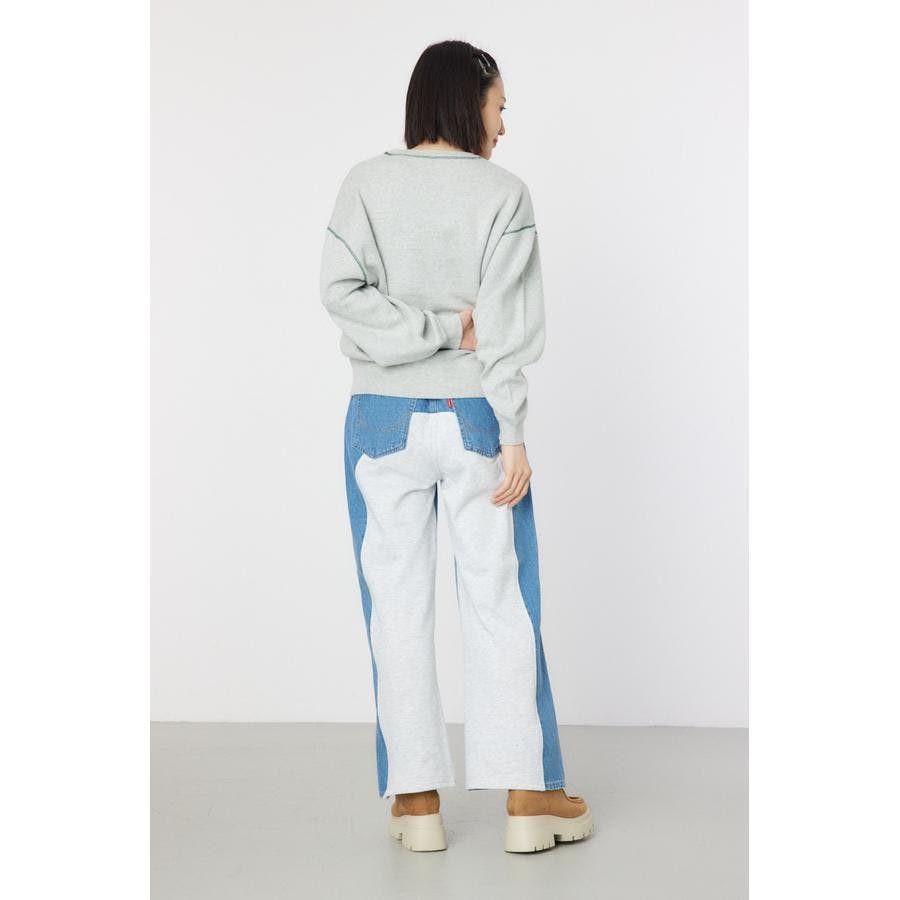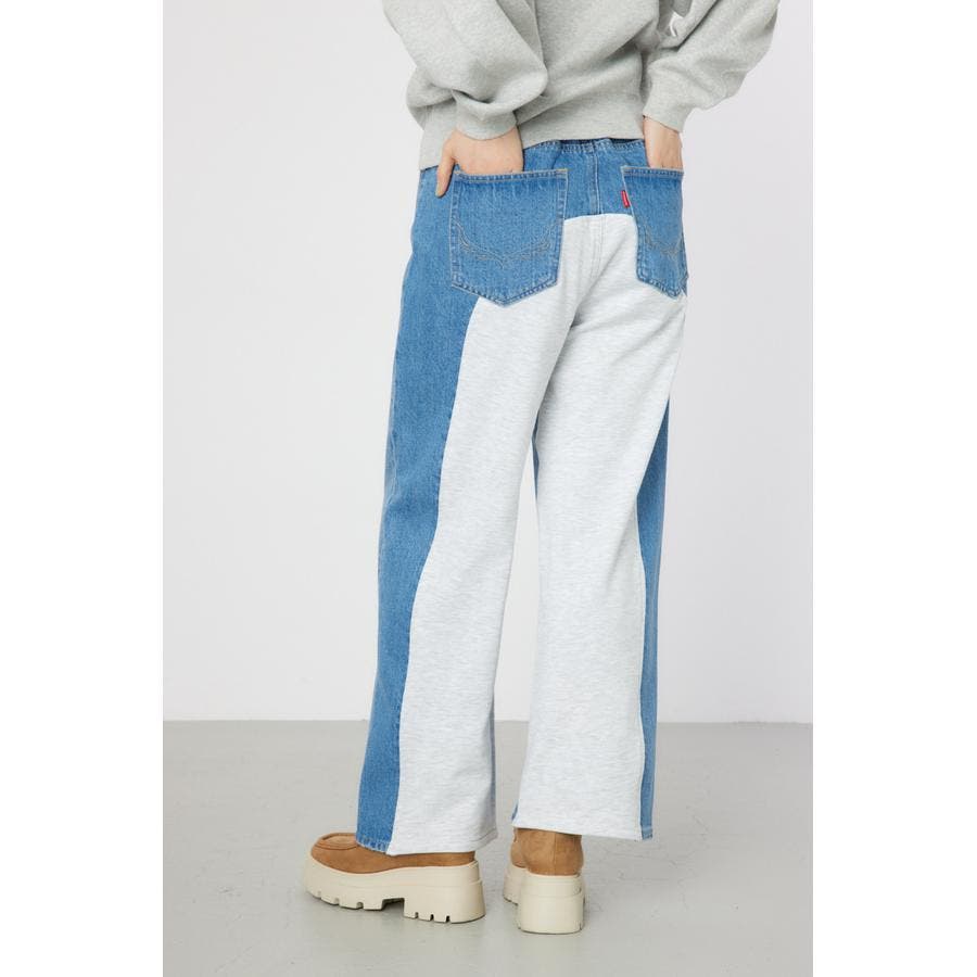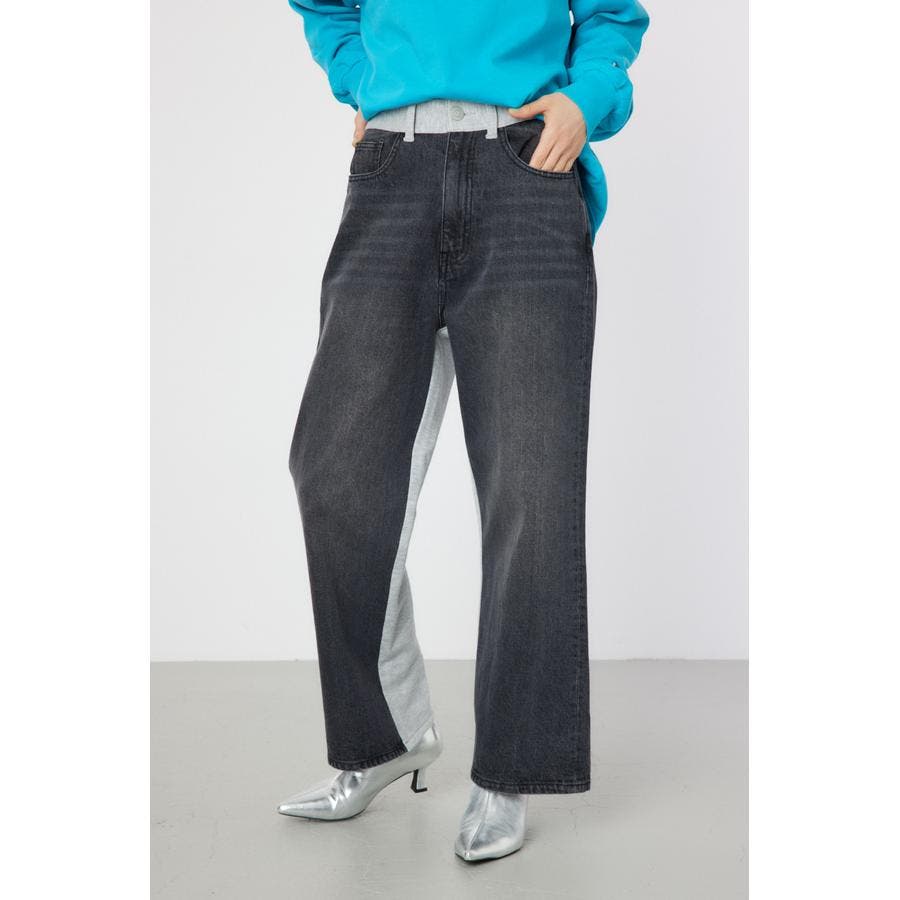 バックにスウェット素材を使用し、リラックス感のあるワイドパンツ。カットソーとデニムのコンビなので、履き心地も抜群です。ワイドストレートのシルエットで、ボリュームが出すぎないのもポイント。