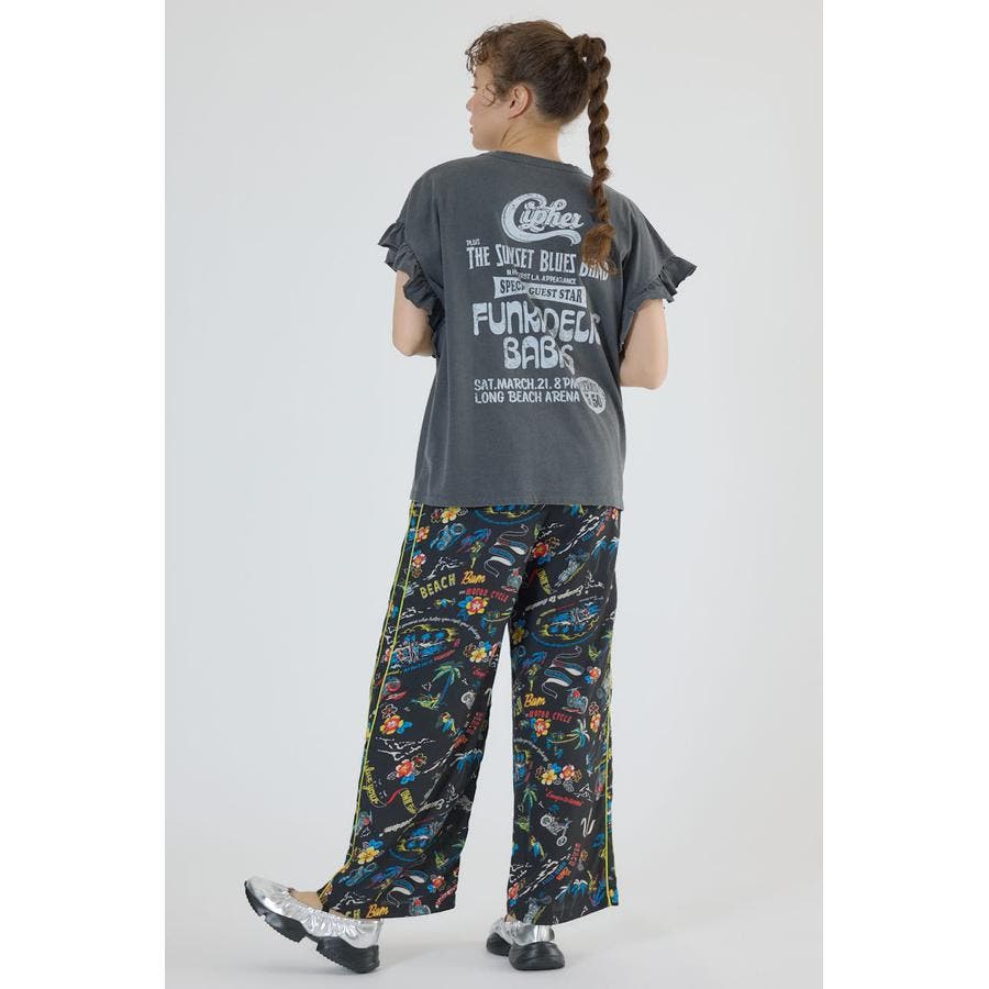 オリジナルのアロハ柄生地を使用したイージーパンツ。