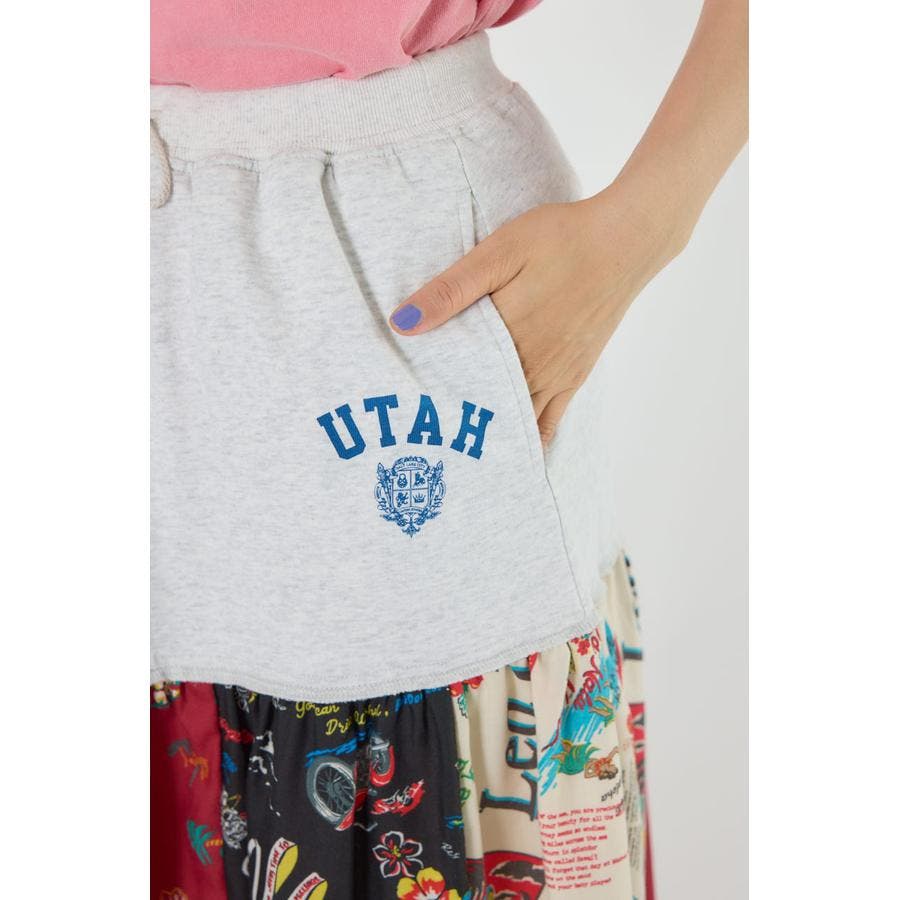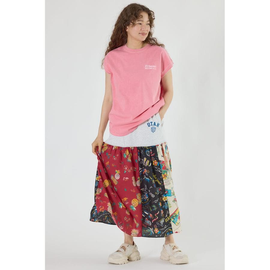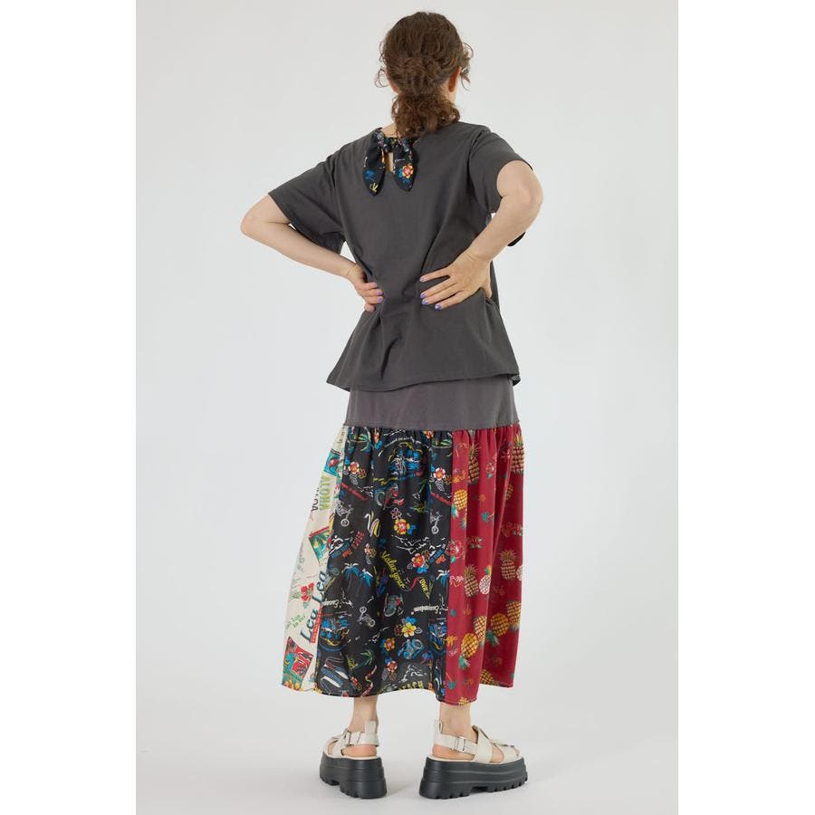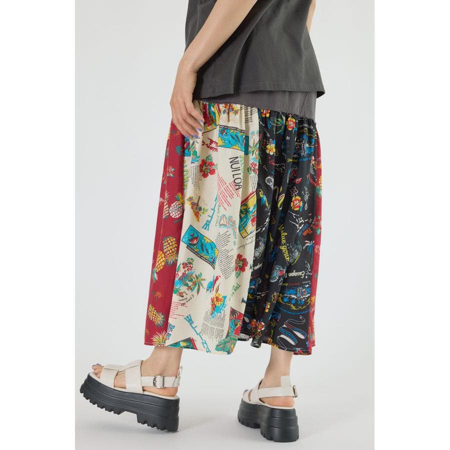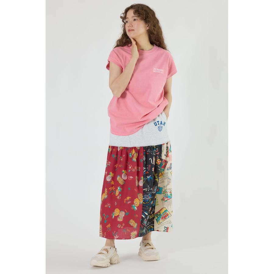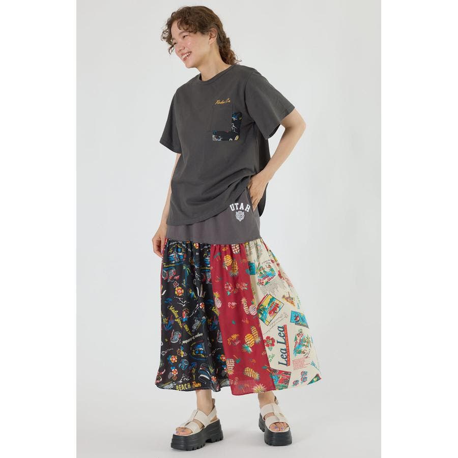 三種のアロハ柄を、パッチワークにして裏毛とドッキングしたトレンドライクなスカート。