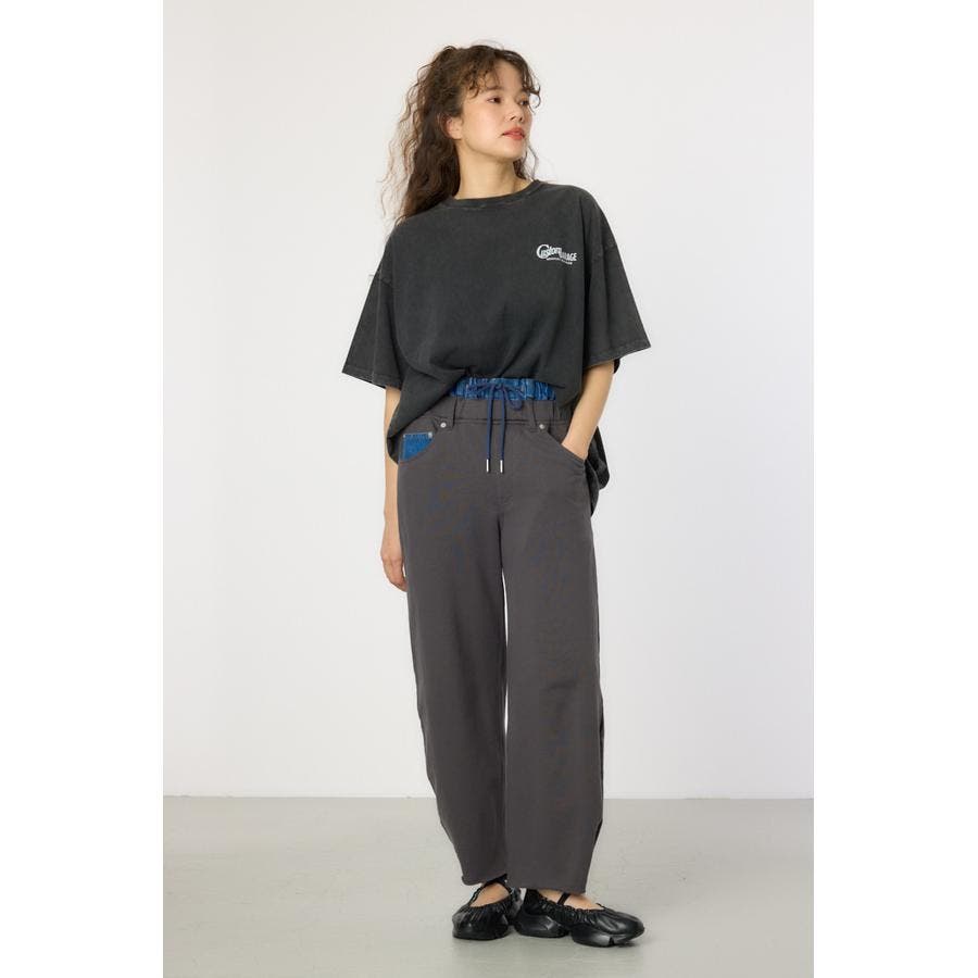 ウエストの切り替えデザインがトレンドライクなスウェットパンツ。