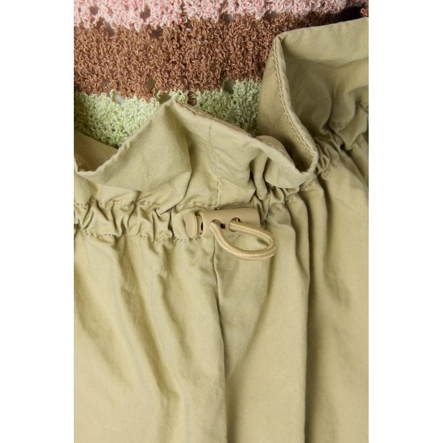 ウエストはドロスト通し有りでサイズ調整可能。