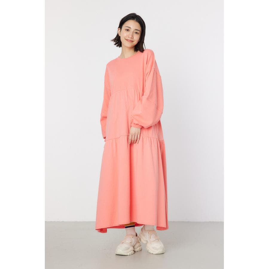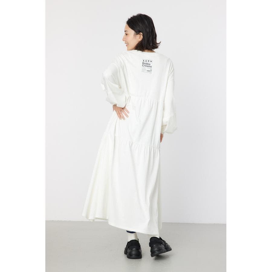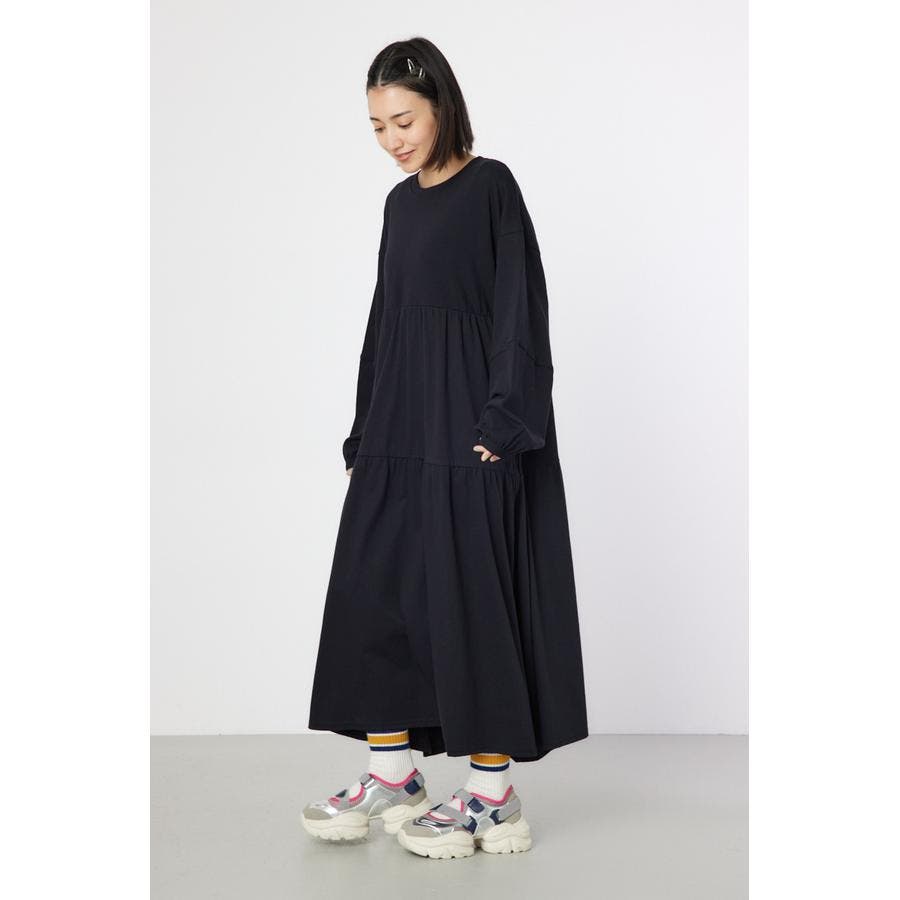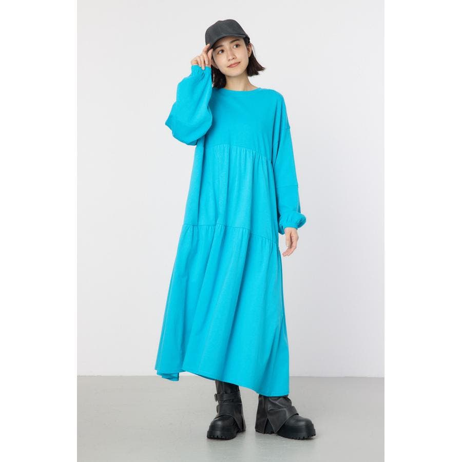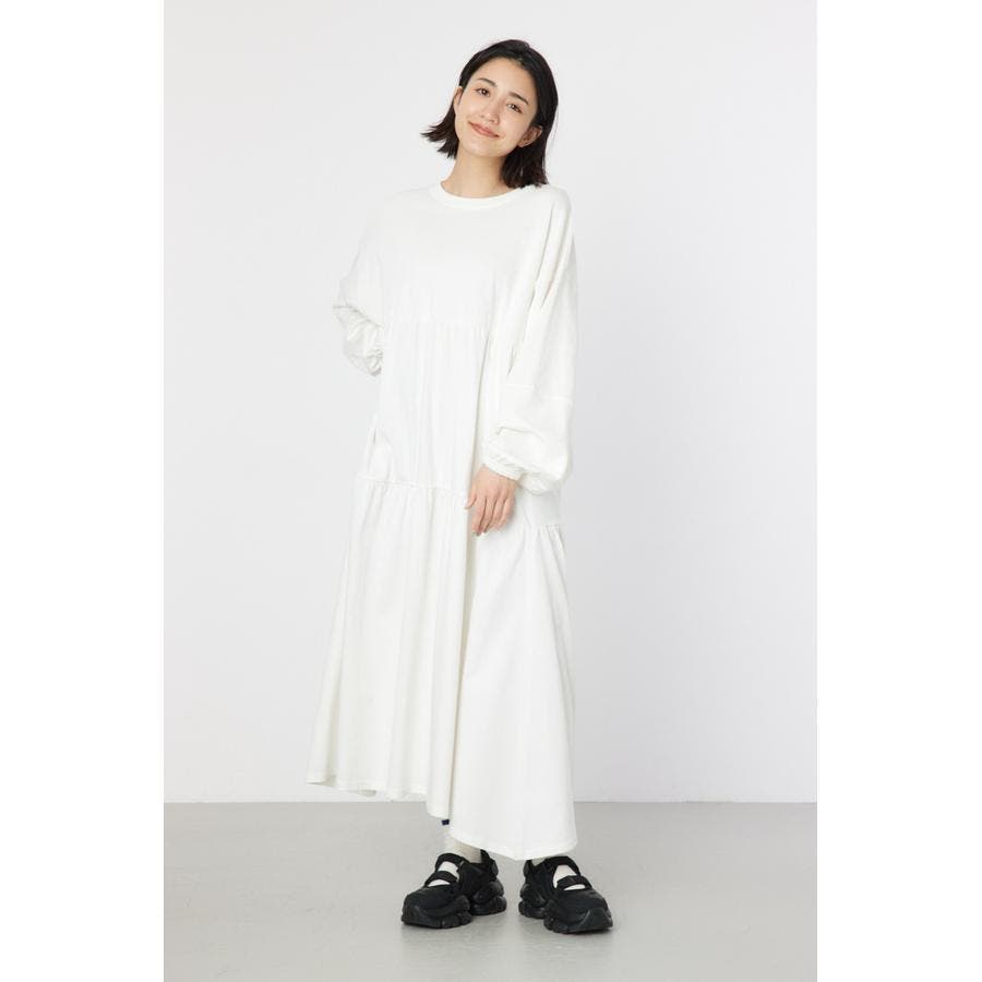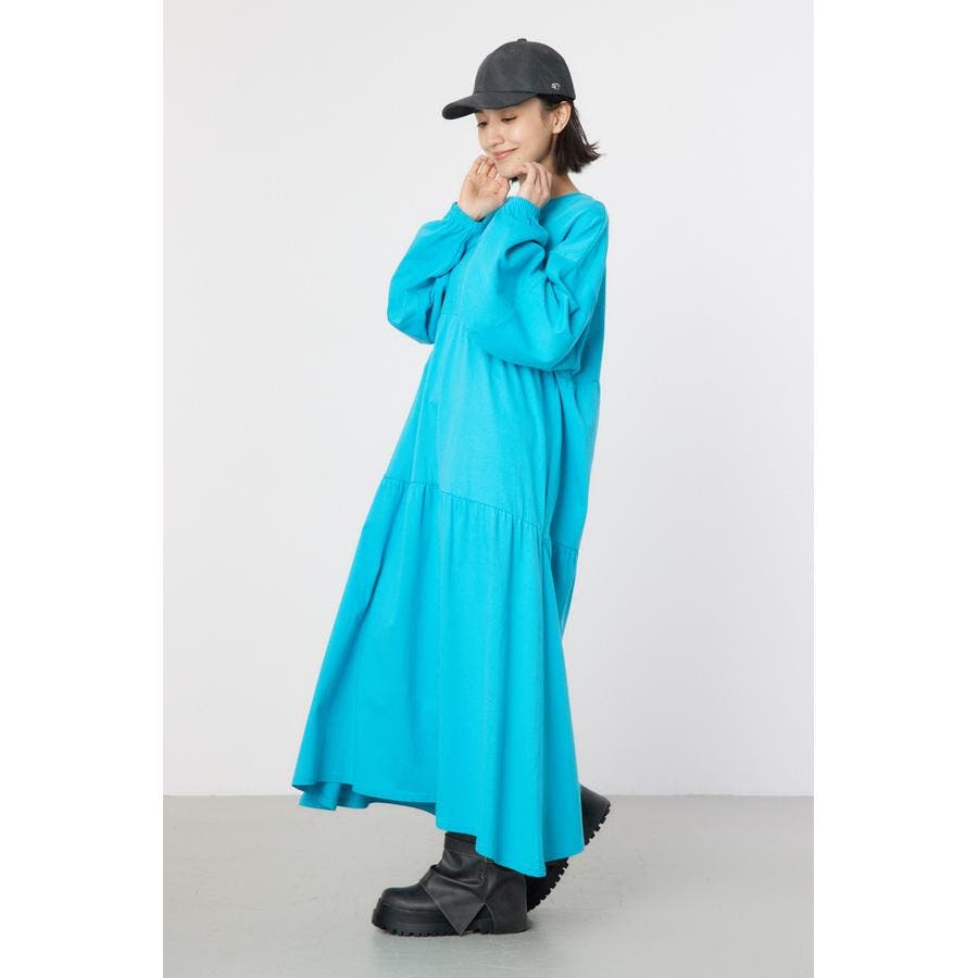 ボリュームたっぷりなティアードデザインが可愛いワンピース。ゆったりとしたシルエットでリラックスして着用できます。バックに付けたネームパッチがポイント。マキシ丈でボディラインを適度に隠してくれるので、体型カバーもできる優秀アイテムです。