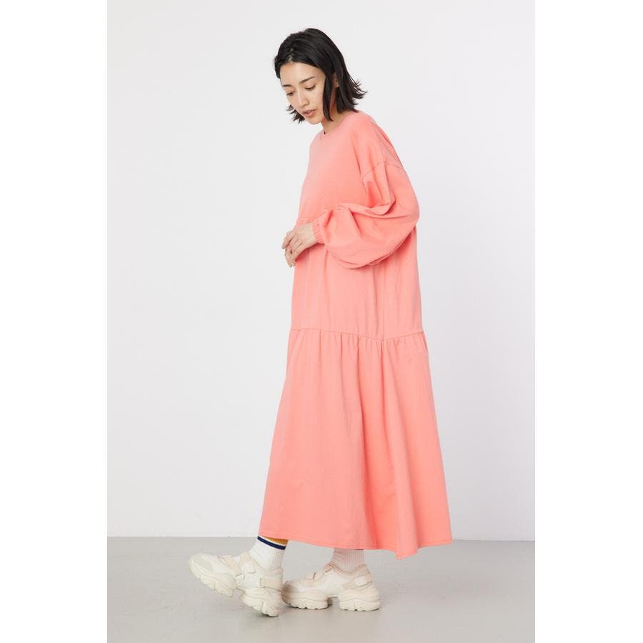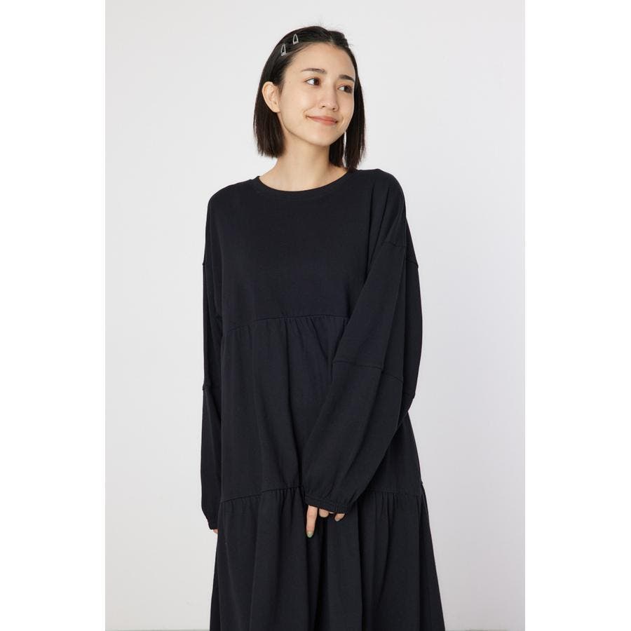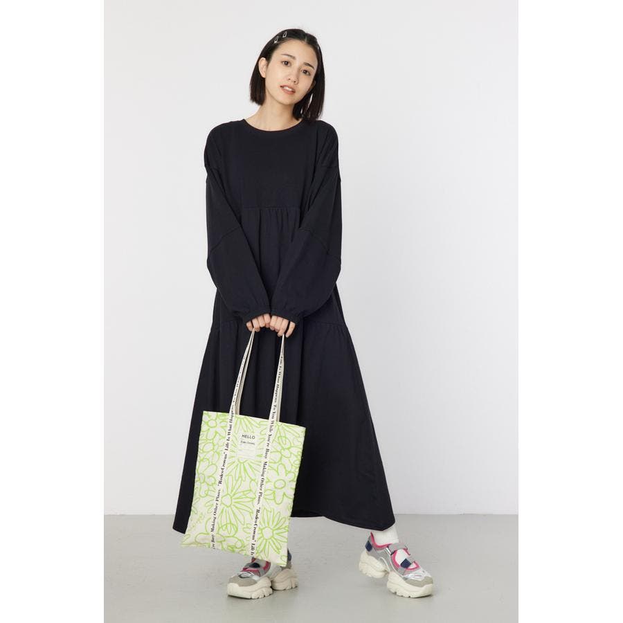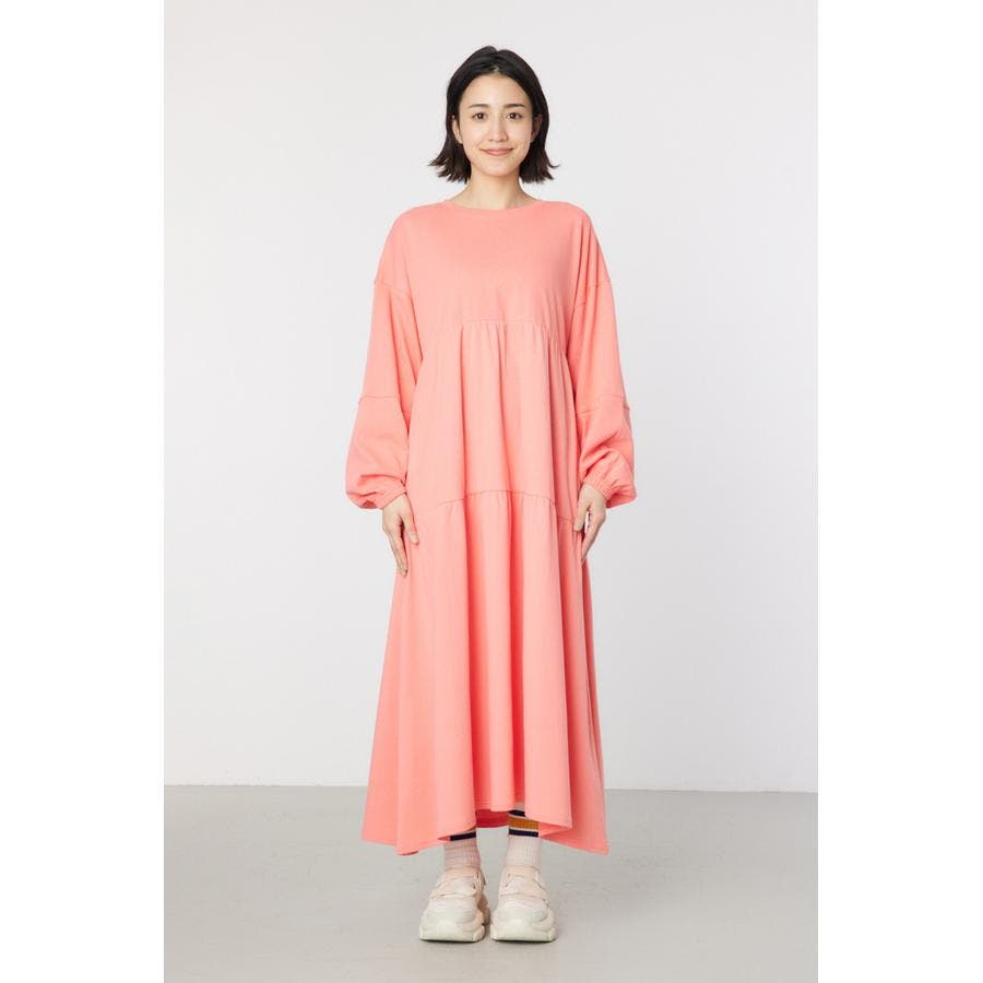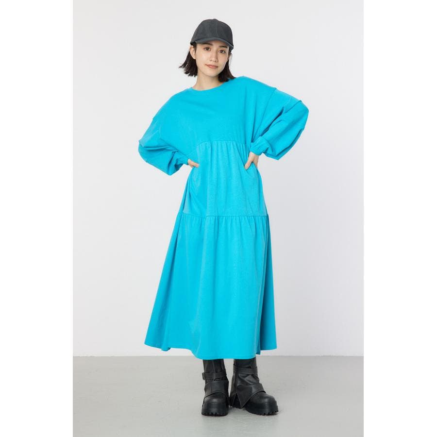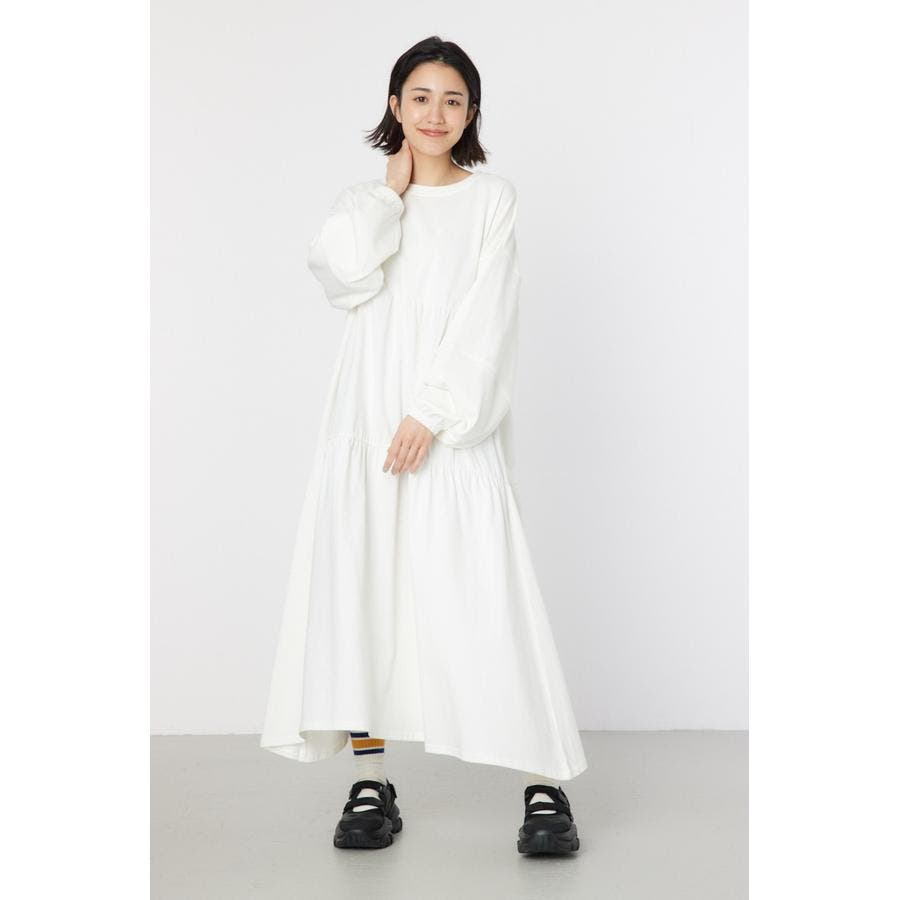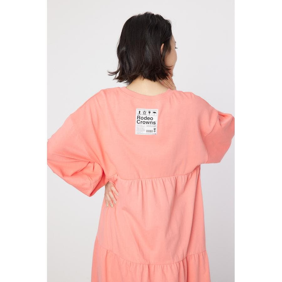 ボリュームたっぷりなティアードデザインが可愛いワンピース。ゆったりとしたシルエットでリラックスして着用できます。バックに付けたネームパッチがポイント。マキシ丈でボディラインを適度に隠してくれるので、体型カバーもできる優秀アイテムです。