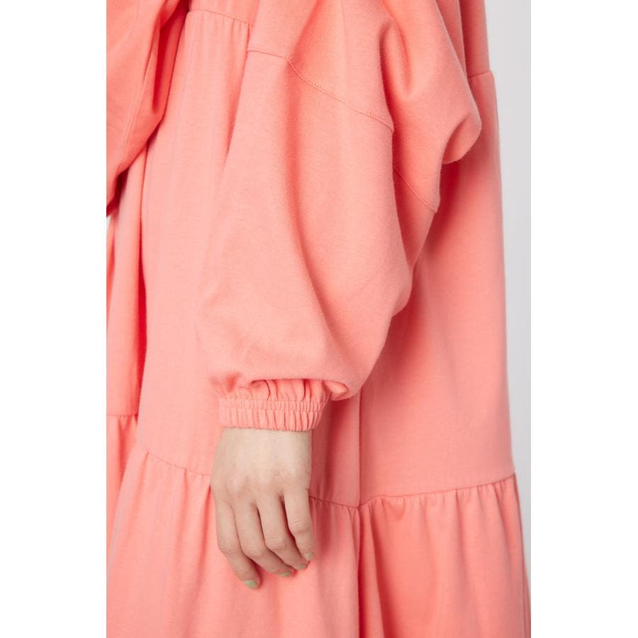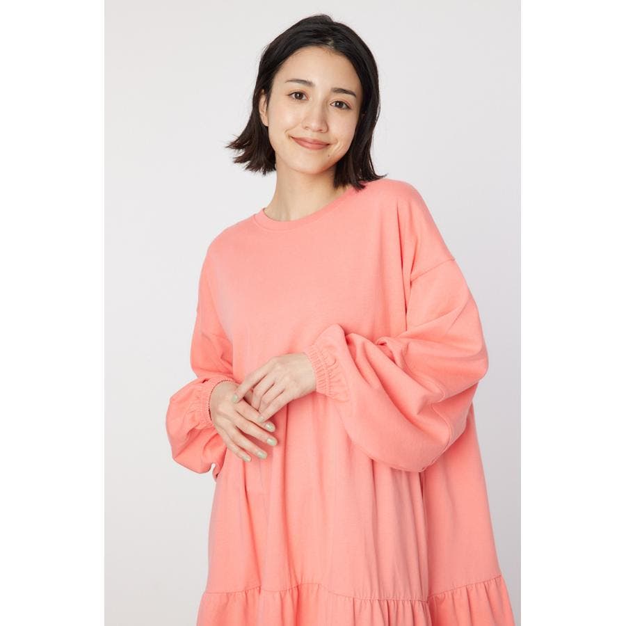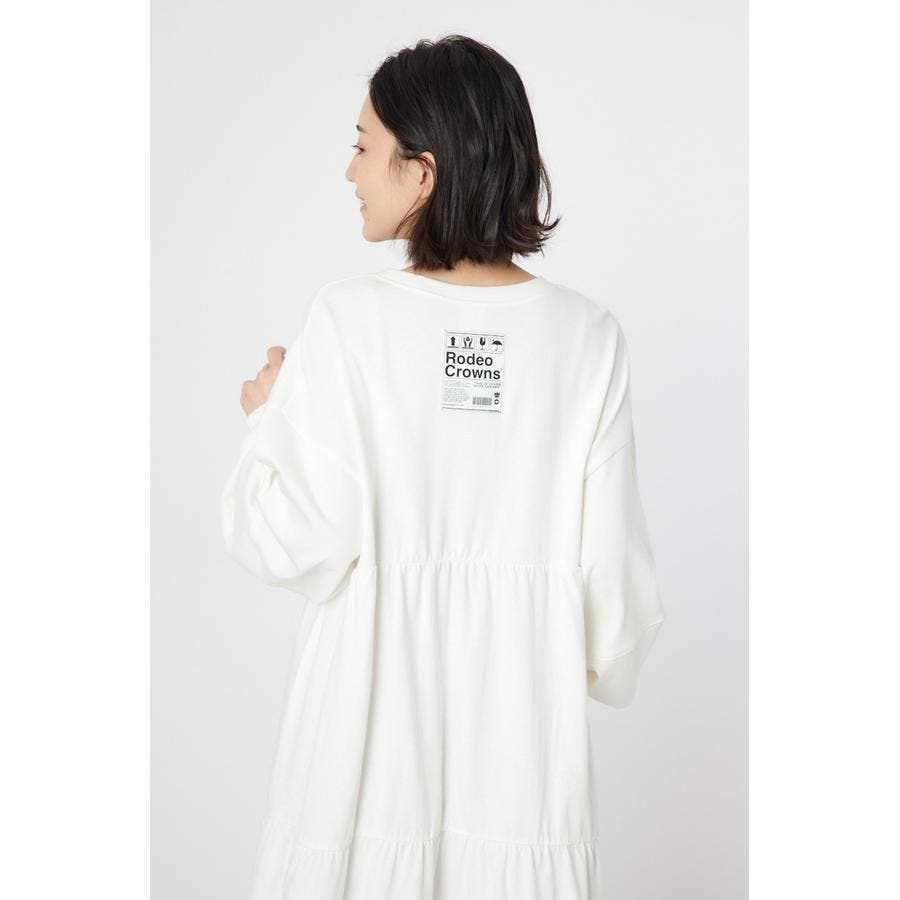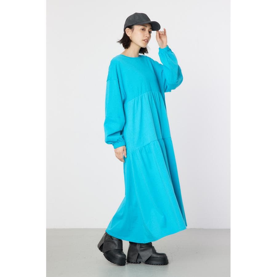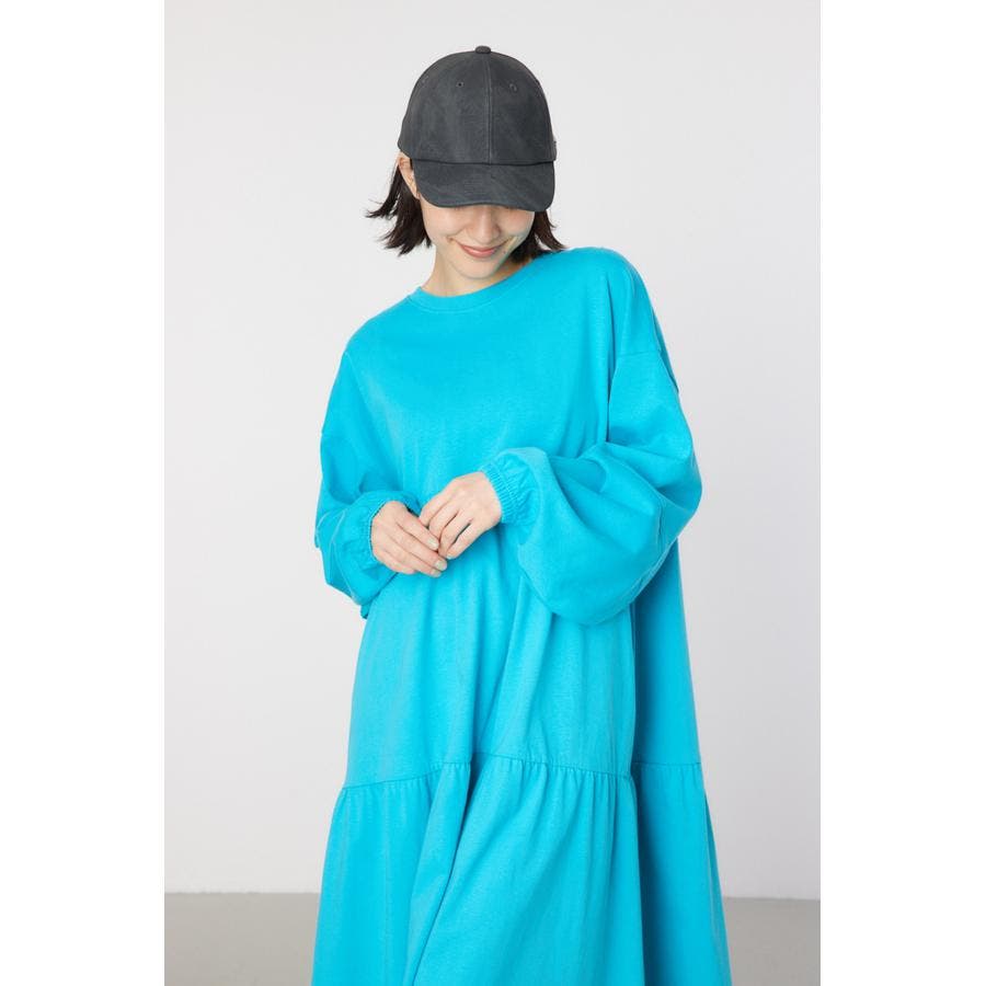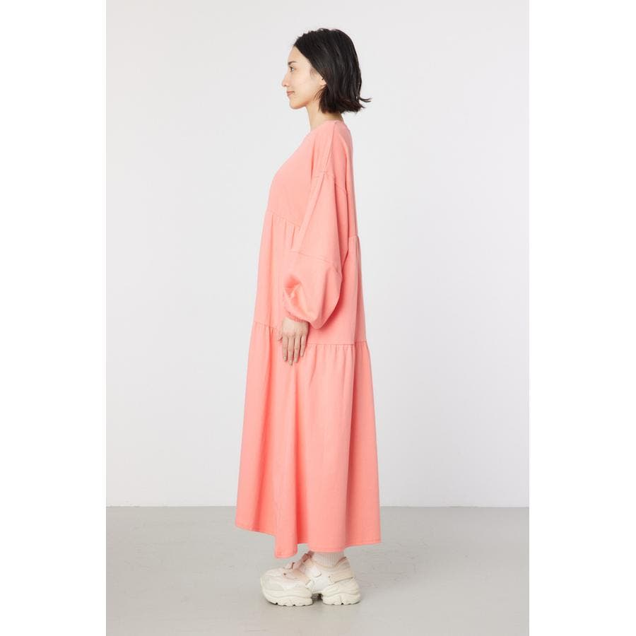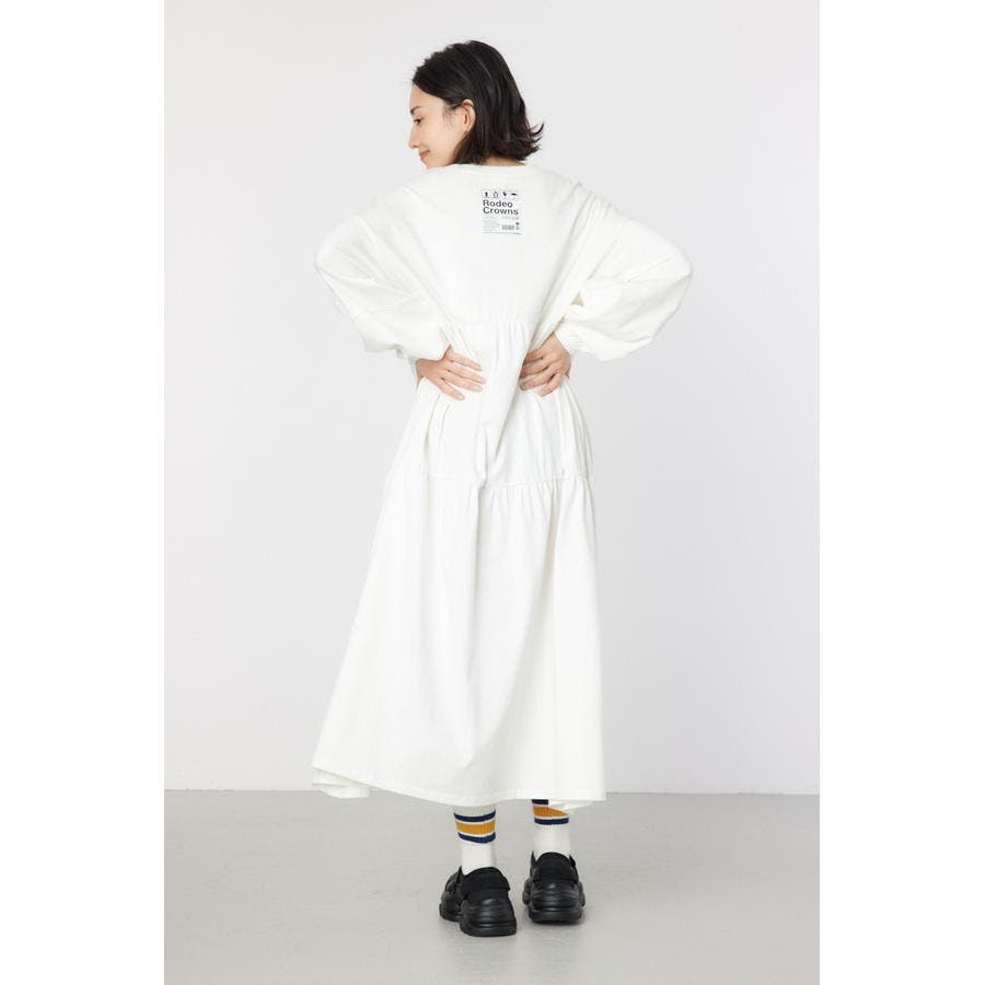 ボリュームたっぷりなティアードデザインが可愛いワンピース。ゆったりとしたシルエットでリラックスして着用できます。バックに付けたネームパッチがポイント。マキシ丈でボディラインを適度に隠してくれるので、体型カバーもできる優秀アイテムです。