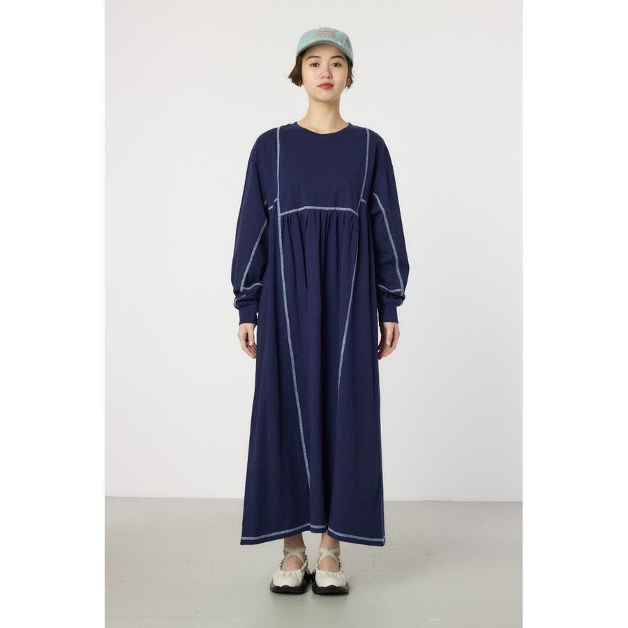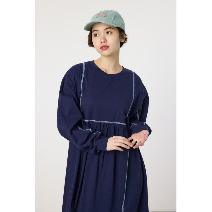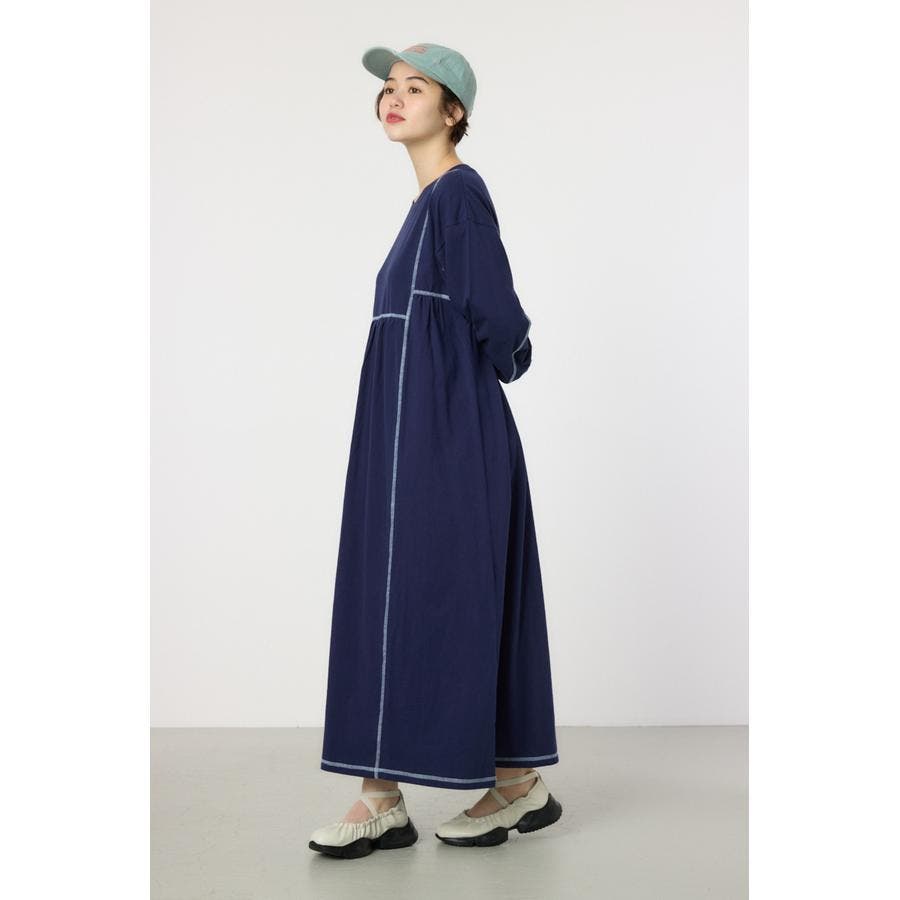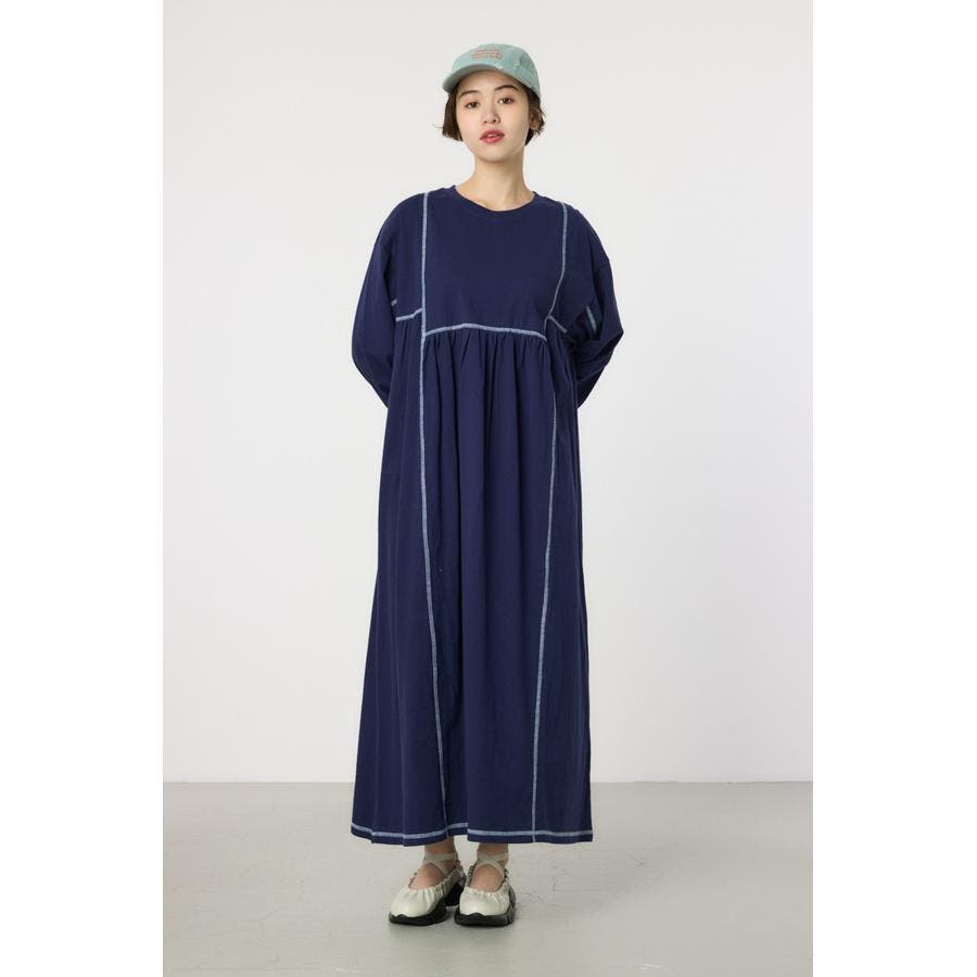 配色ステッチもポイントになり、シンプルすぎずに1枚できまるワンピースです。
