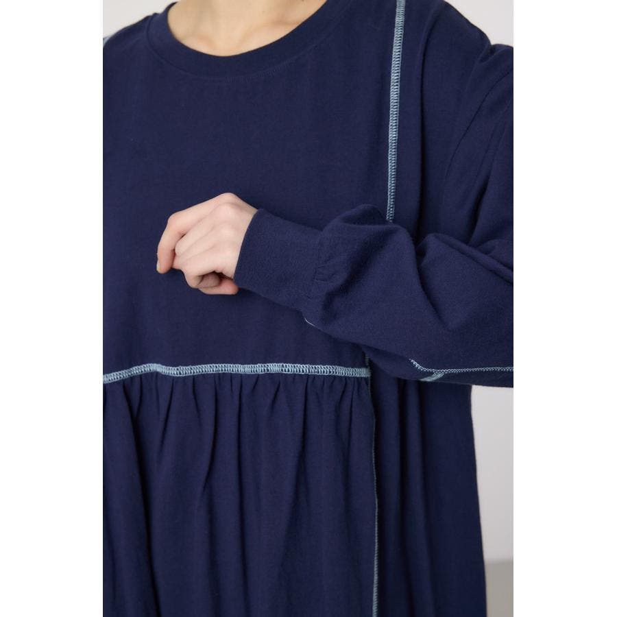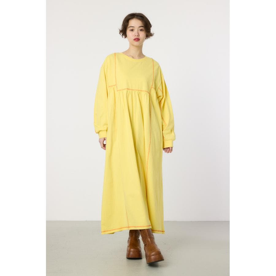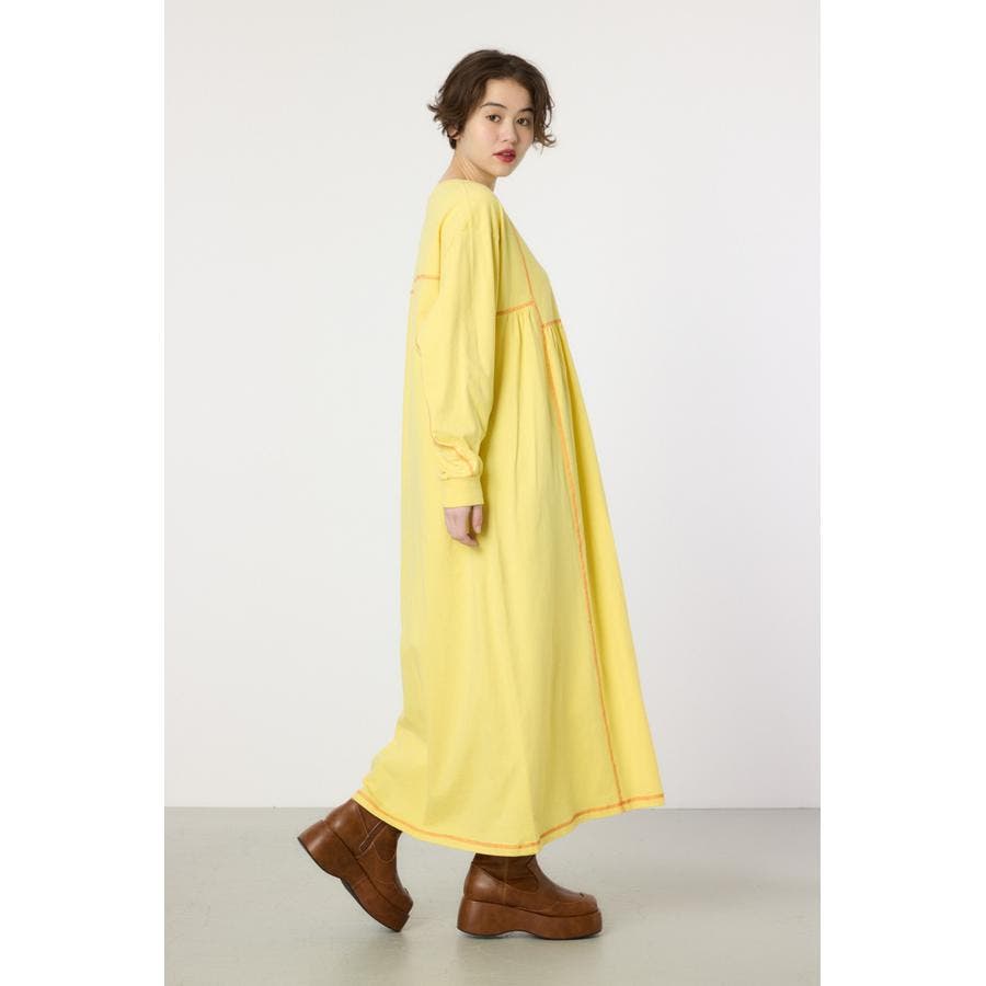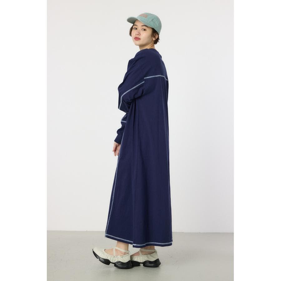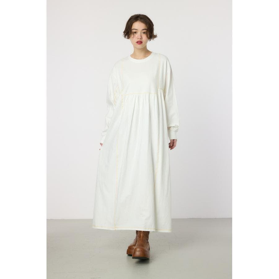 配色ステッチもポイントになり、シンプルすぎずに1枚できまるワンピースです。
