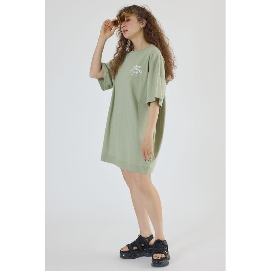 背中に大胆にデザインされたフラワーグラフィックが目を引く天竺ワンピース。