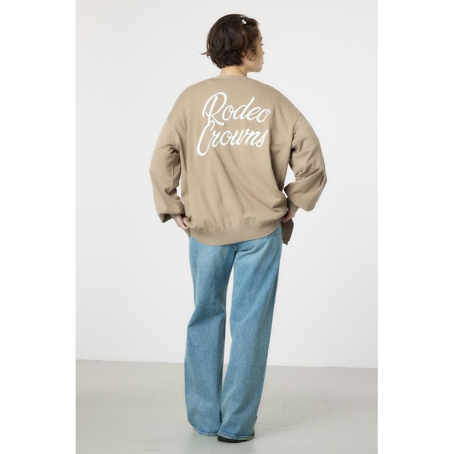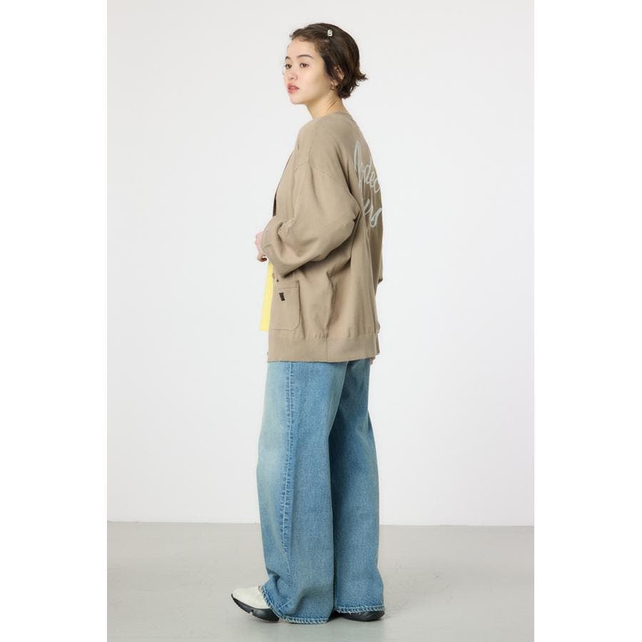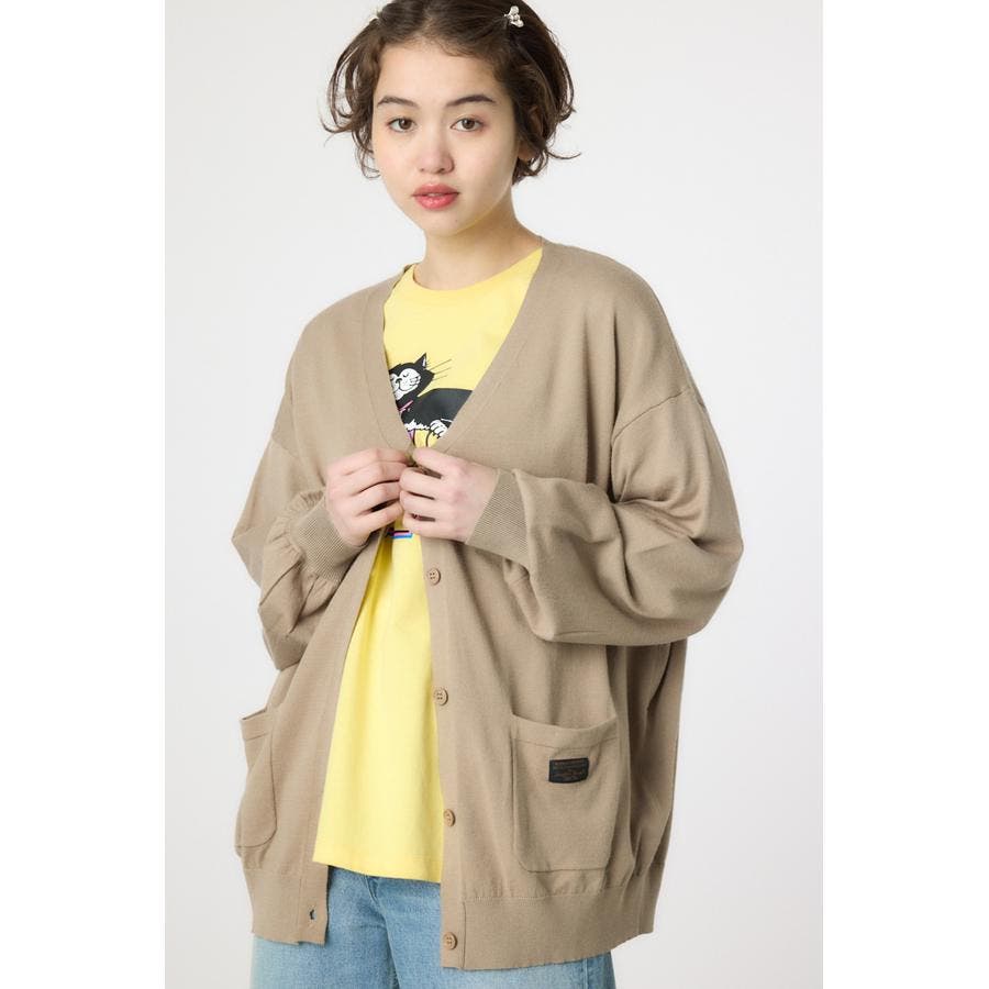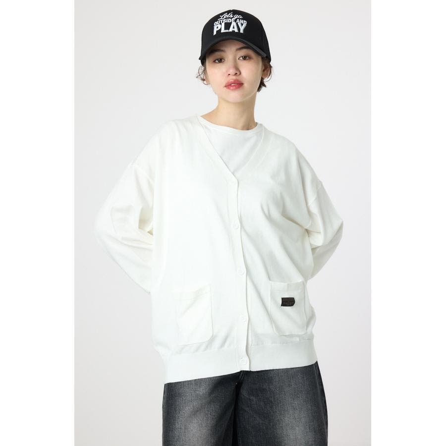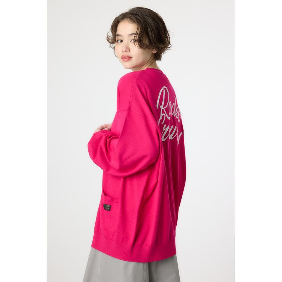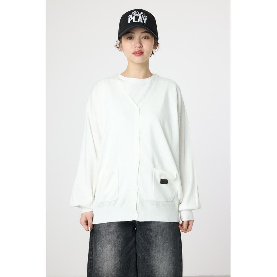 リラックス感の漂うルーズなカーディガンにロゴをプリント、刺繍を施したロゴニットカーディガン。