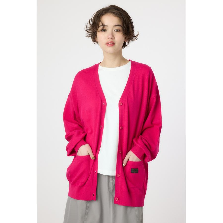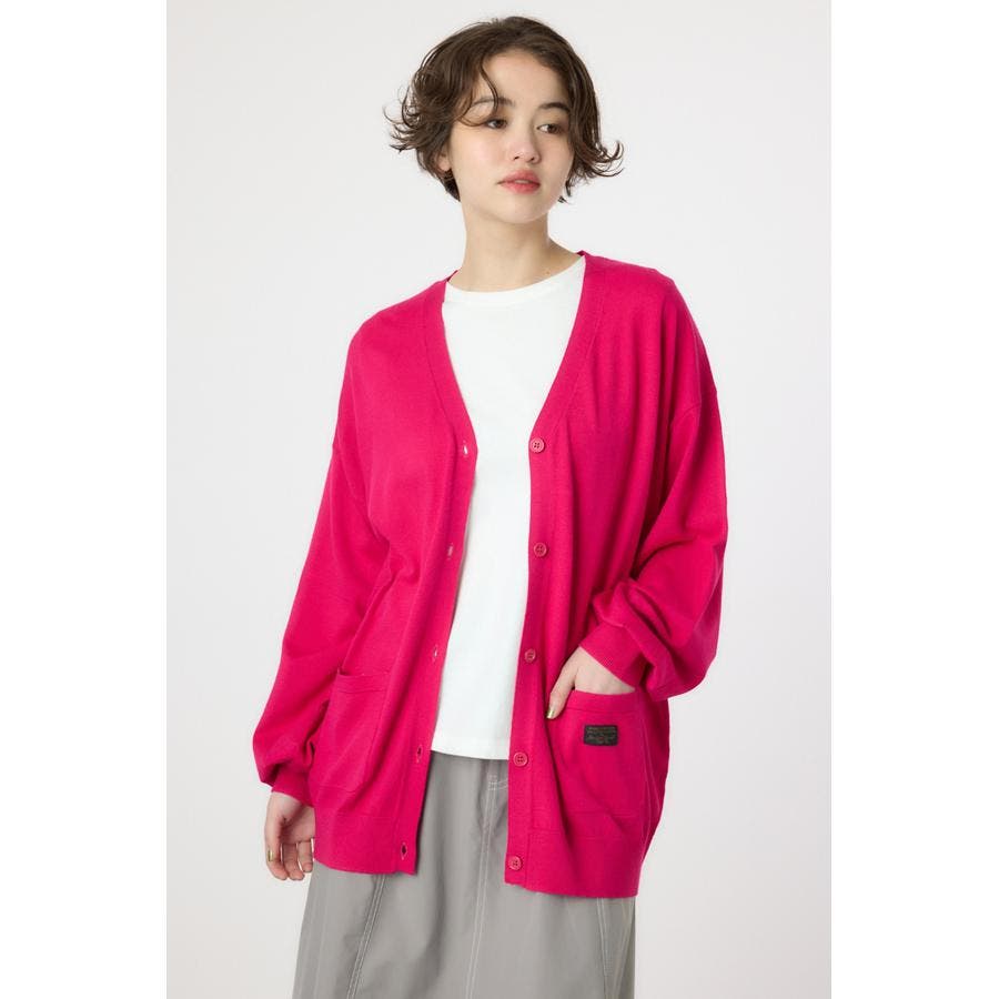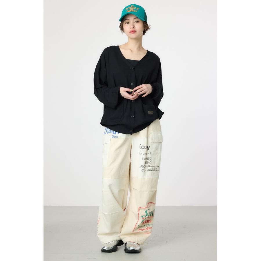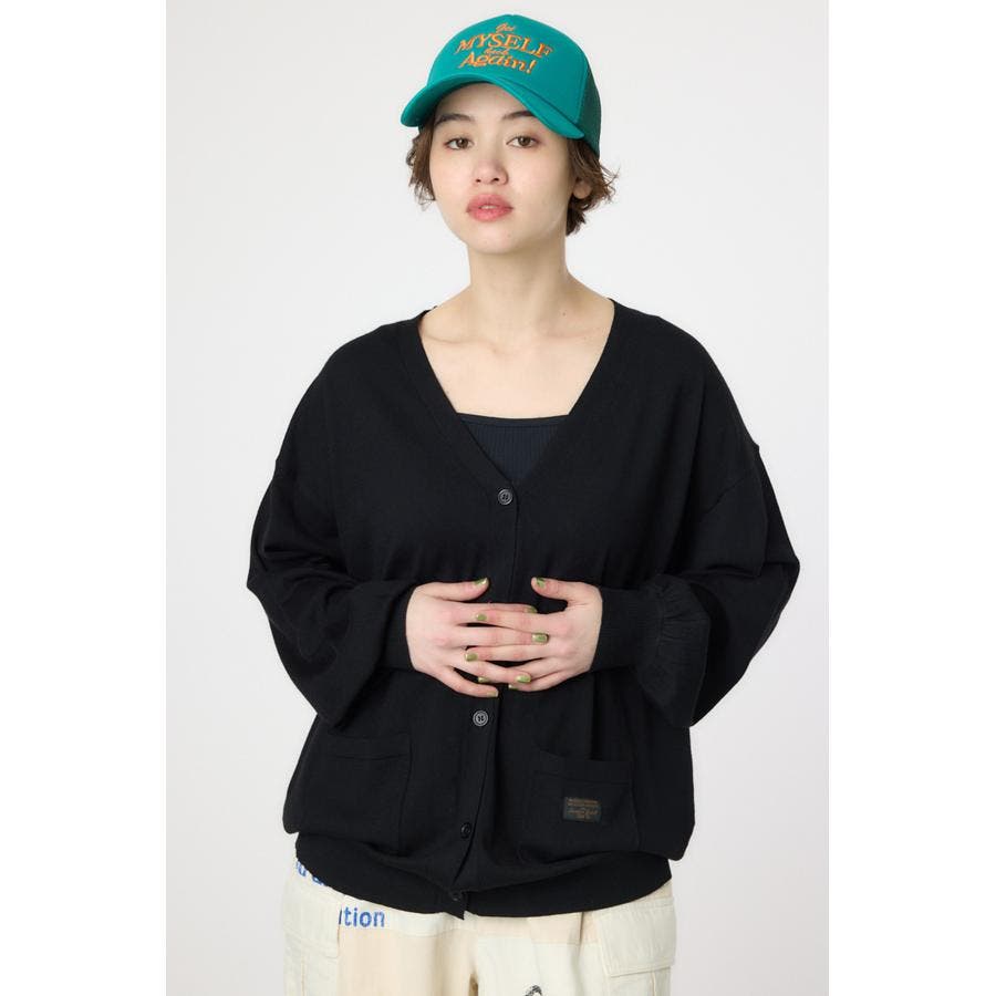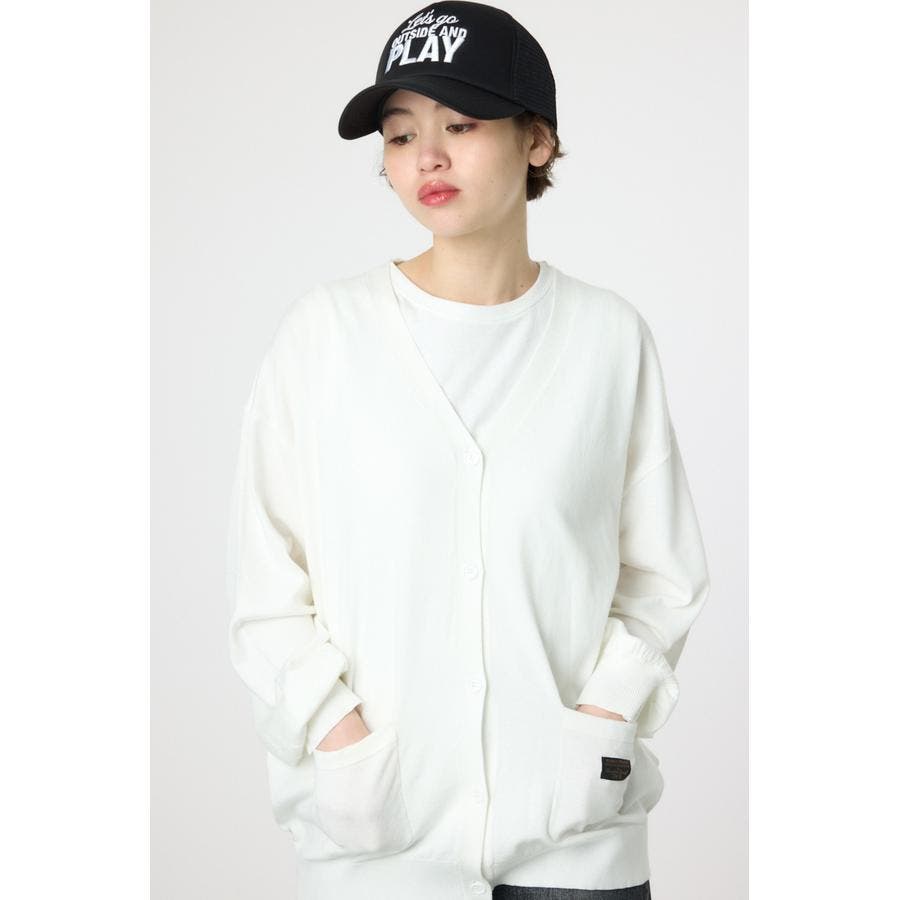 リラックス感の漂うルーズなカーディガンにロゴをプリント、刺繍を施したロゴニットカーディガン。