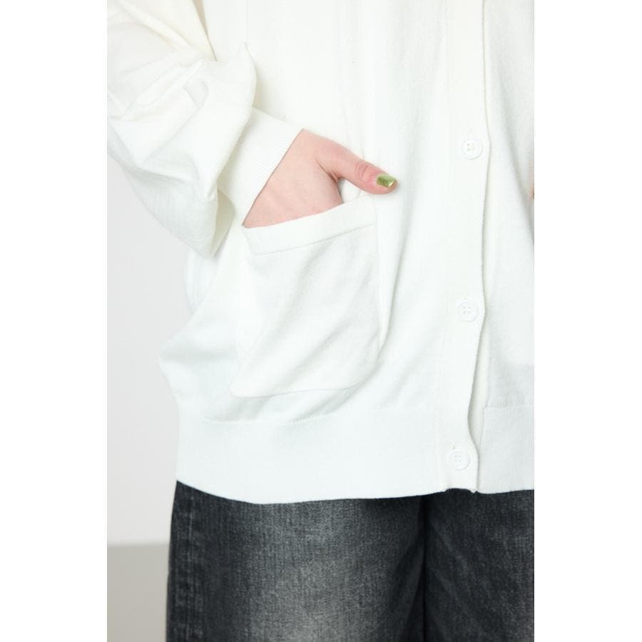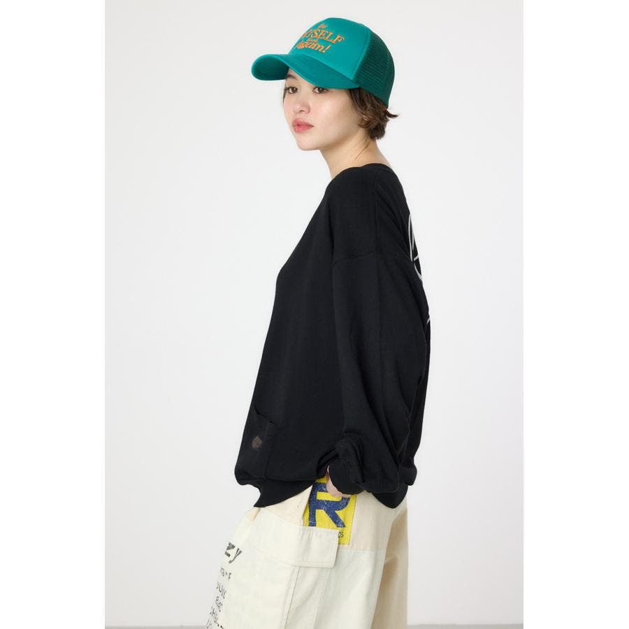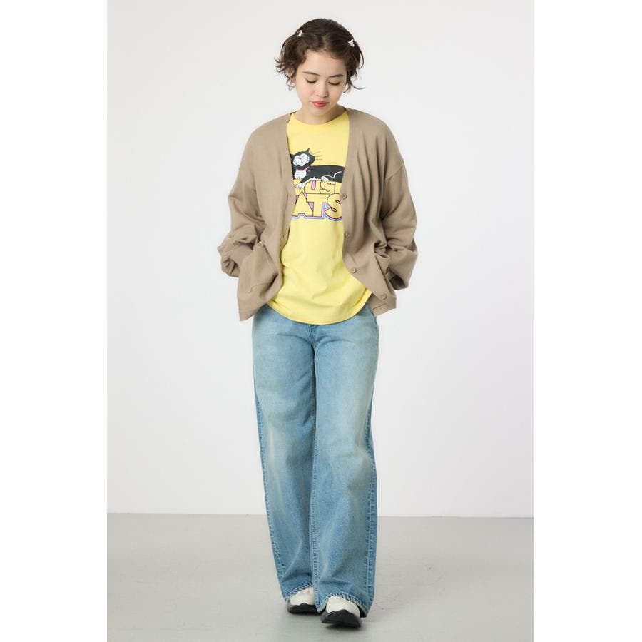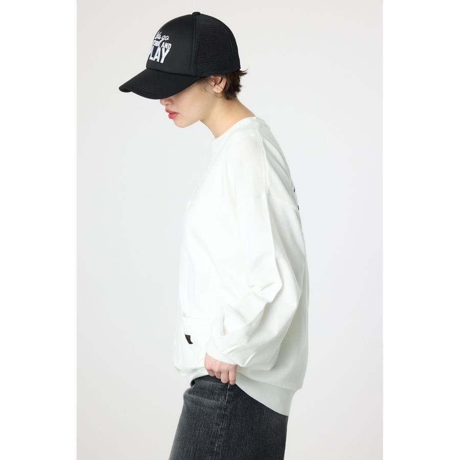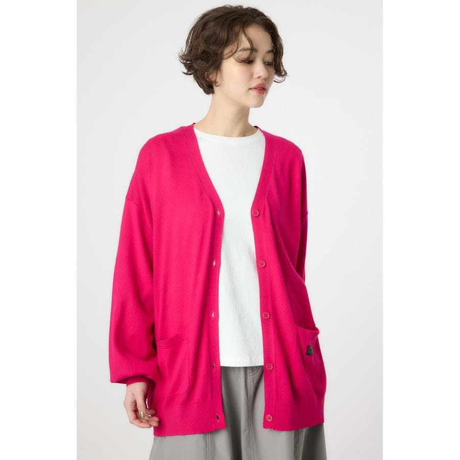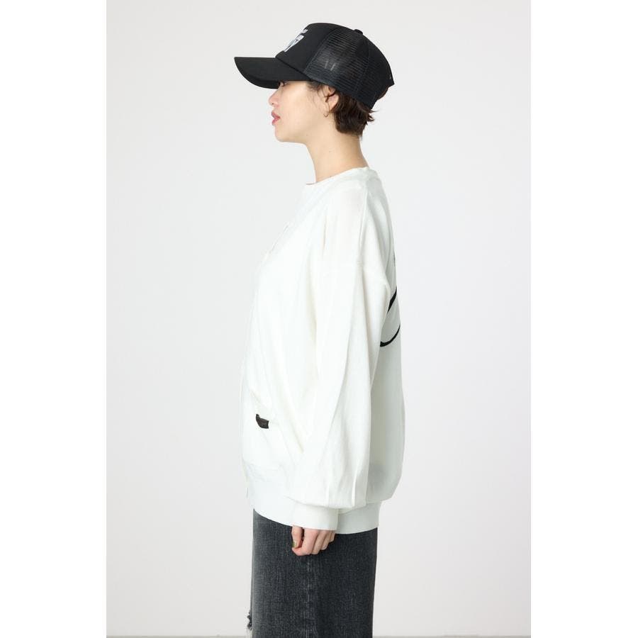 リラックス感の漂うルーズなカーディガンにロゴをプリント、刺繍を施したロゴニットカーディガン。