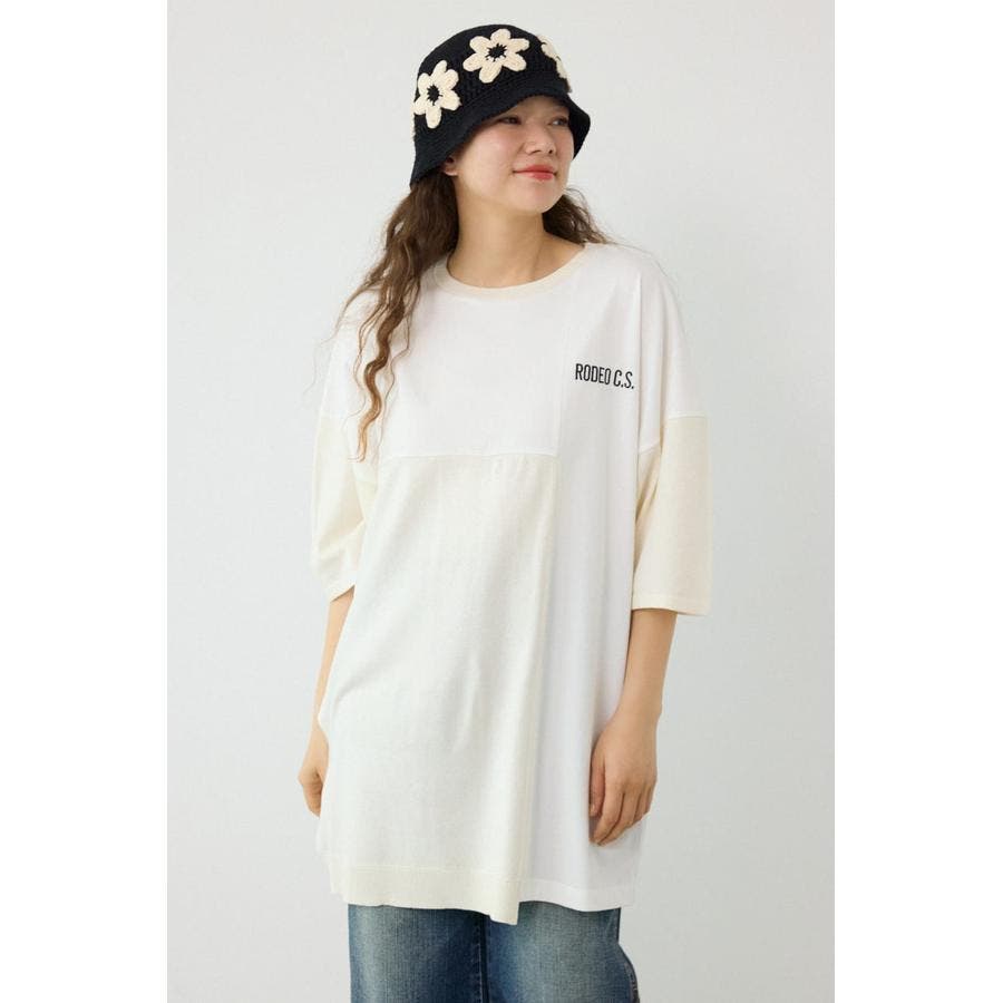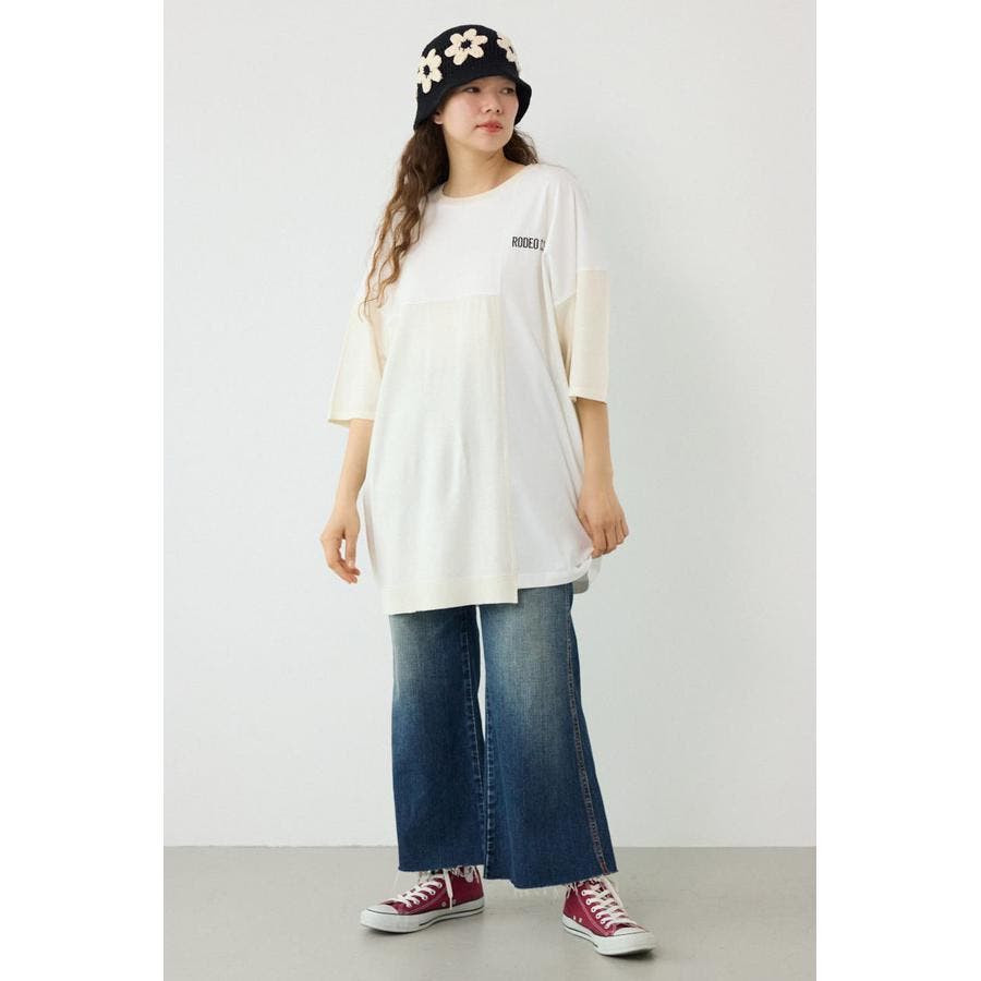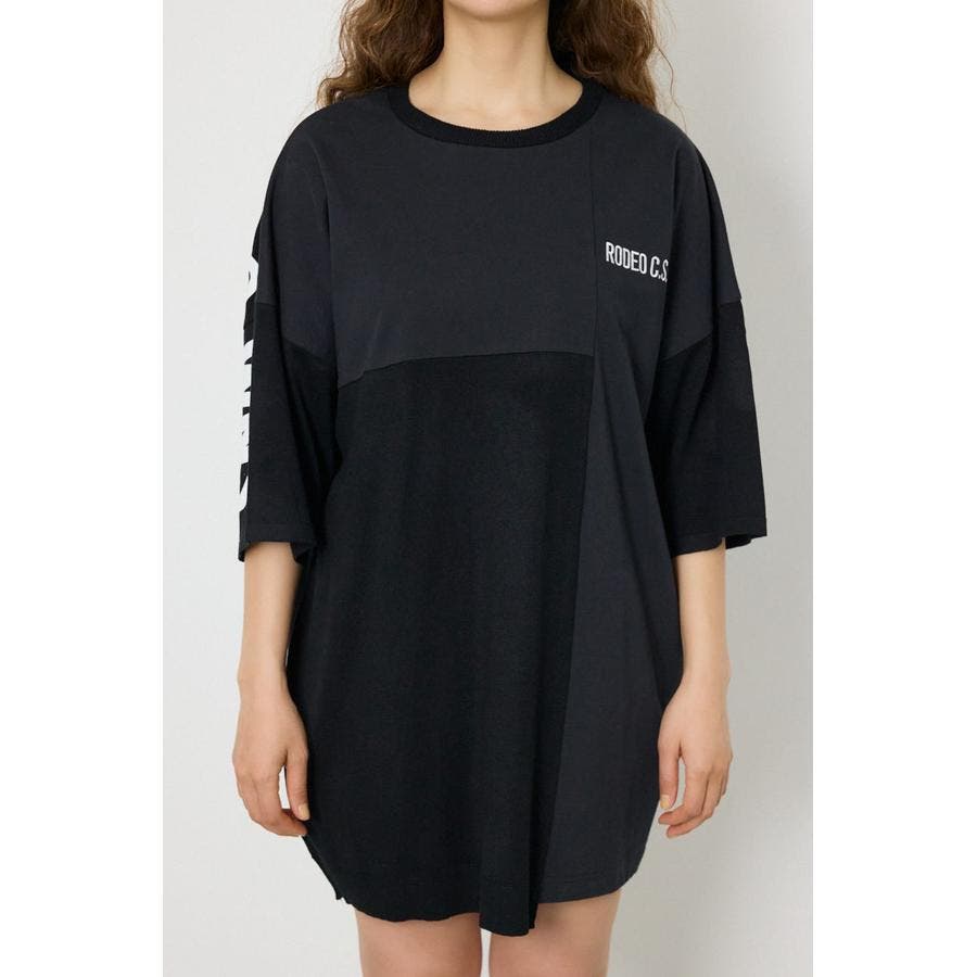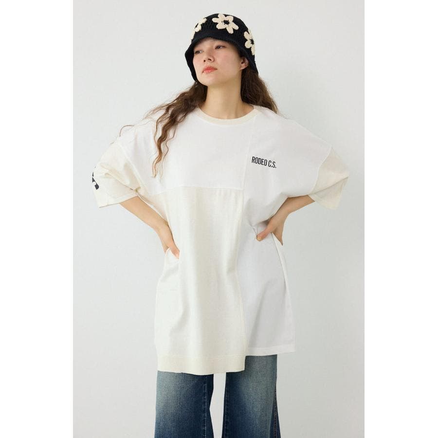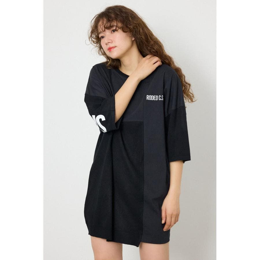 ニット素材とカットソー素材をパッチワークの様に組み合わせたRODEOらしいワンピースです。