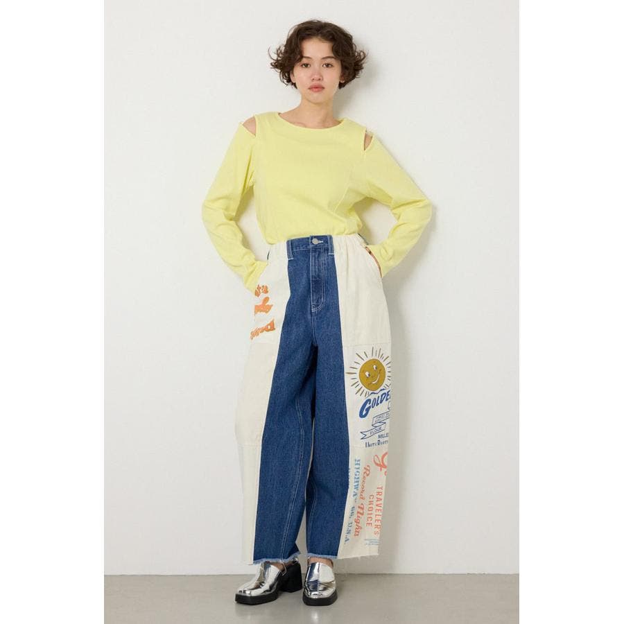 無地アイテムとの合わせでパンツデザインをコーディネートのポイントにお楽しみください。