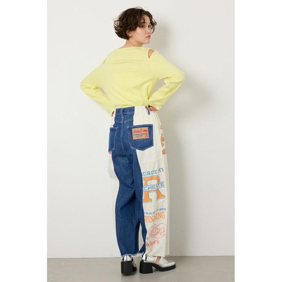 まるでヴィンテージのエコバッグのようなファブリックとデニムとのドッキングはロデオならではのデザイン。