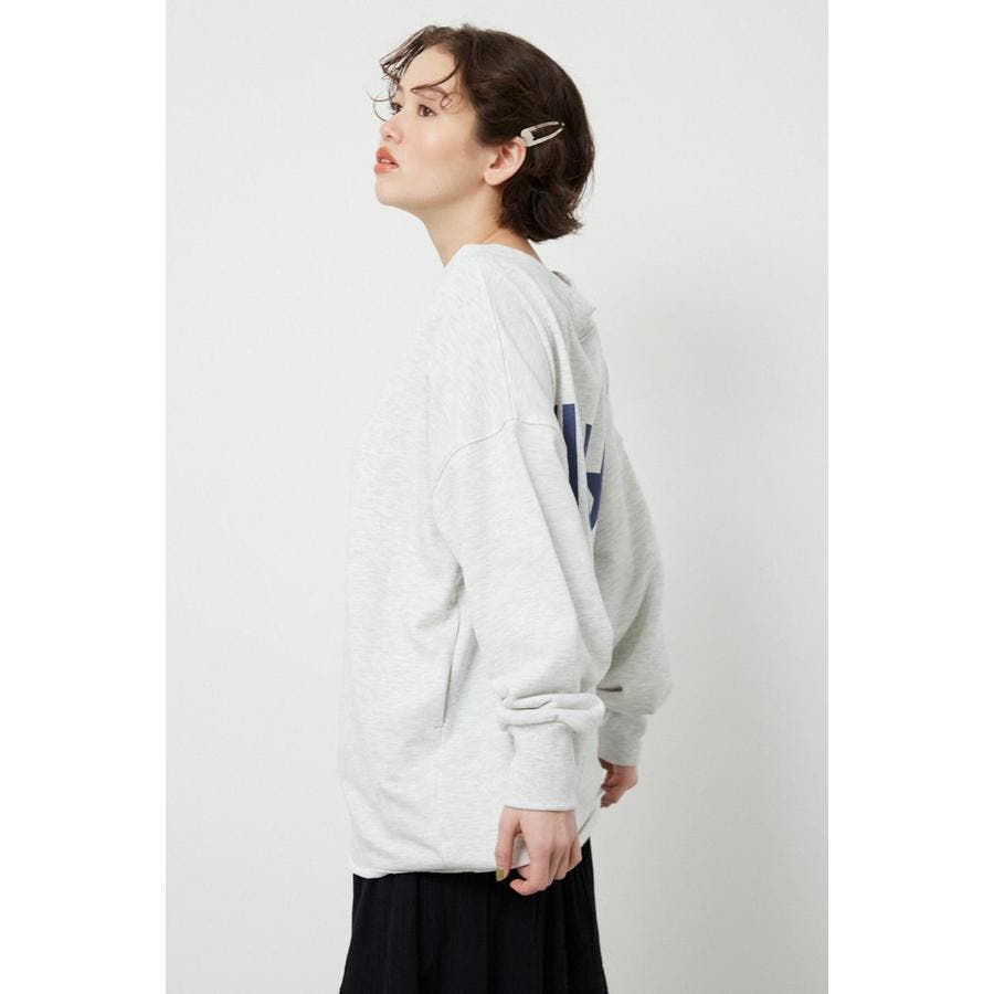 前後での着用はもちろん、ワンオフショルダーとしても着用できる2WAY仕様のスウェット。