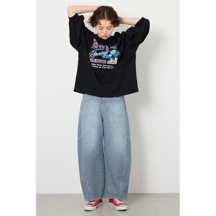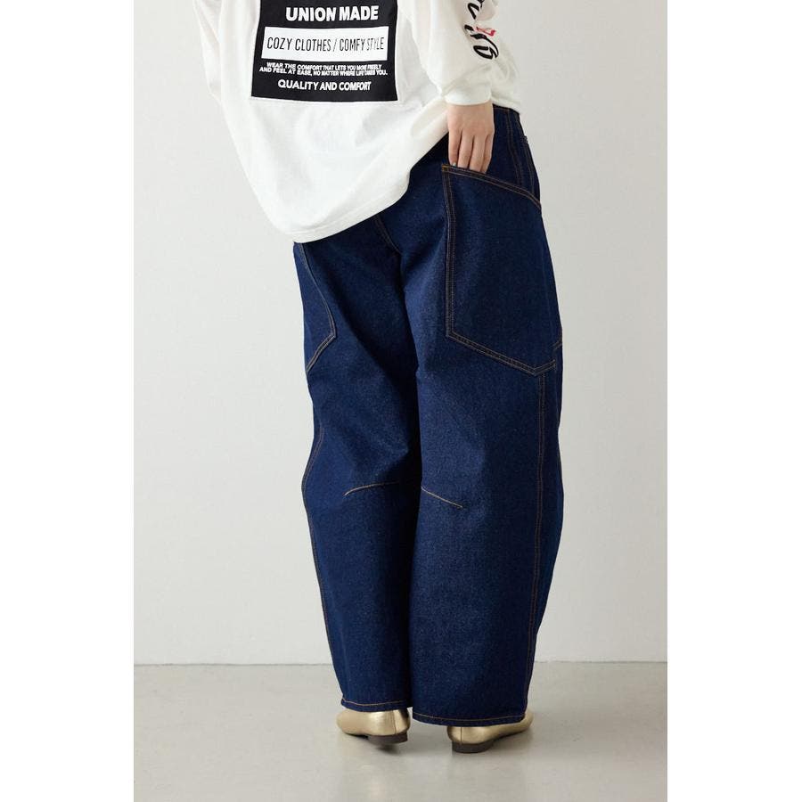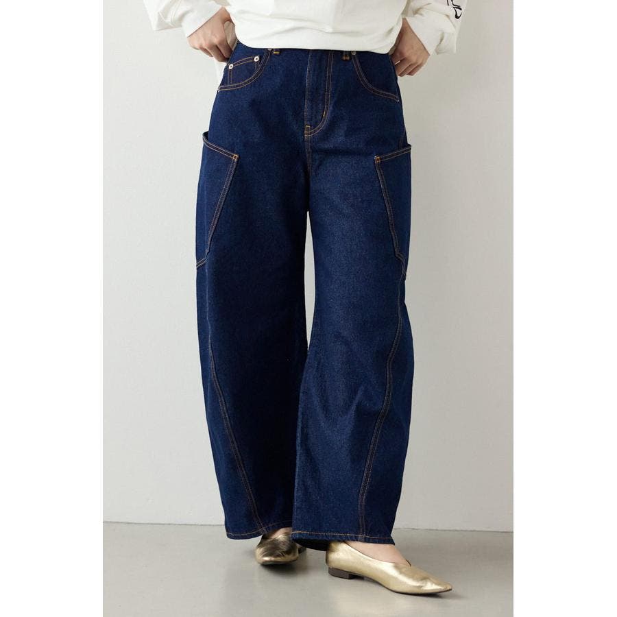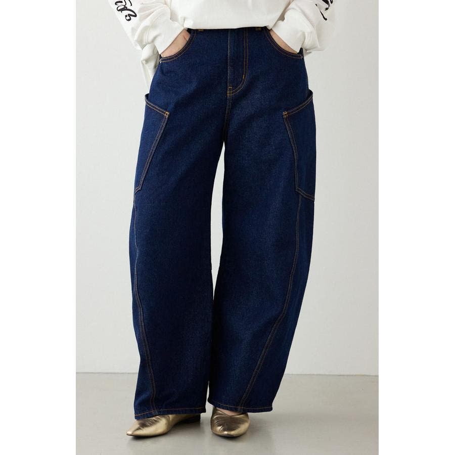 トレンド感のある、ワイドカーブシルエットのデザインデニム。