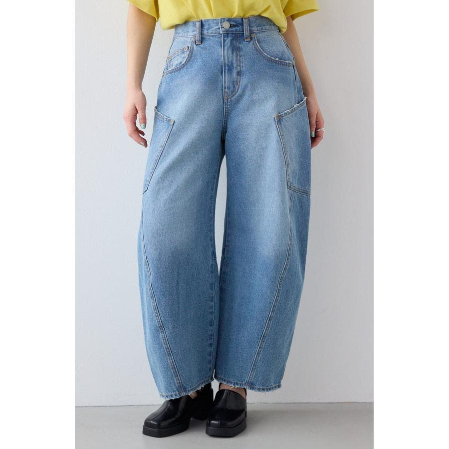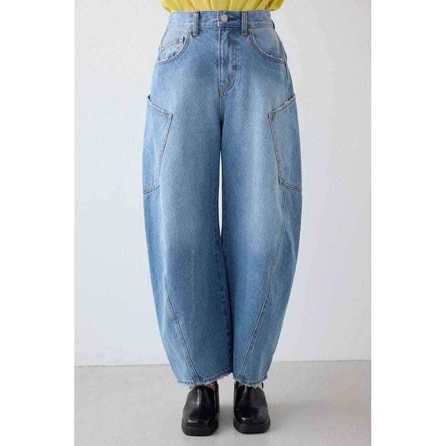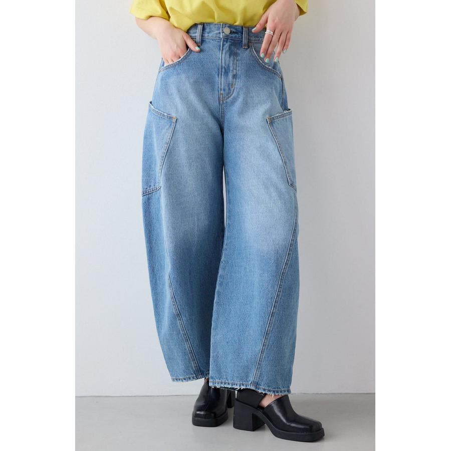カーブさせたシルエットとサイドのビッグポケットがポイントのバルーンデニム。