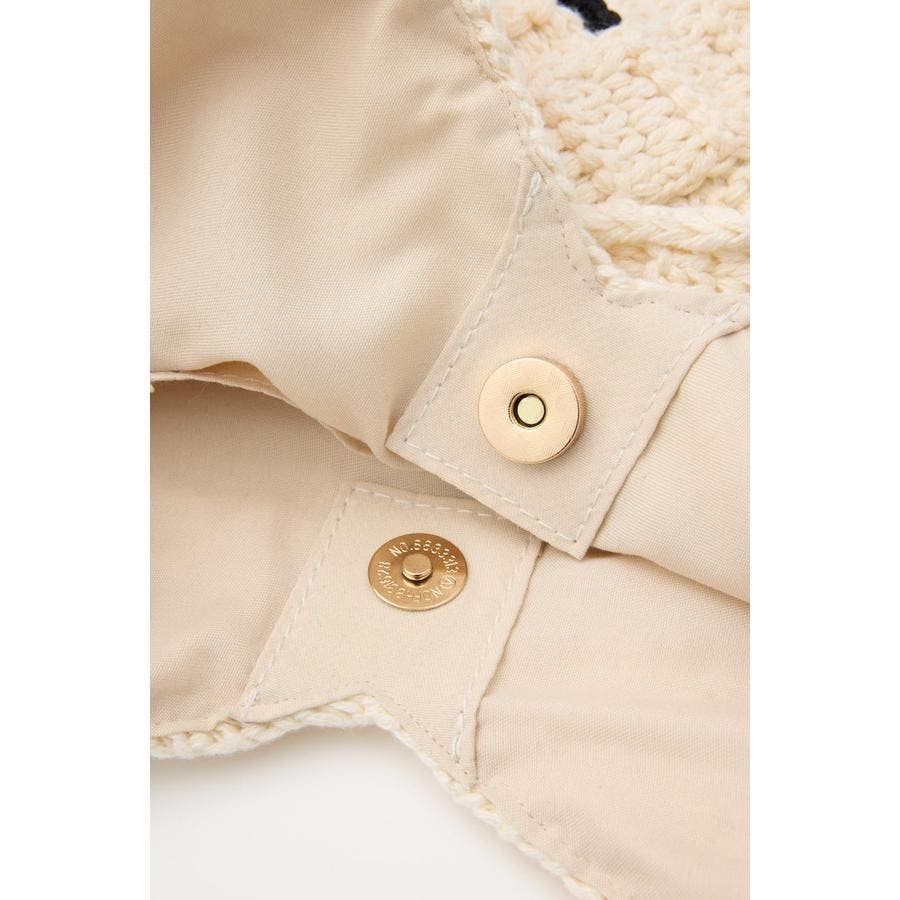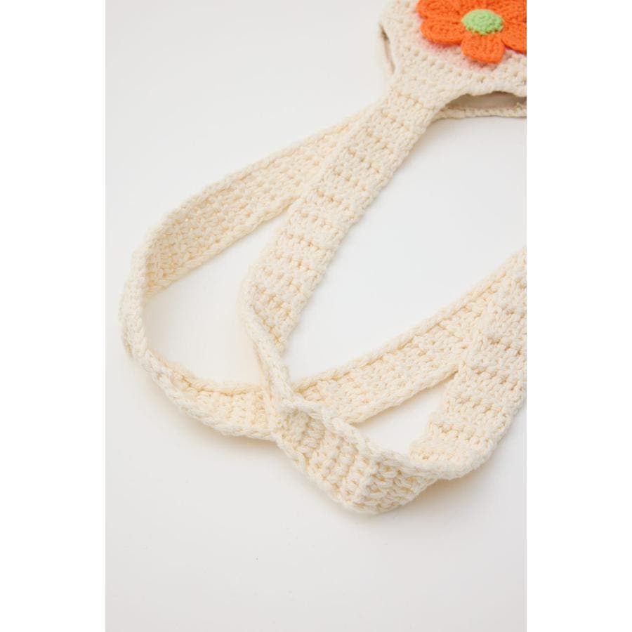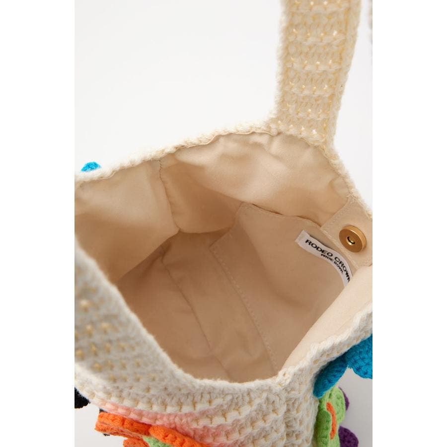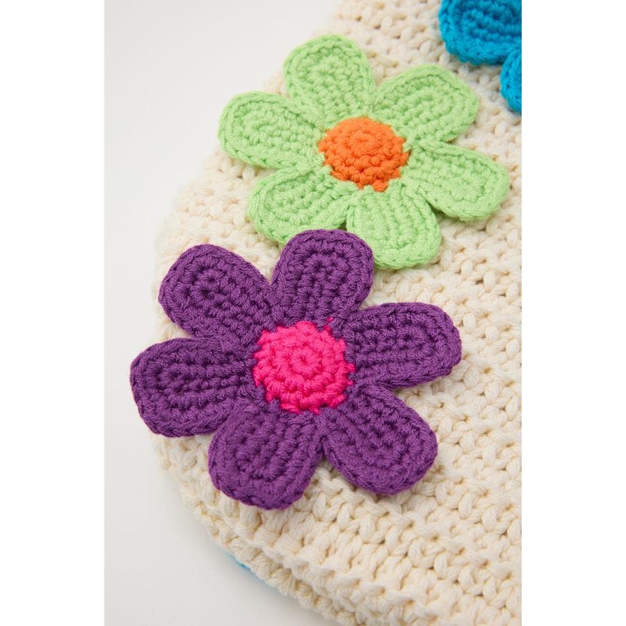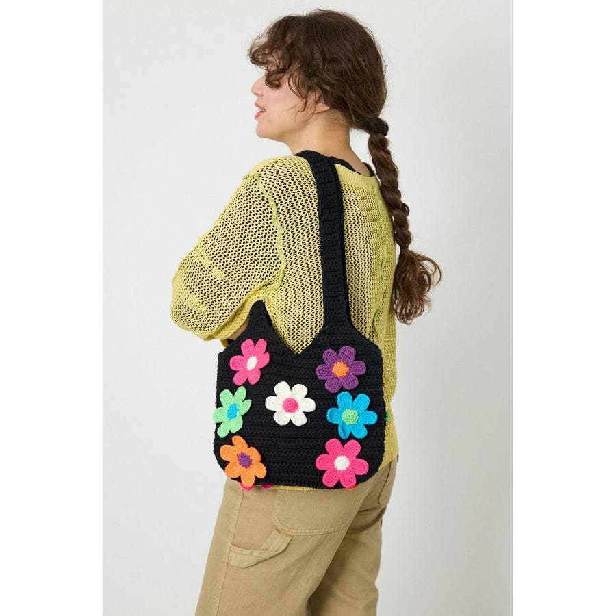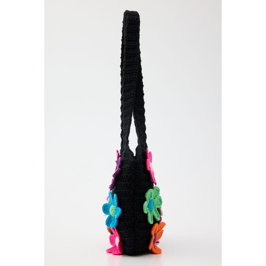 ビビットカラーのフラワーモチーフを、ふんだんにデザインしたニットバッグ。