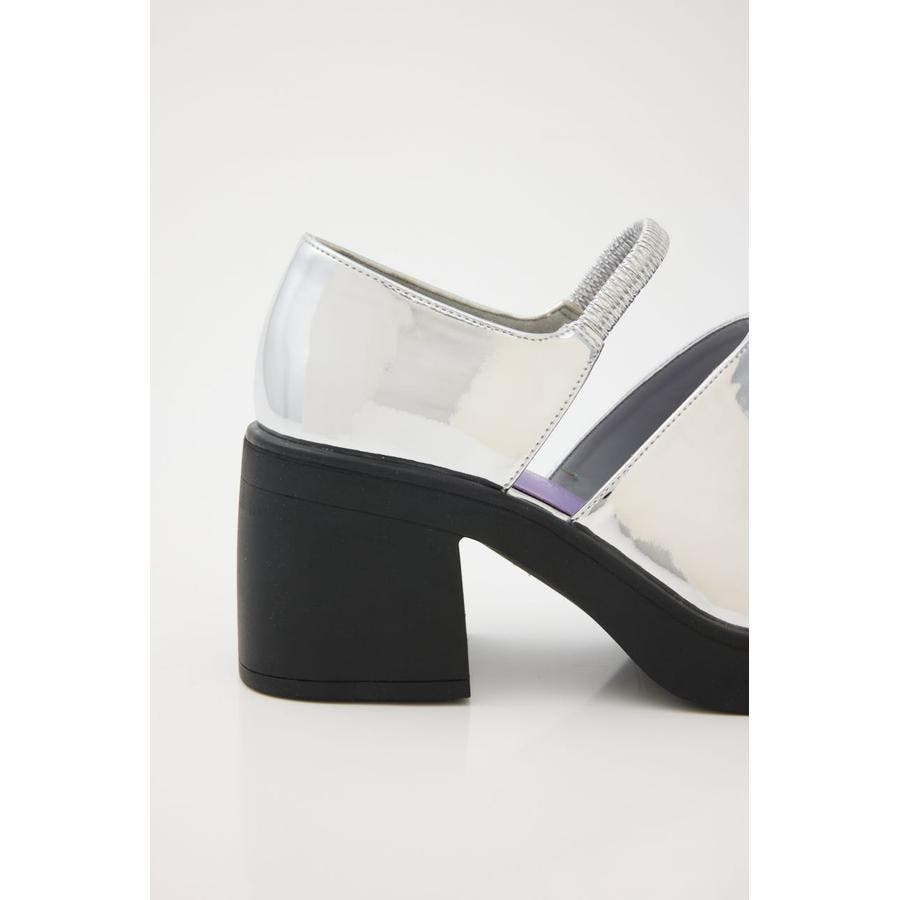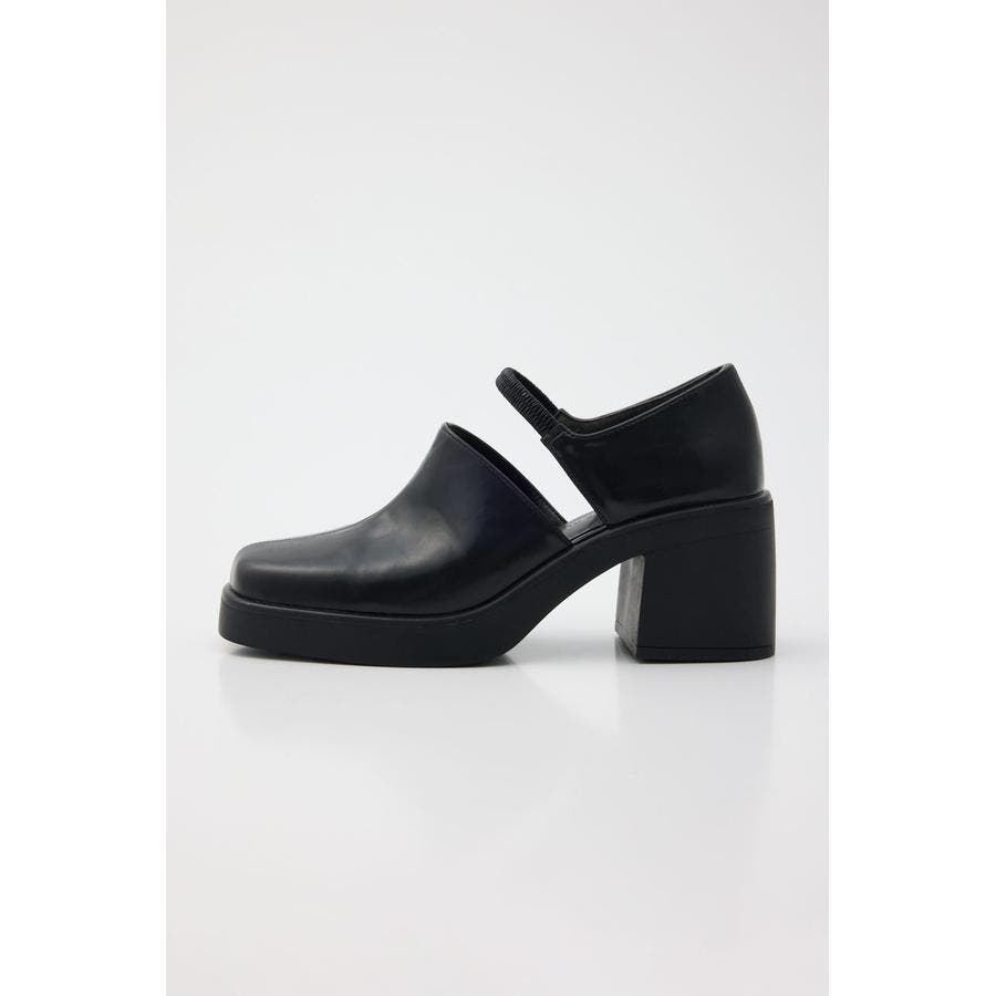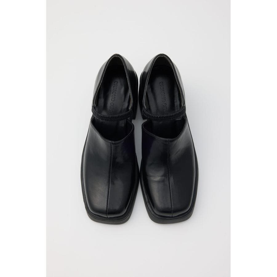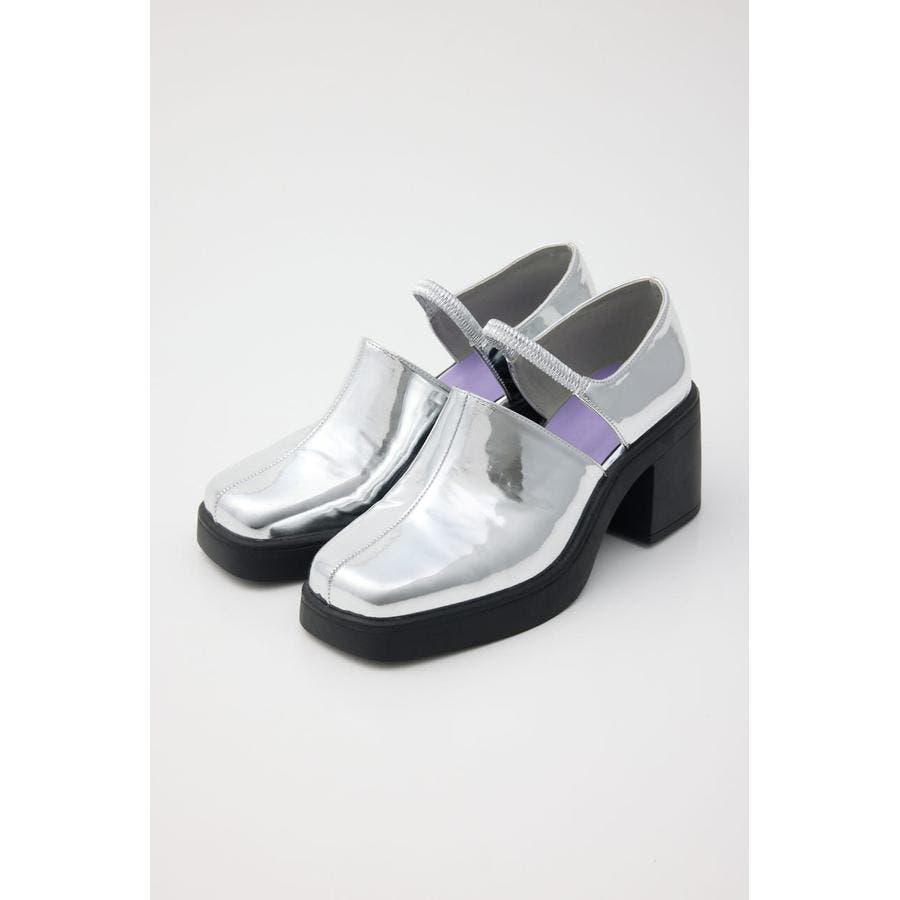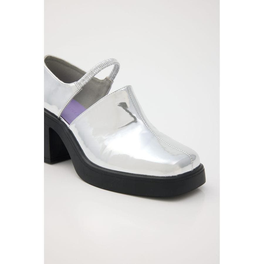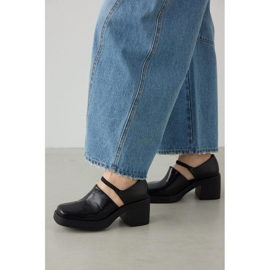 フロントカバーとかかと部分がセパレートタイプになったデザインのパンプス。