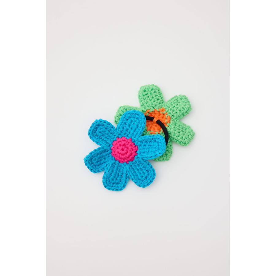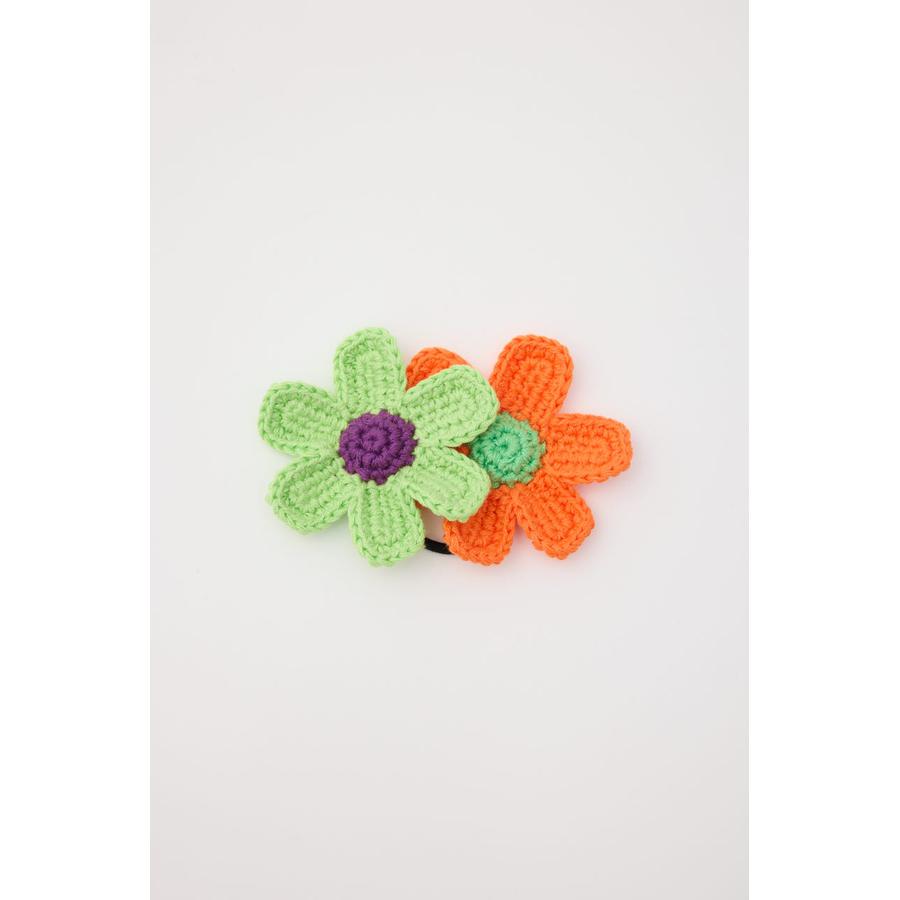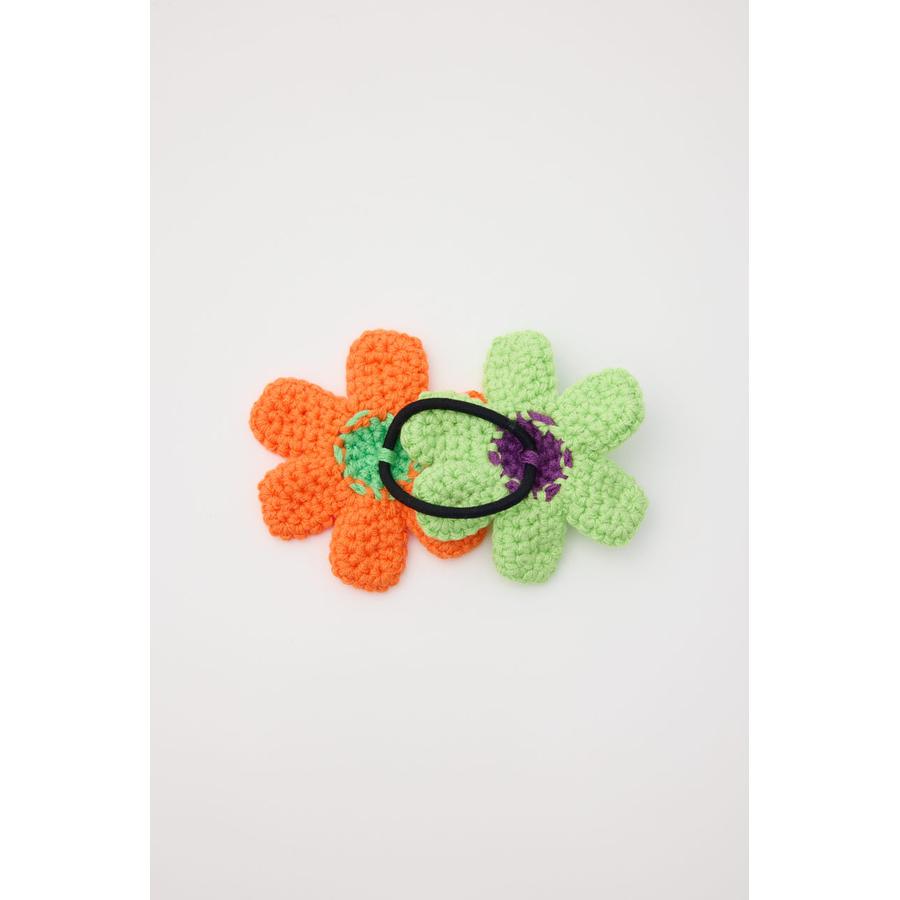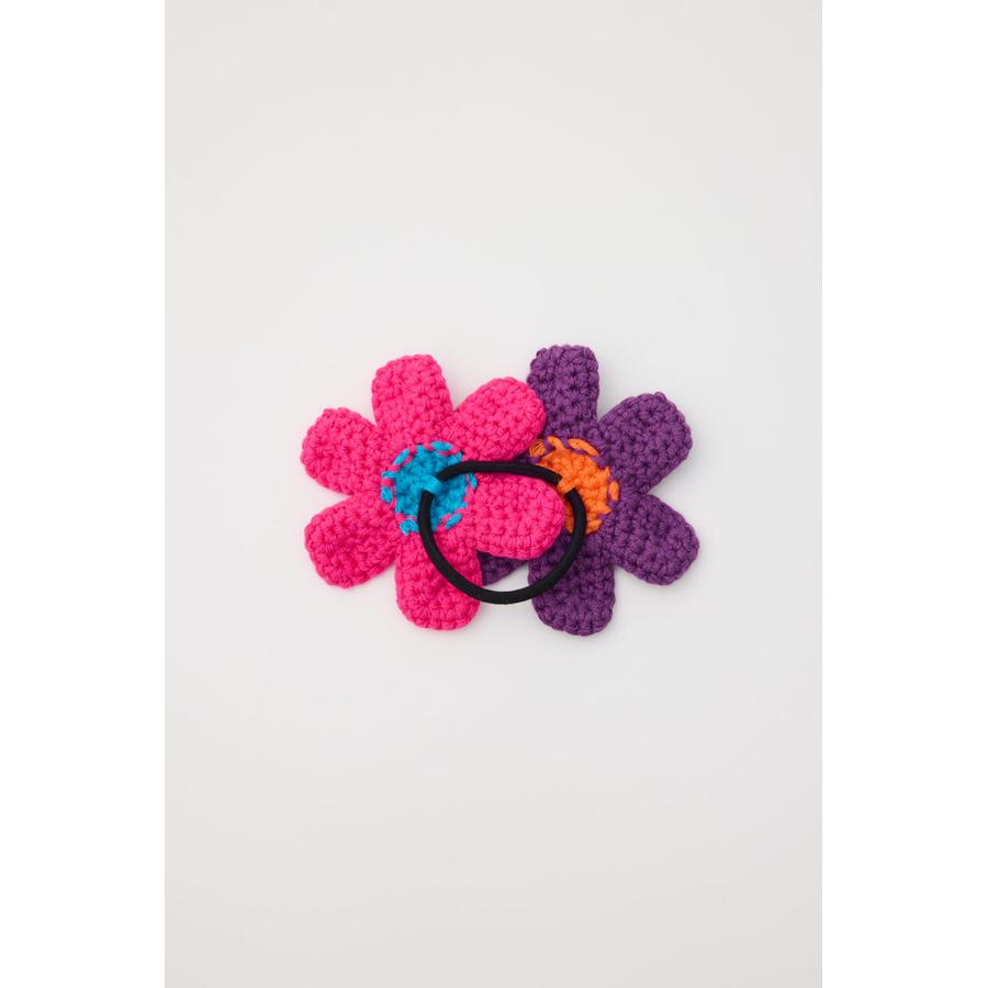 ビビットカラーのフラワーモチーフがセットになったニットヘアゴム。