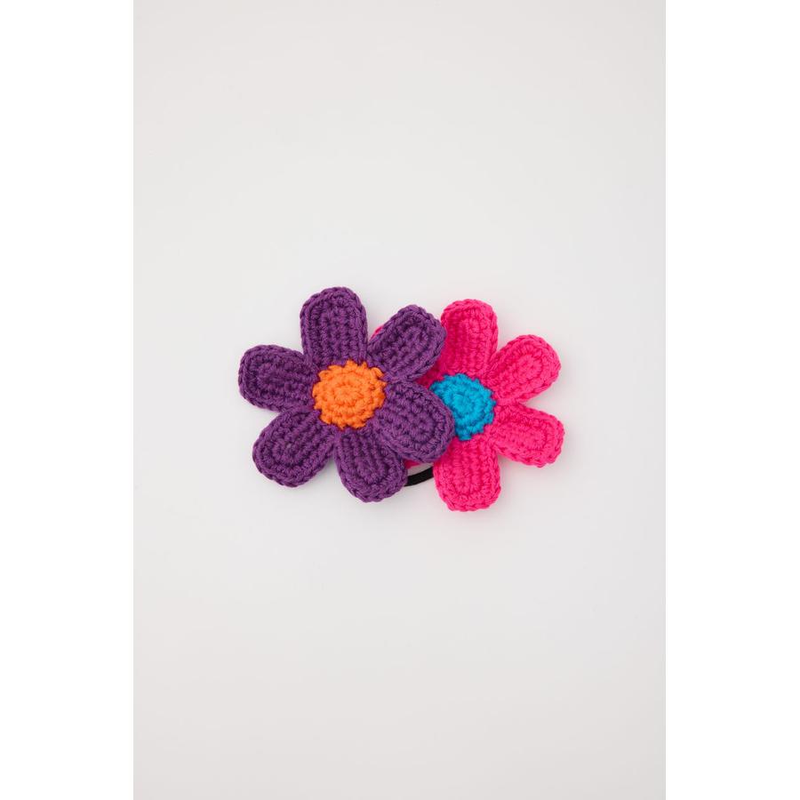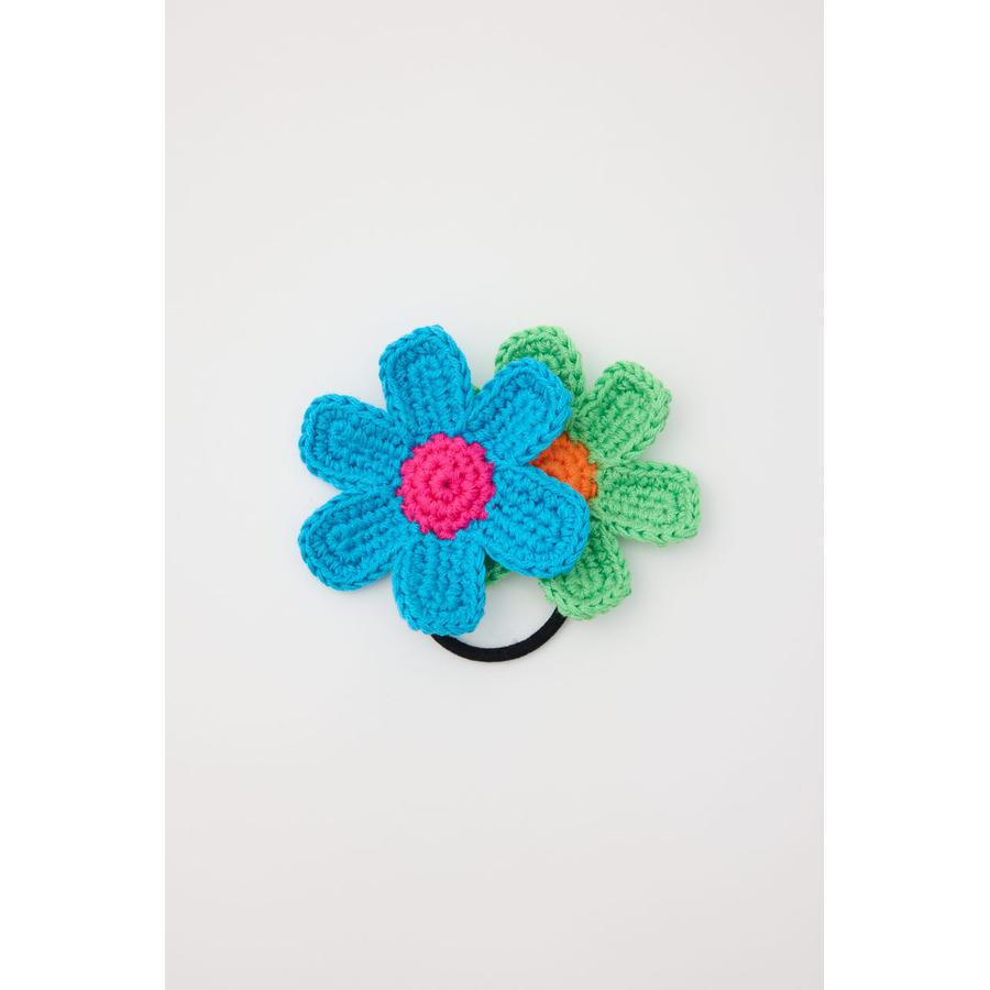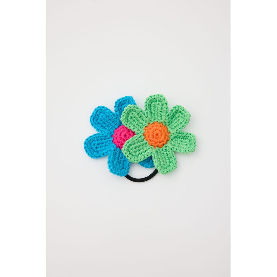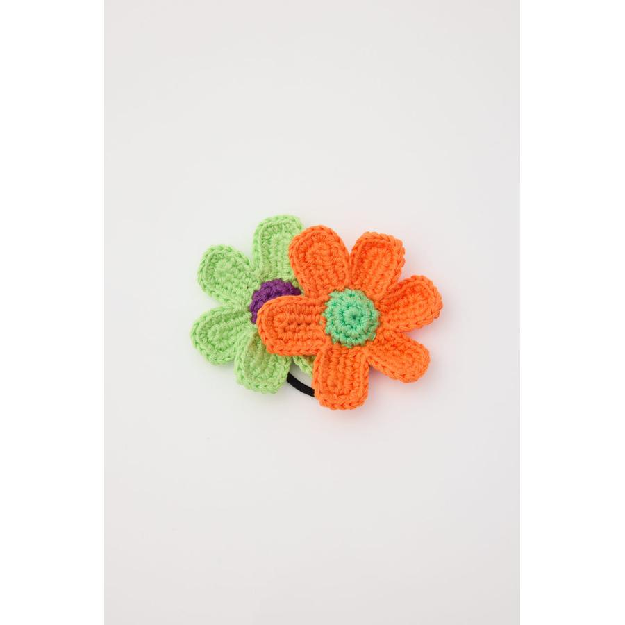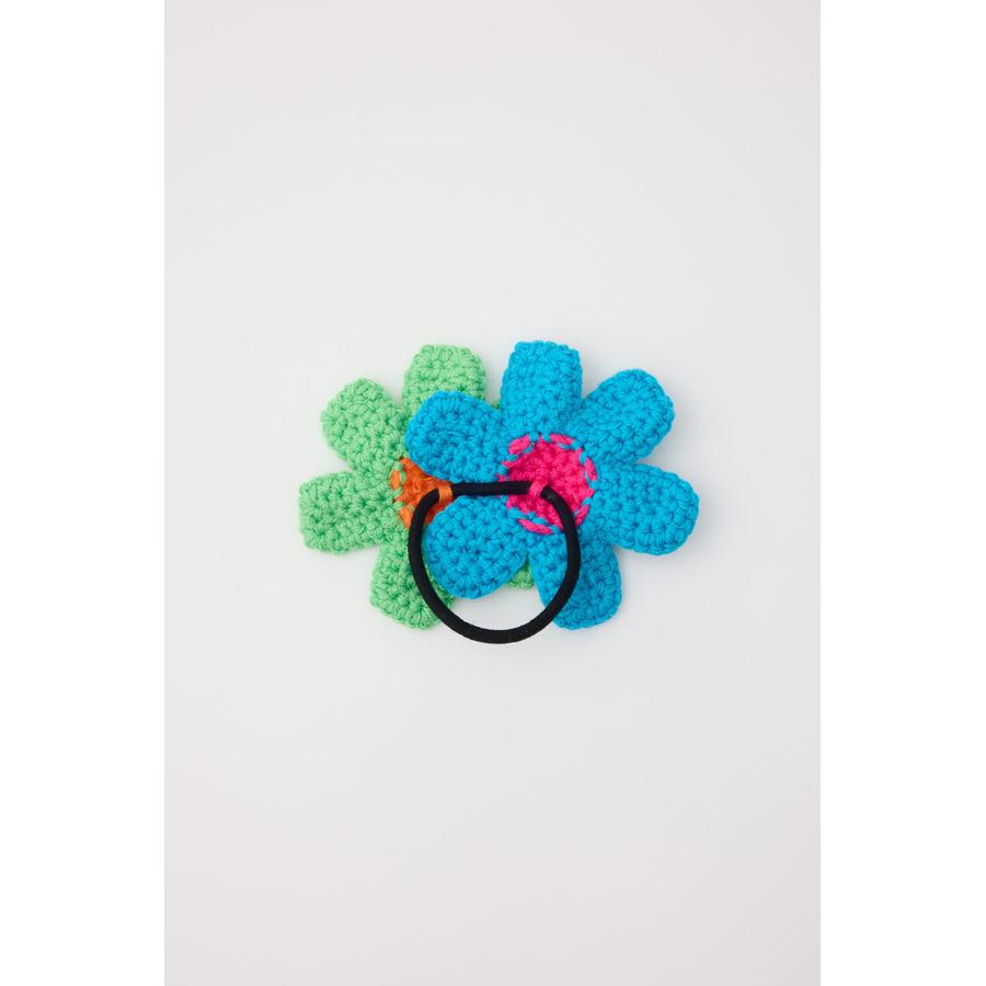 ビビットカラーのフラワーモチーフがセットになったニットヘアゴム。