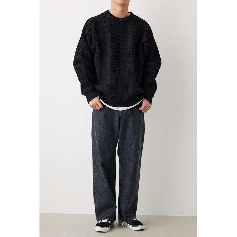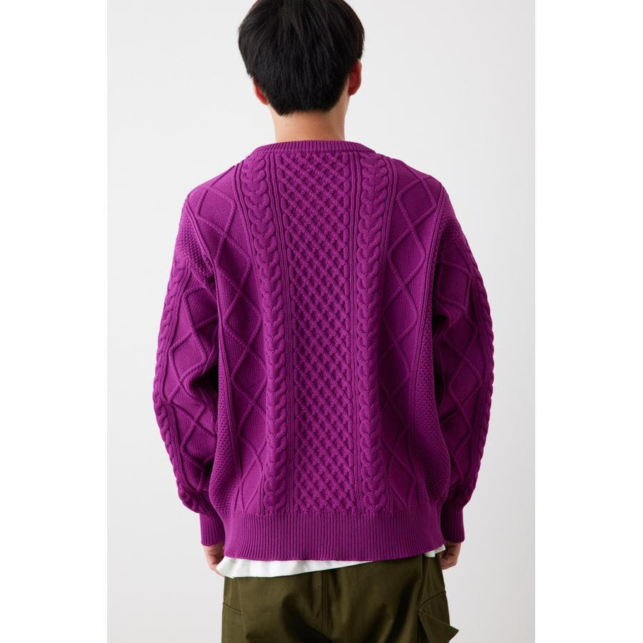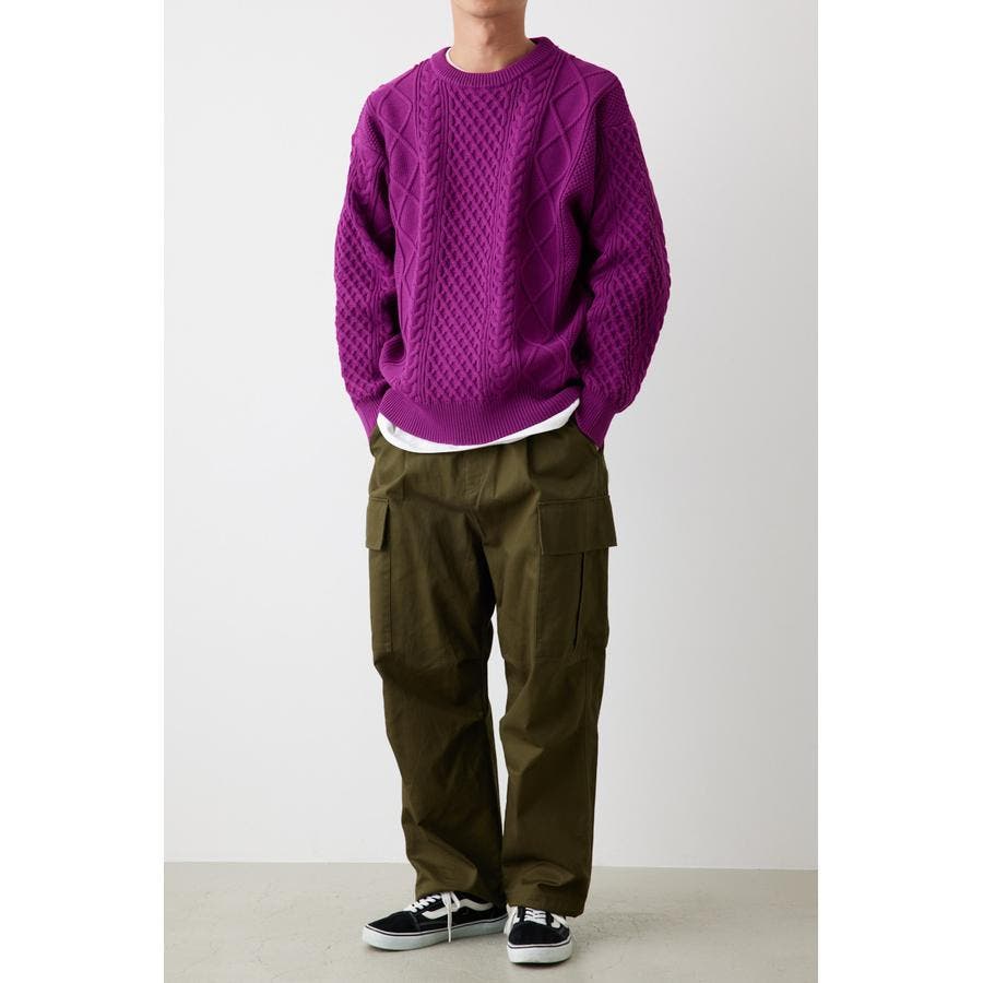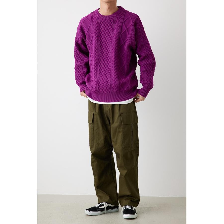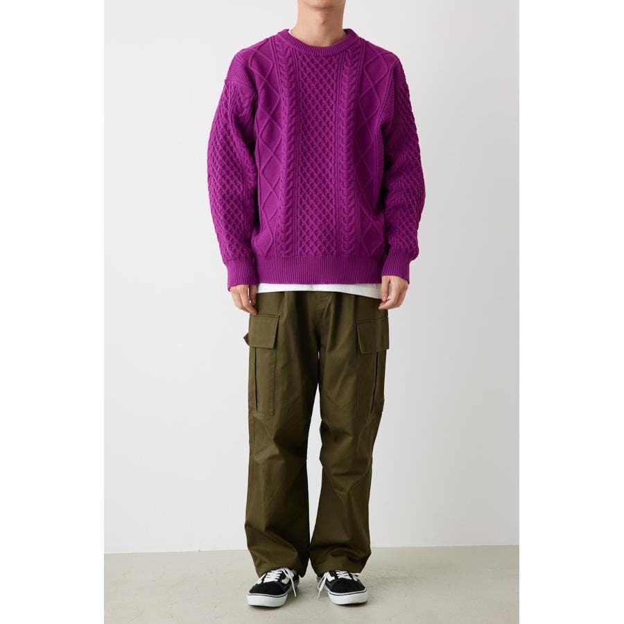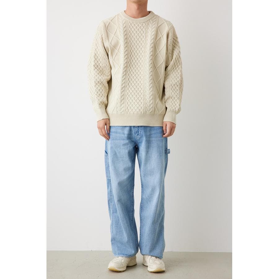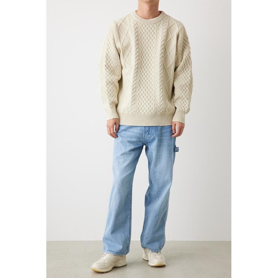今期一押しの洗えて軽い新時代ニット。丸みの帯びたリラックス感のあるビッグシルエットがポイント。ケーブル編みですが、驚くほど軽い着心地。家庭洗濯もでき、取り扱いも簡単なアイテムです。