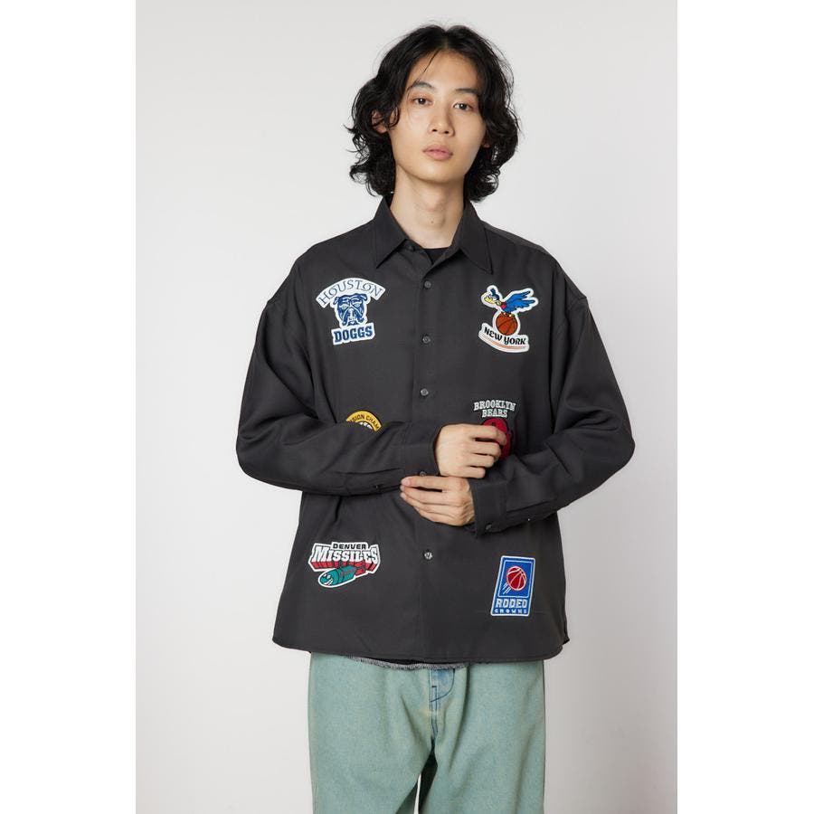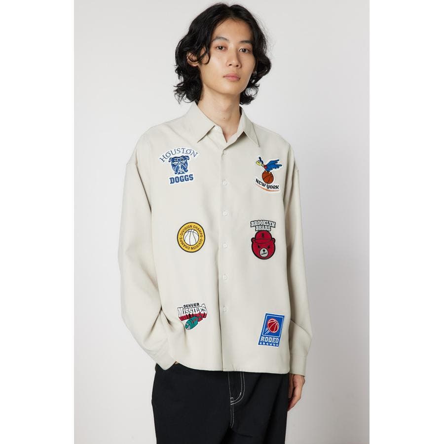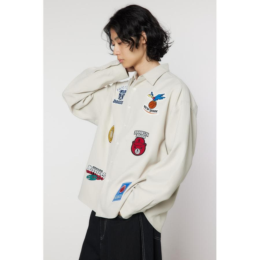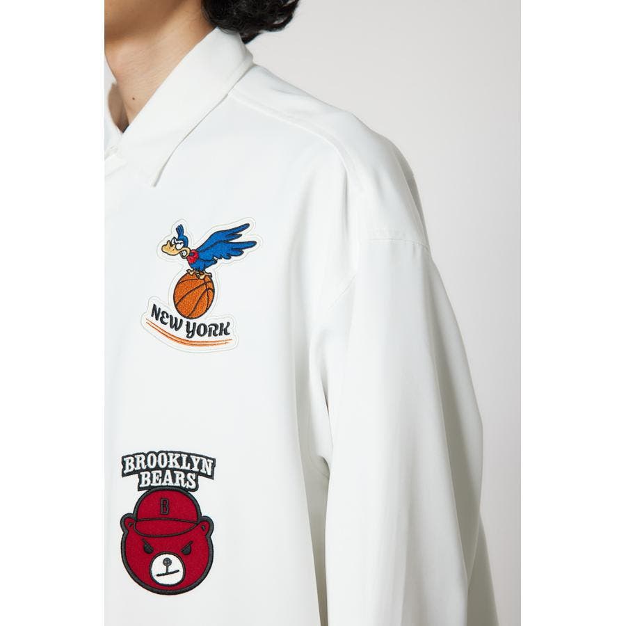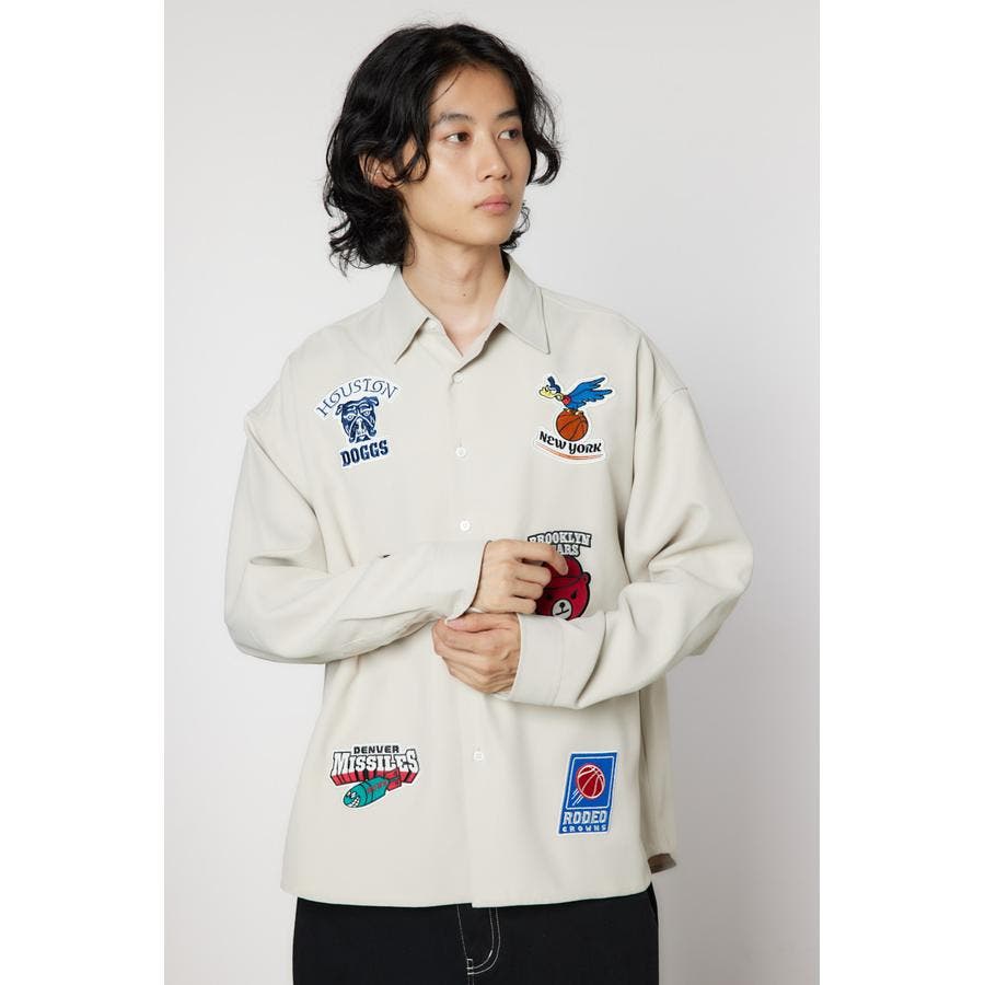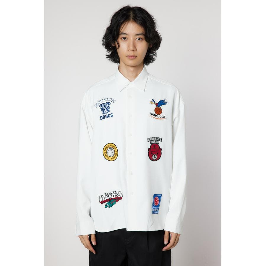 フロントに架空のチームのデザインワッペン刺繍を施した長袖シャツ。柔らかいツイル素材を使用しています。やや大きめのシルエットなので、サラッと羽織ったり、前を閉めてインナーとしても着用できるアイテムです。