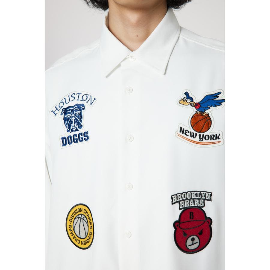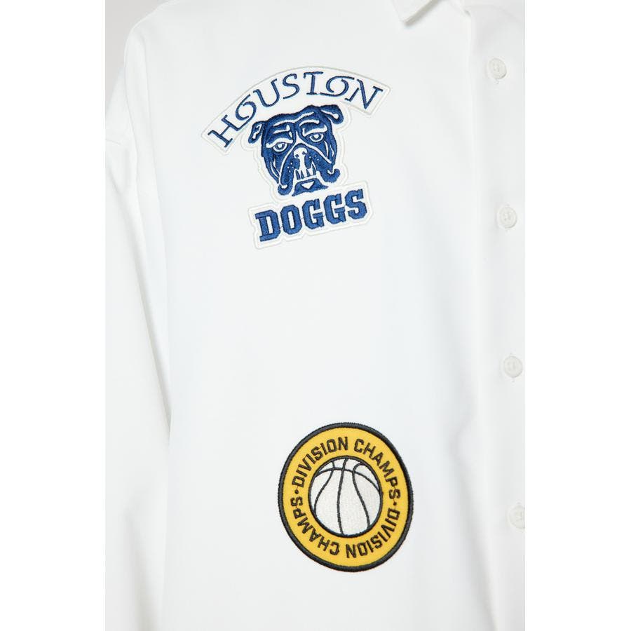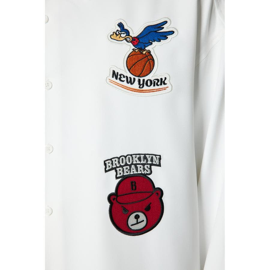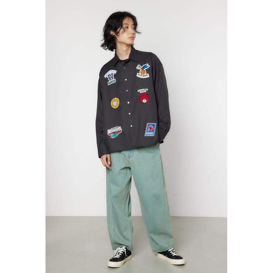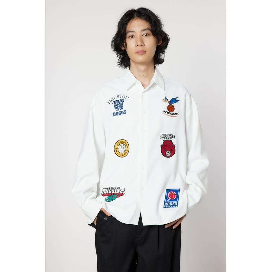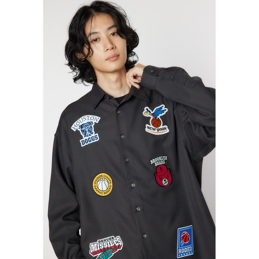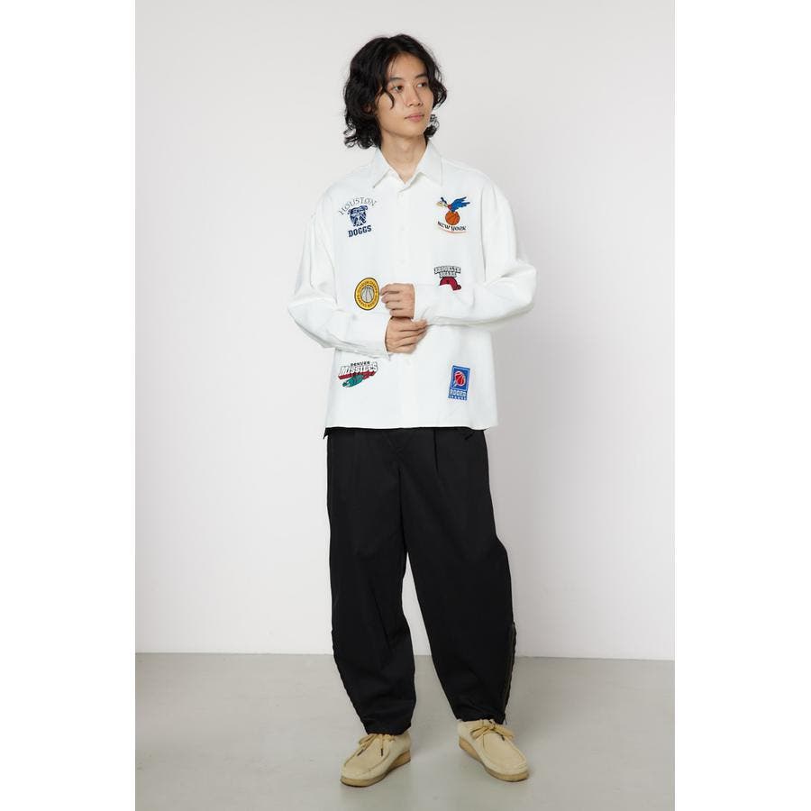 フロントに架空のチームのデザインワッペン刺繍を施した長袖シャツ。柔らかいツイル素材を使用しています。やや大きめのシルエットなので、サラッと羽織ったり、前を閉めてインナーとしても着用できるアイテムです。