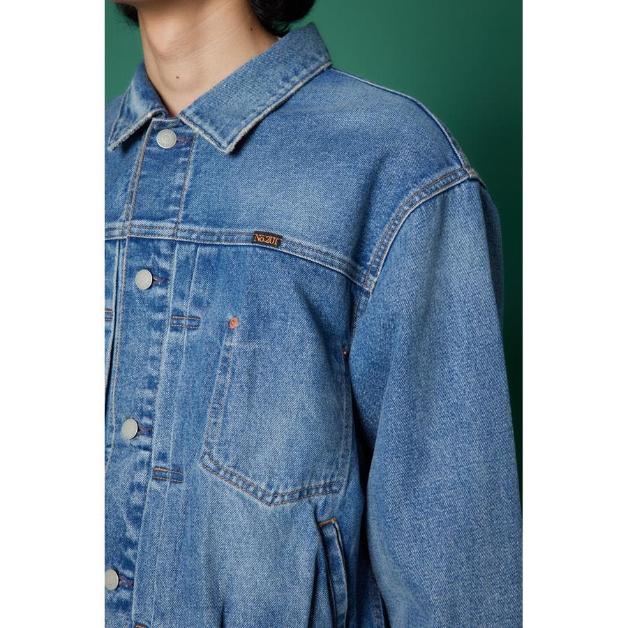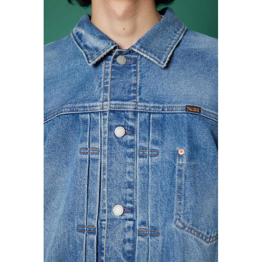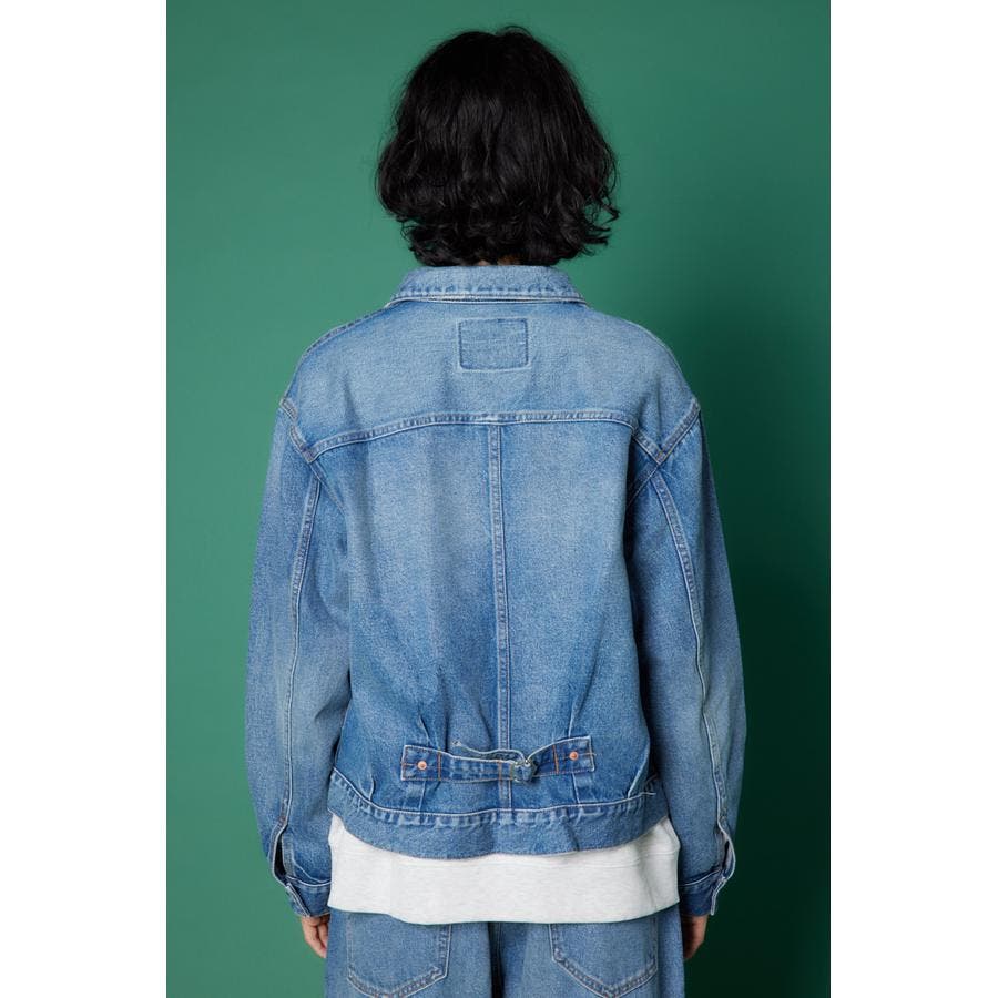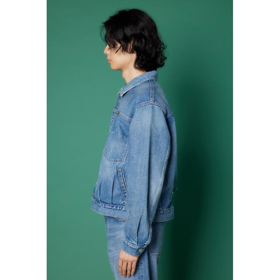 前面に入れたダブルプリーツ、シングル胸ポケット、フィット感を調整できるシンチバックなど、通称1stと呼ばれるデニムジャケットのヴィンテージスタイルをイメージし、再構築。