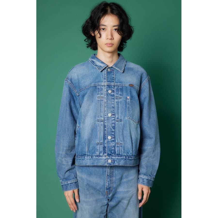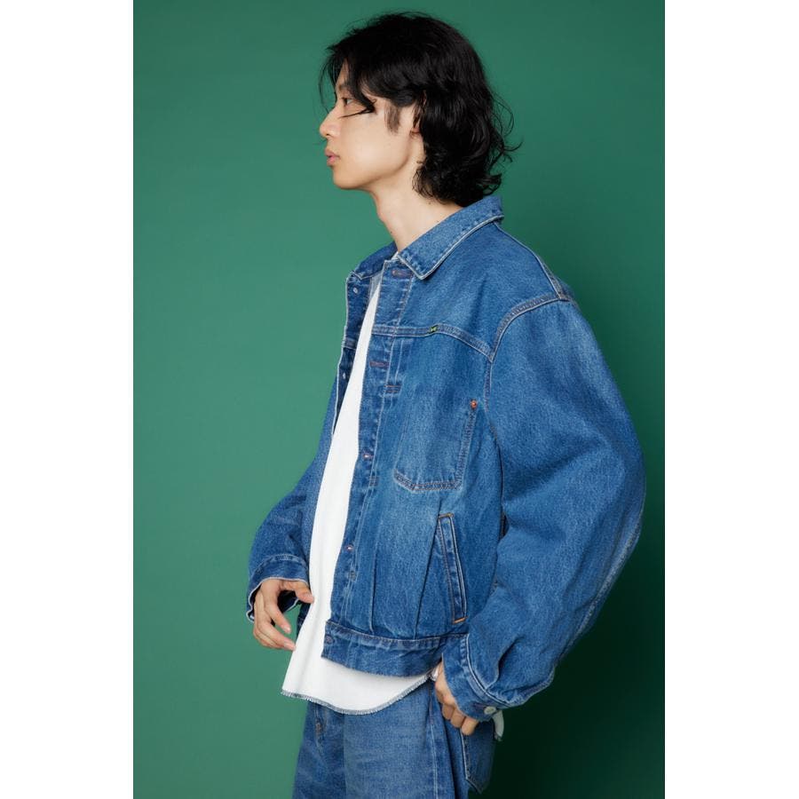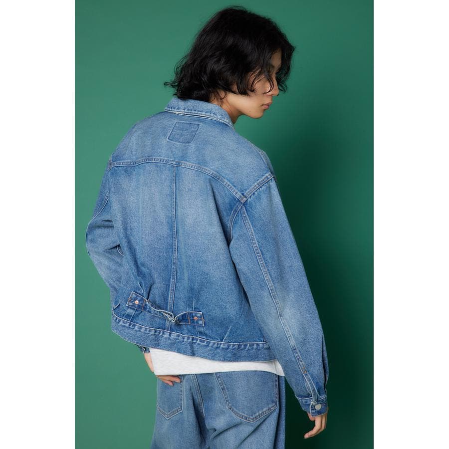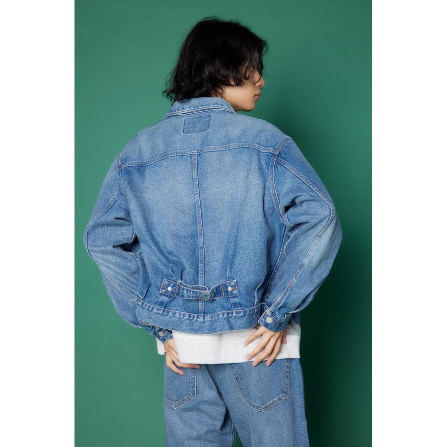 前面に入れたダブルプリーツ、シングル胸ポケット、フィット感を調整できるシンチバックなど、通称1stと呼ばれるデニムジャケットのヴィンテージスタイルをイメージし、再構築。