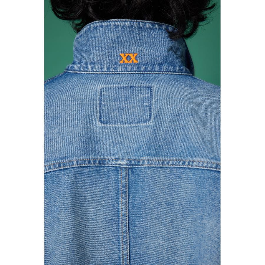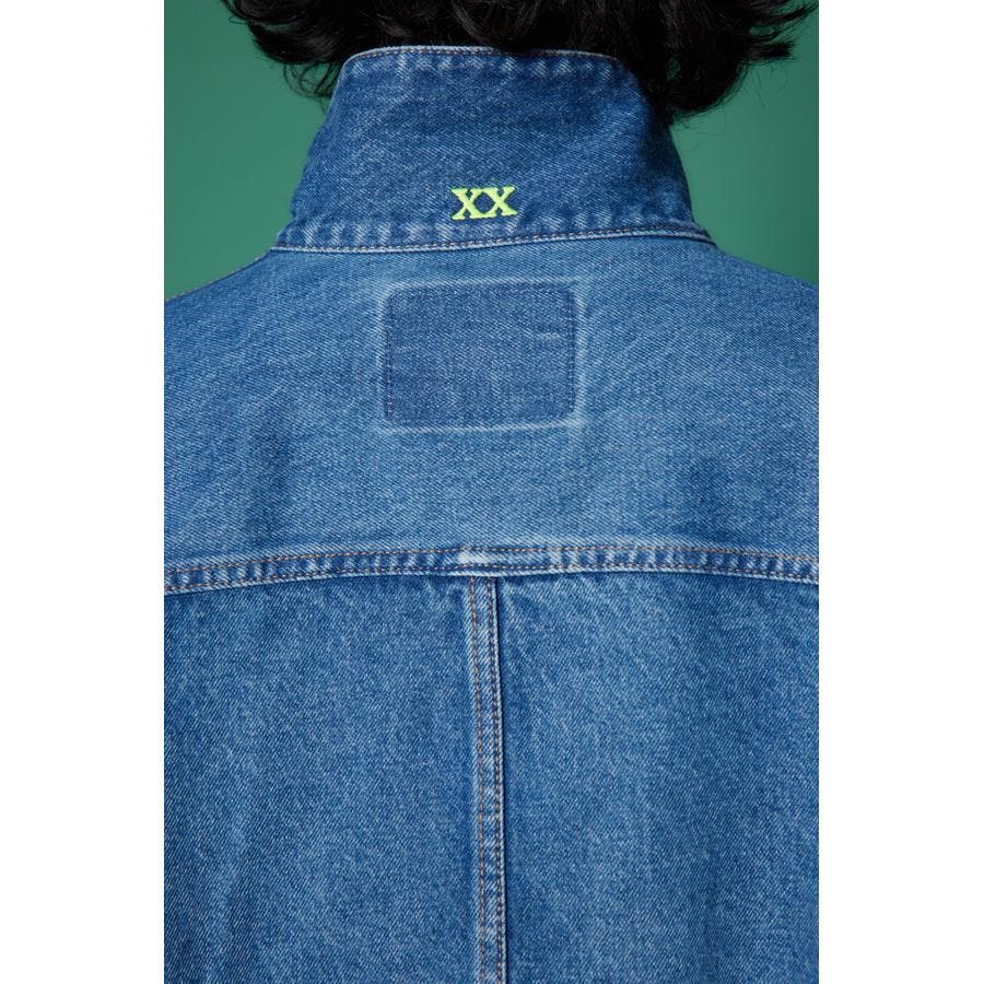着回しやすい程よいウォッシュ感の中には、ボトムス同様に蛍光色のピスネームと刺繍が映えています。