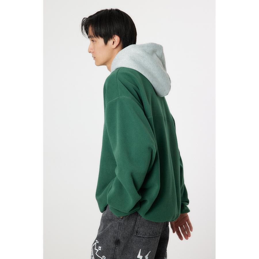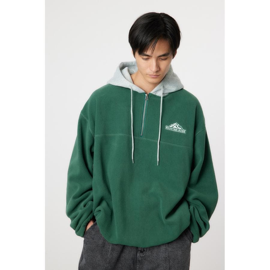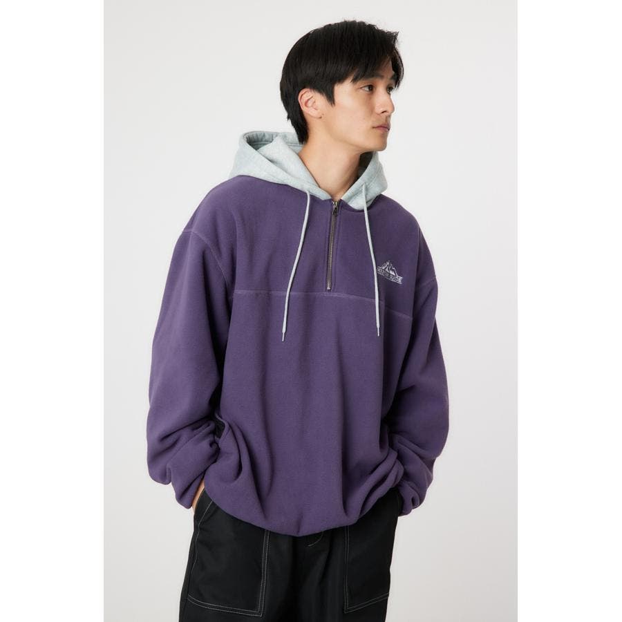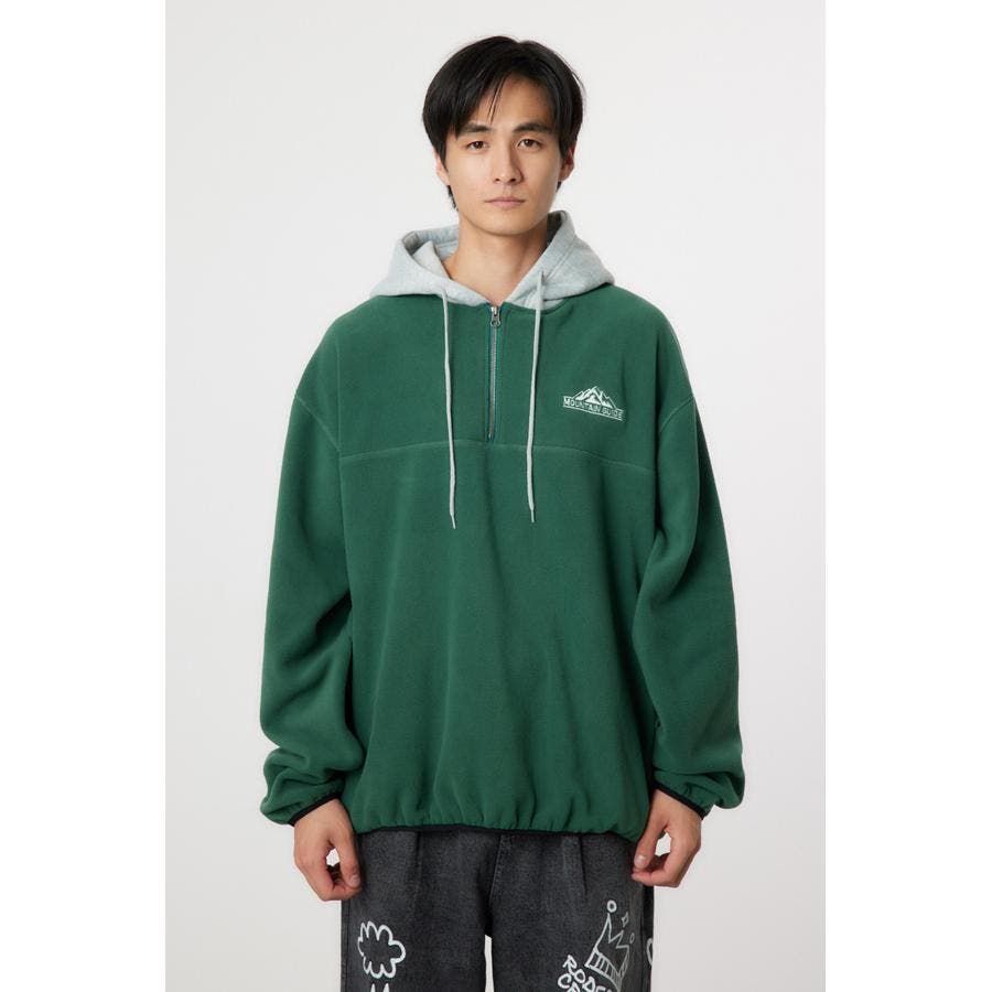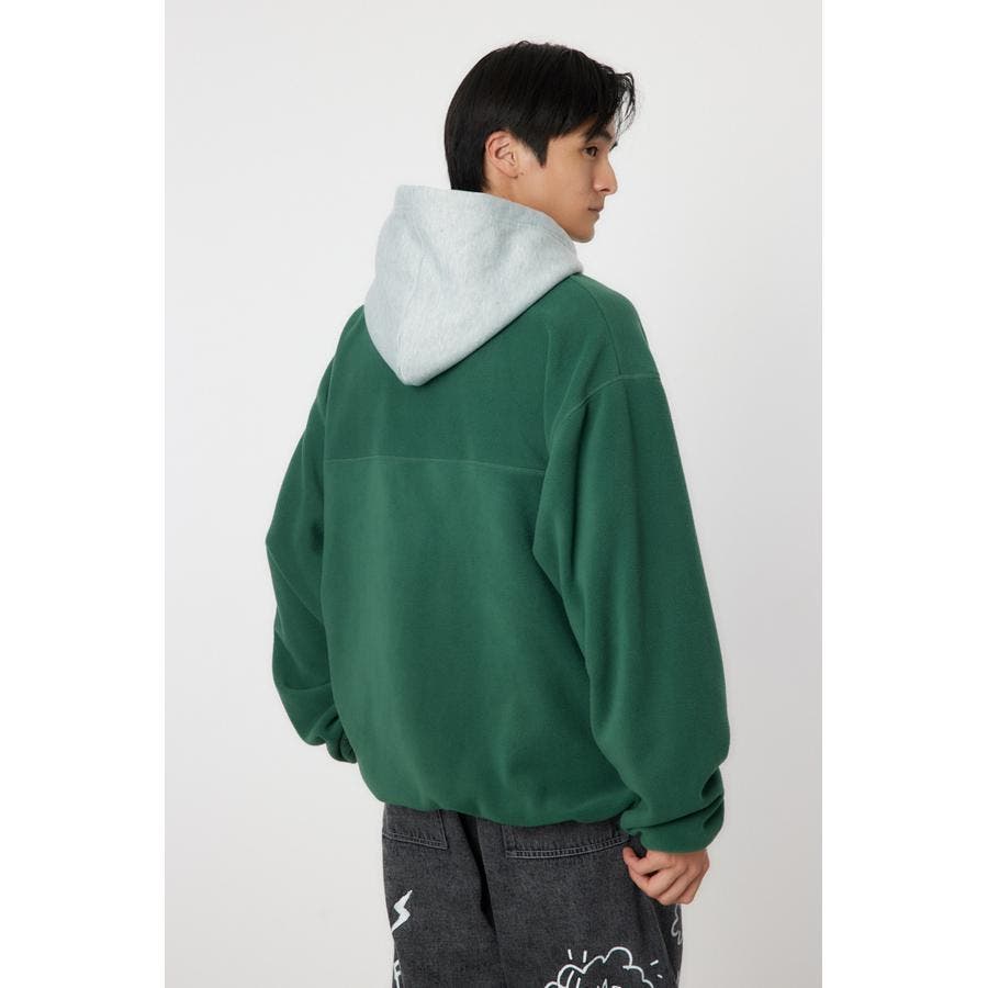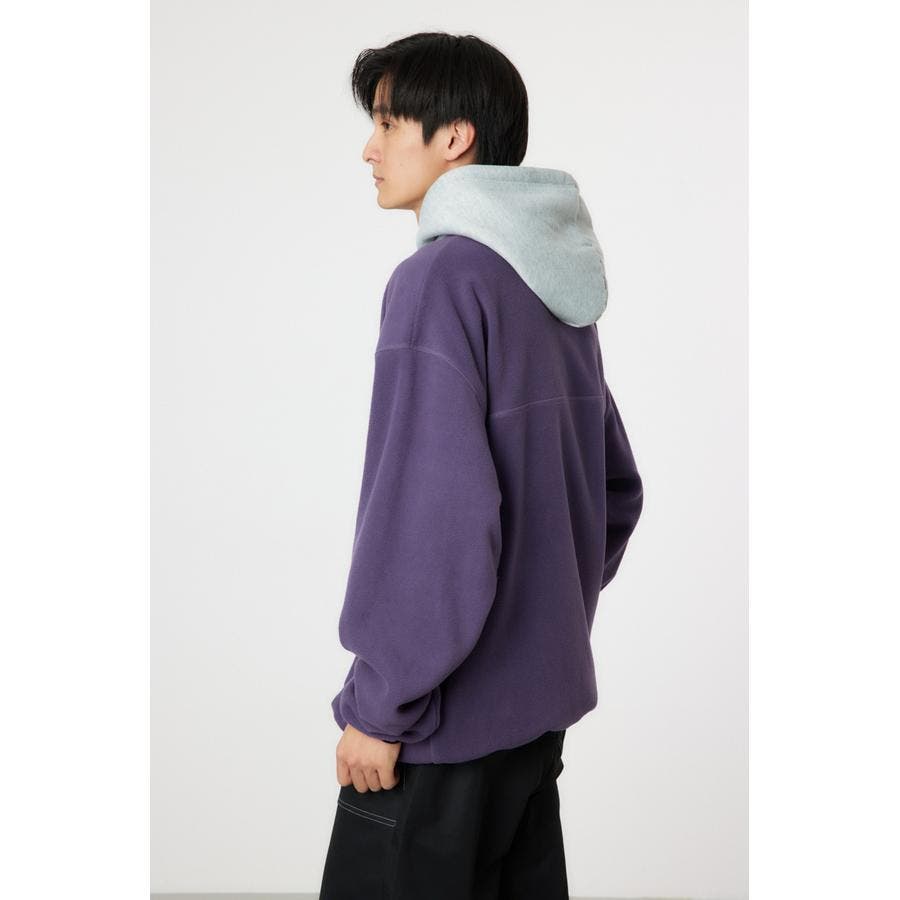 裏毛のフードをドッキングしたアノラックタイプのフリース。アウトドアスタイルのようにさらりと着こなせます。