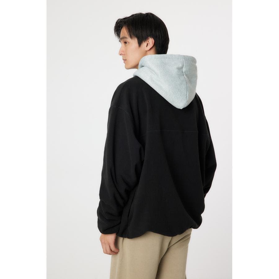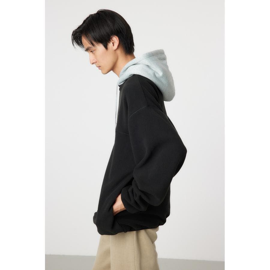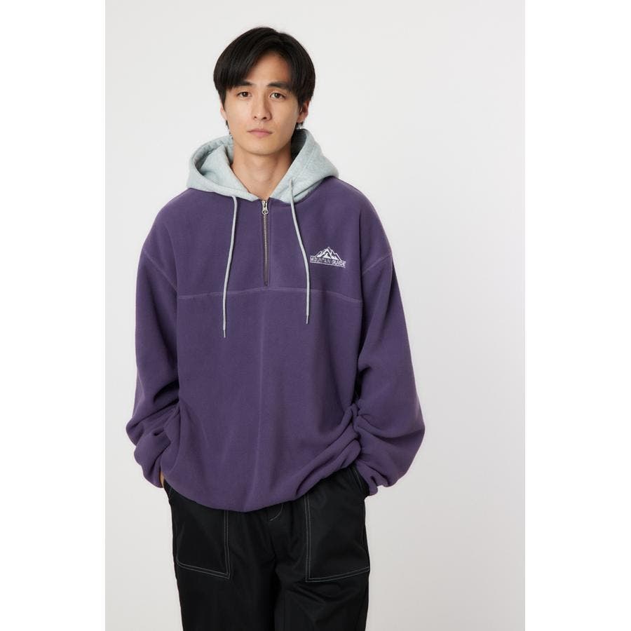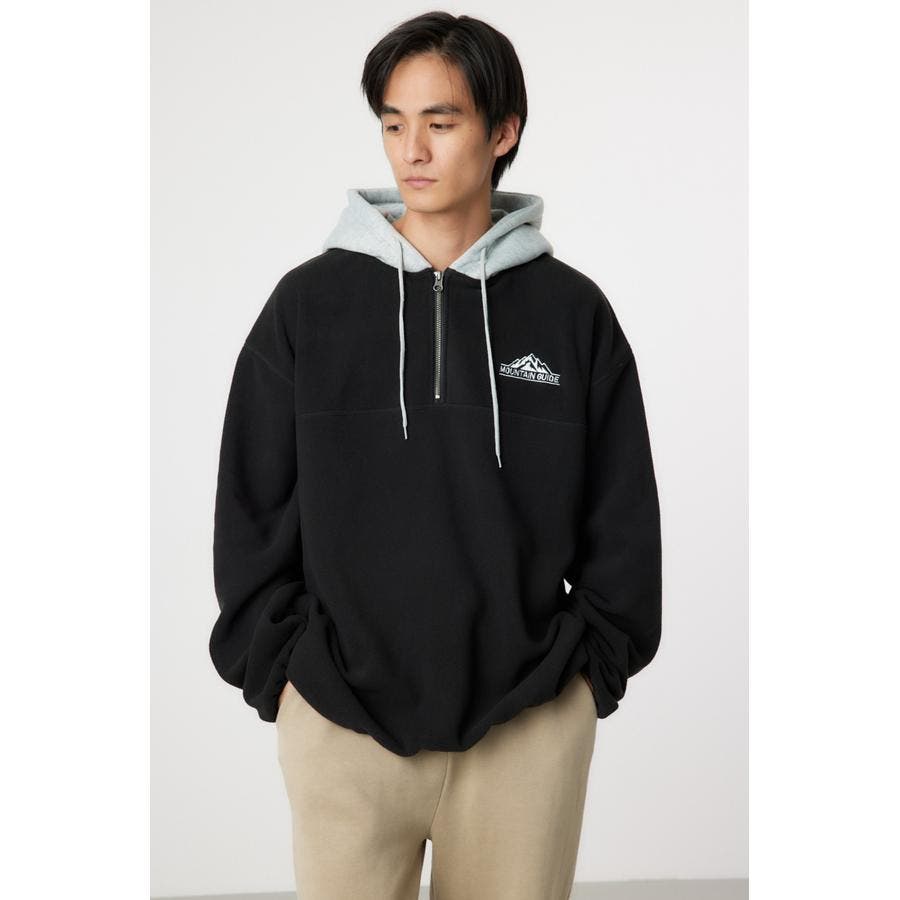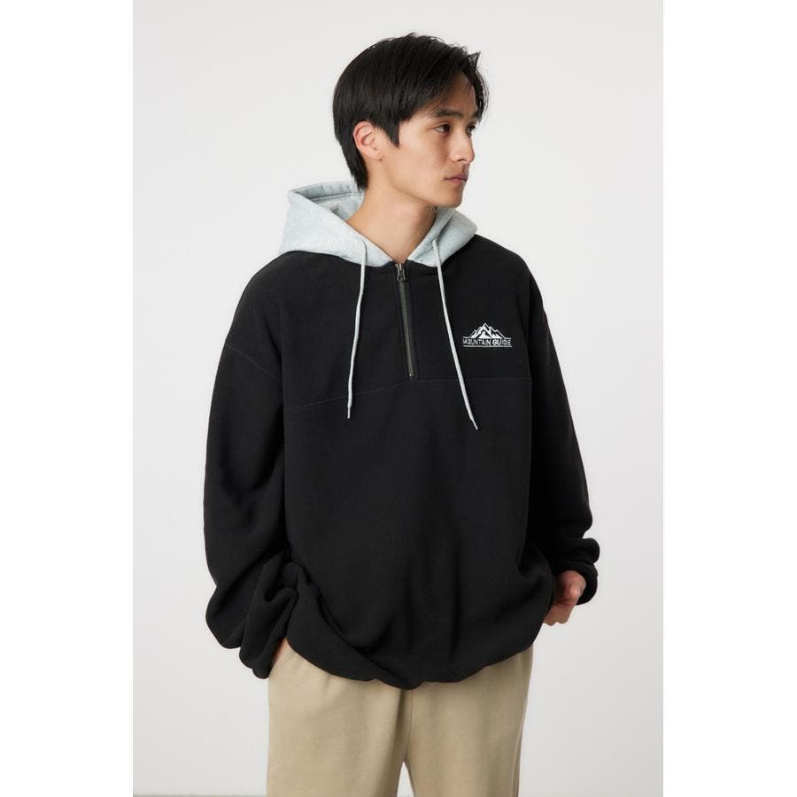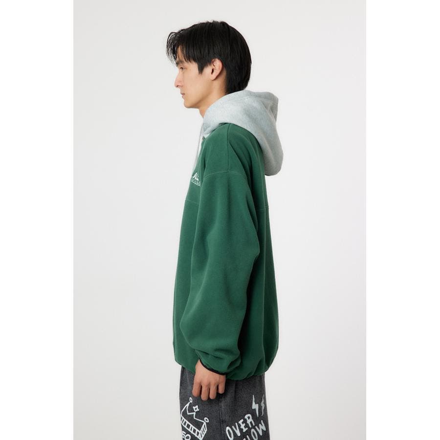 裏毛のフードをドッキングしたアノラックタイプのフリース。アウトドアスタイルのようにさらりと着こなせます。