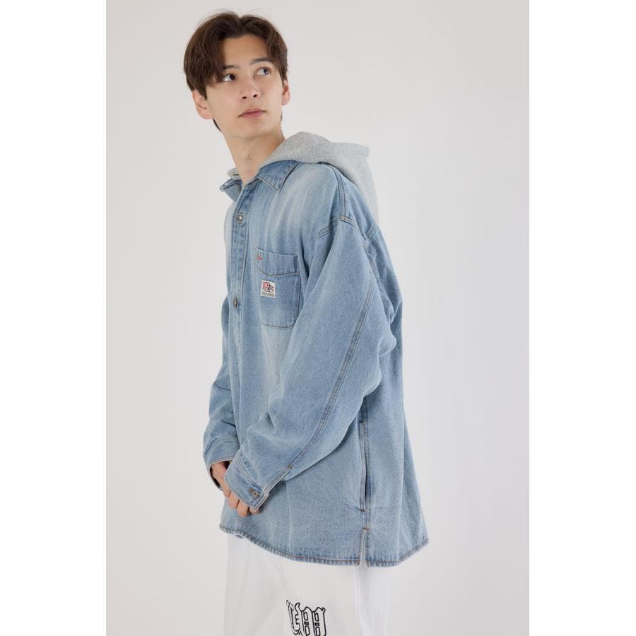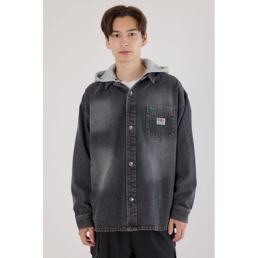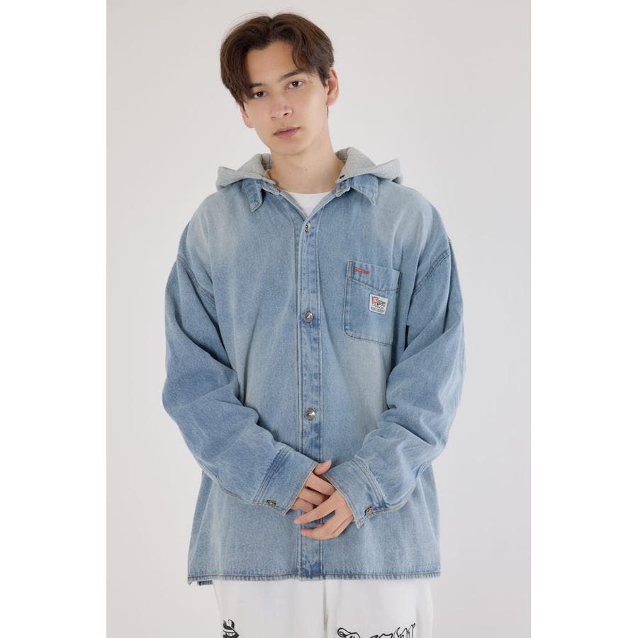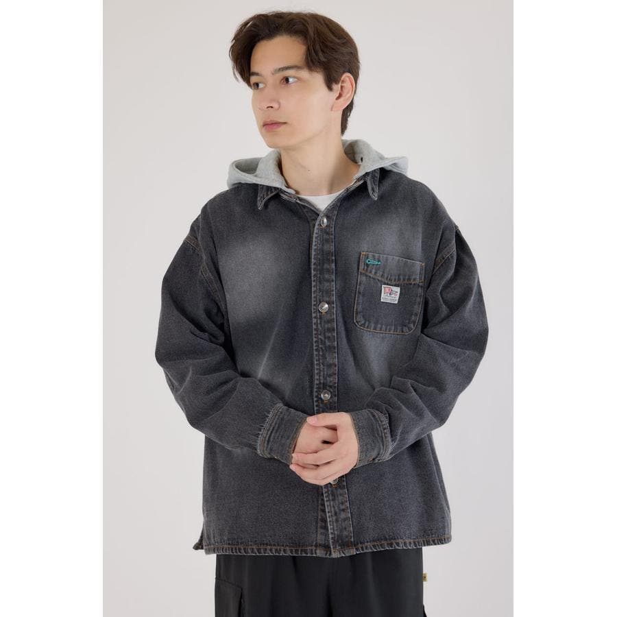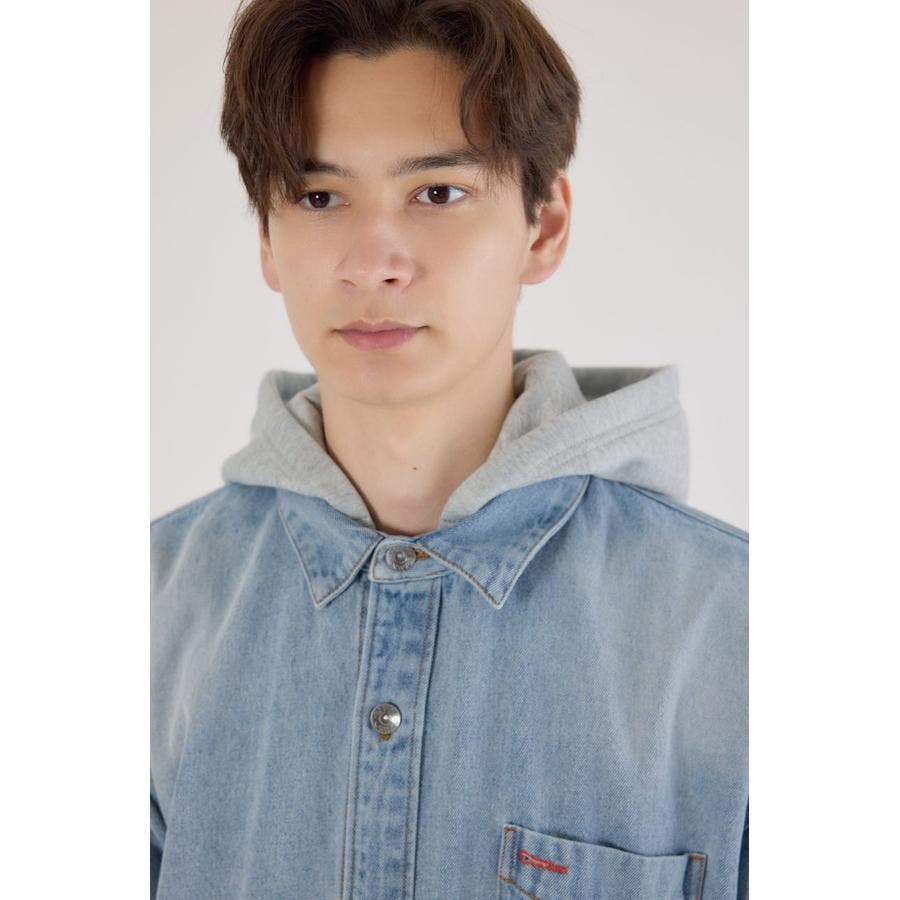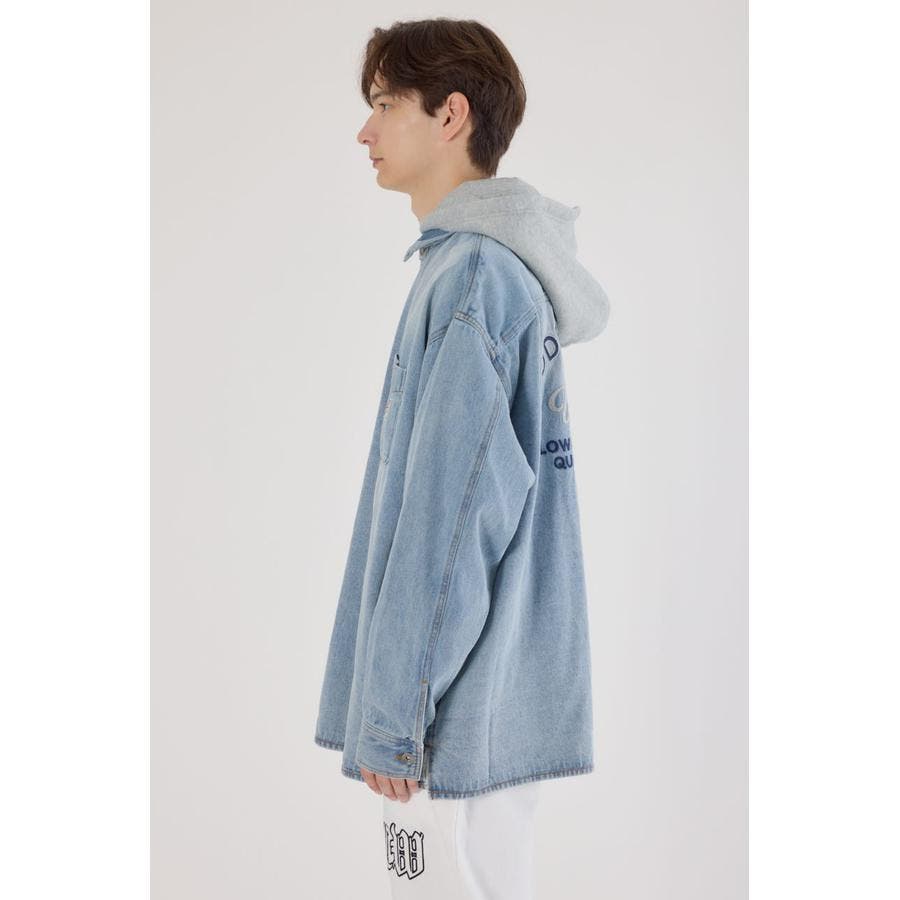 しっかりとしたデニム生地を使用したフード付きのデニムシャツジャケット。