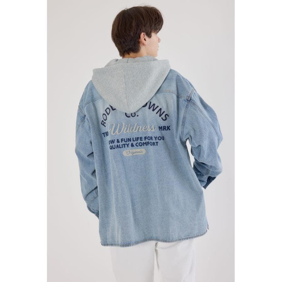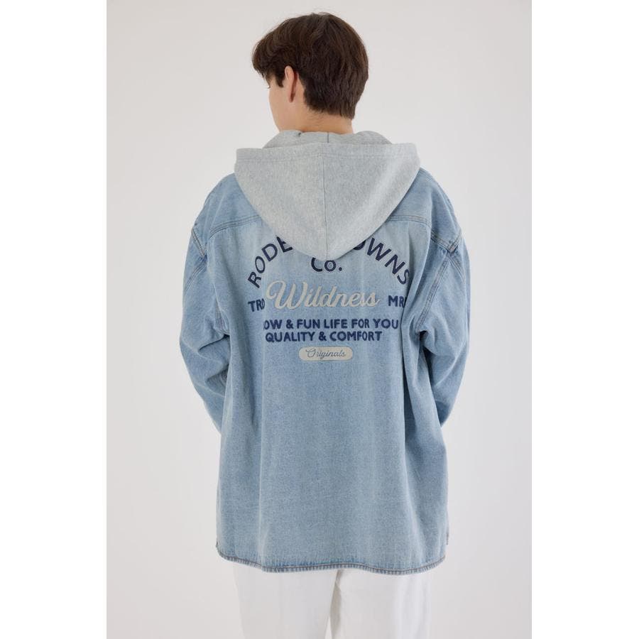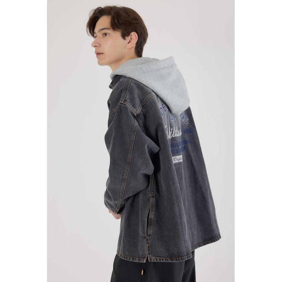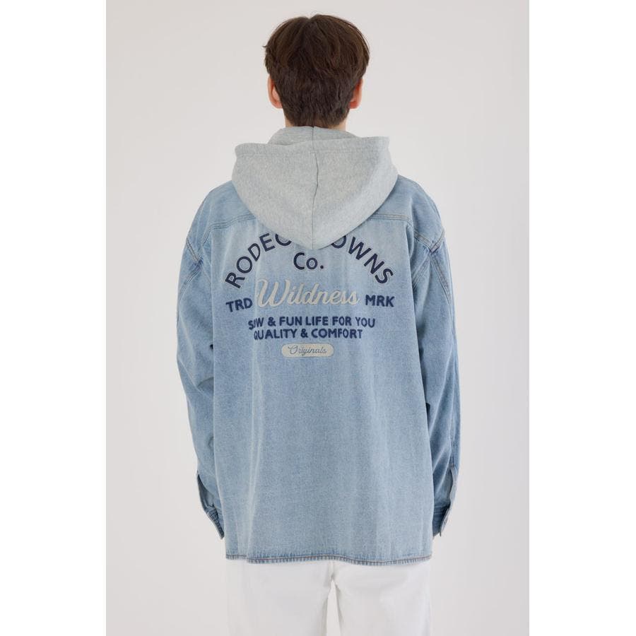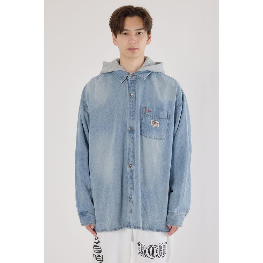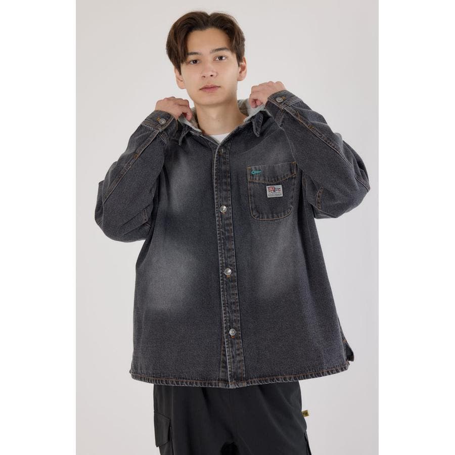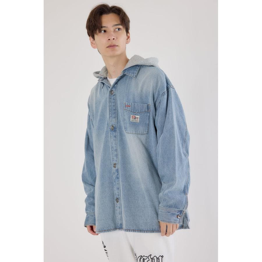 しっかりとしたデニム生地を使用したフード付きのデニムシャツジャケット。