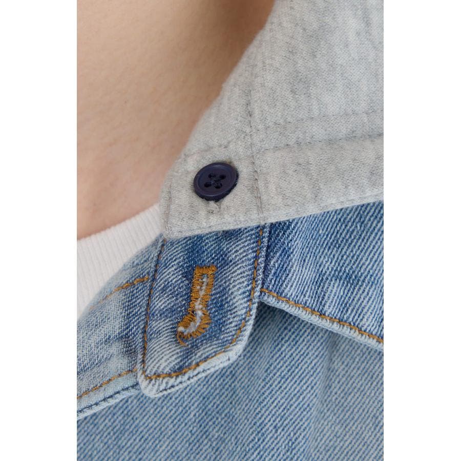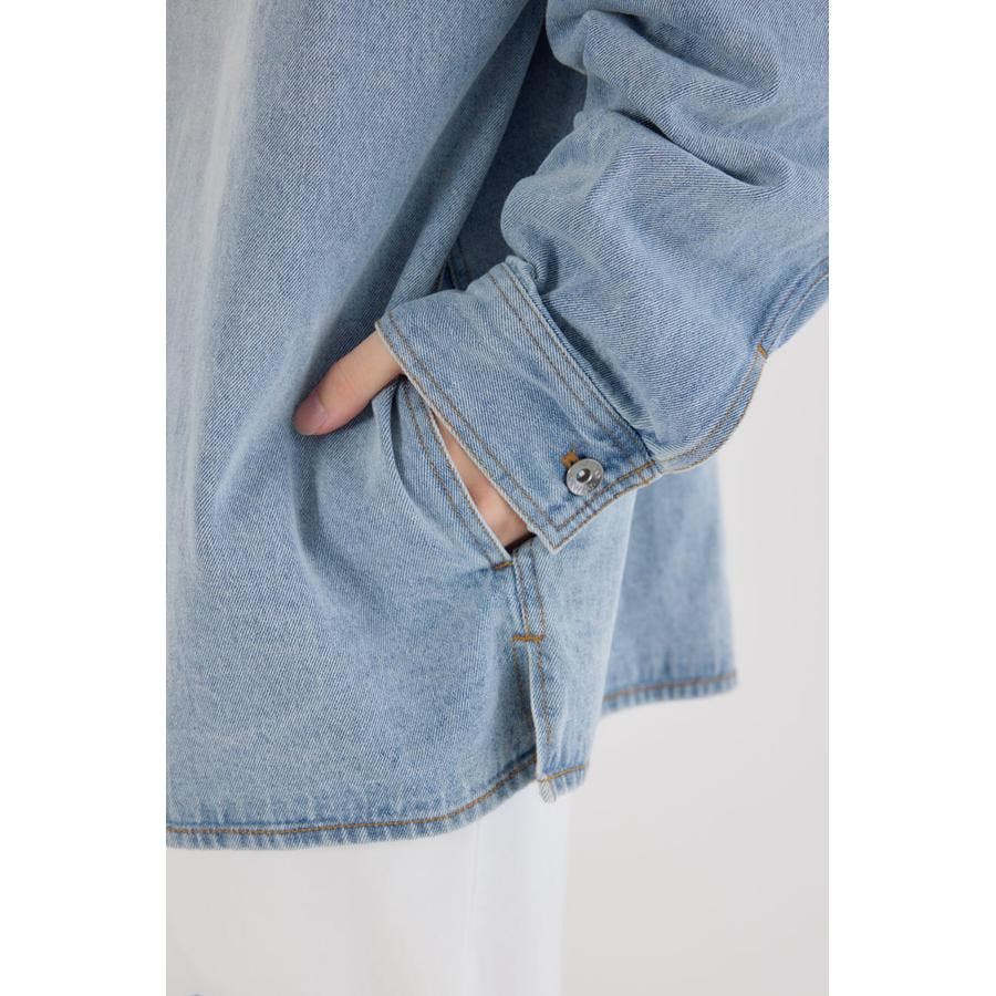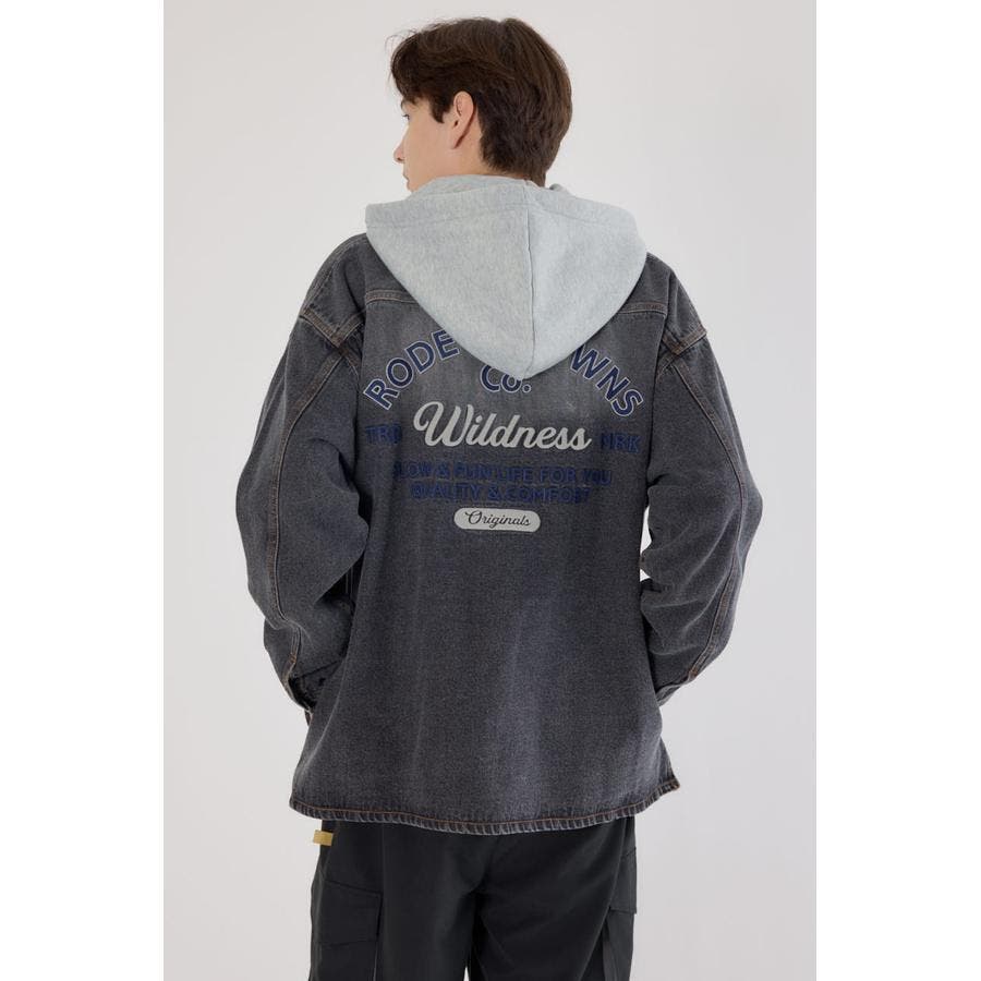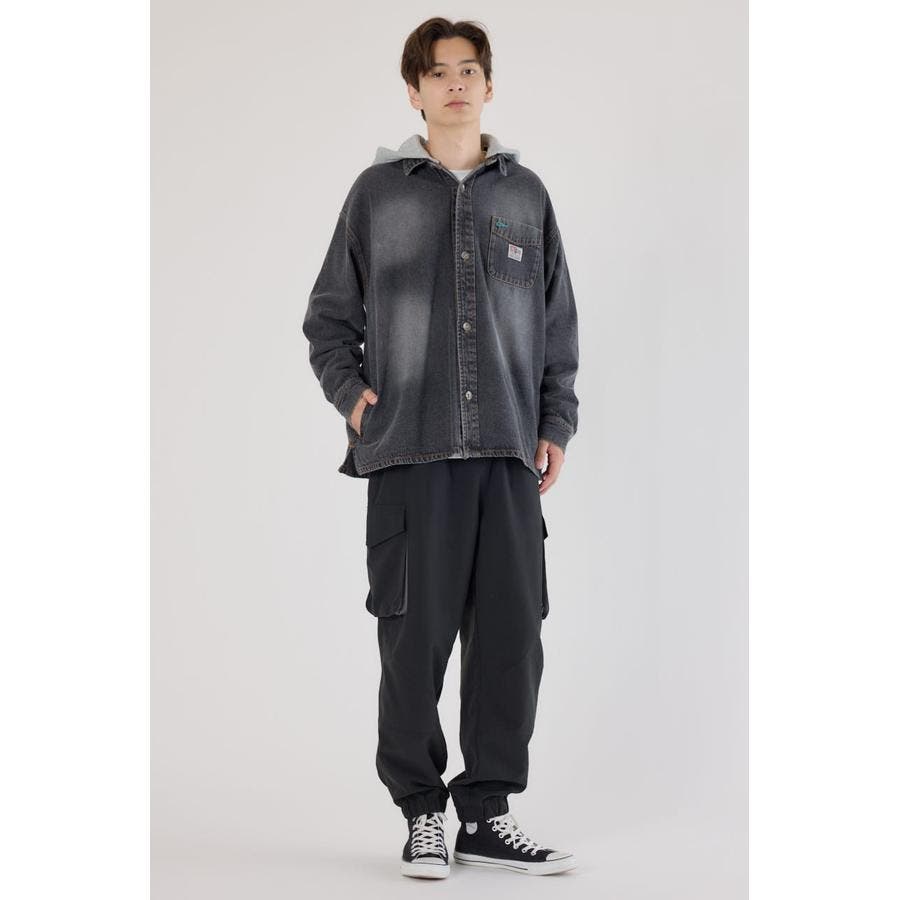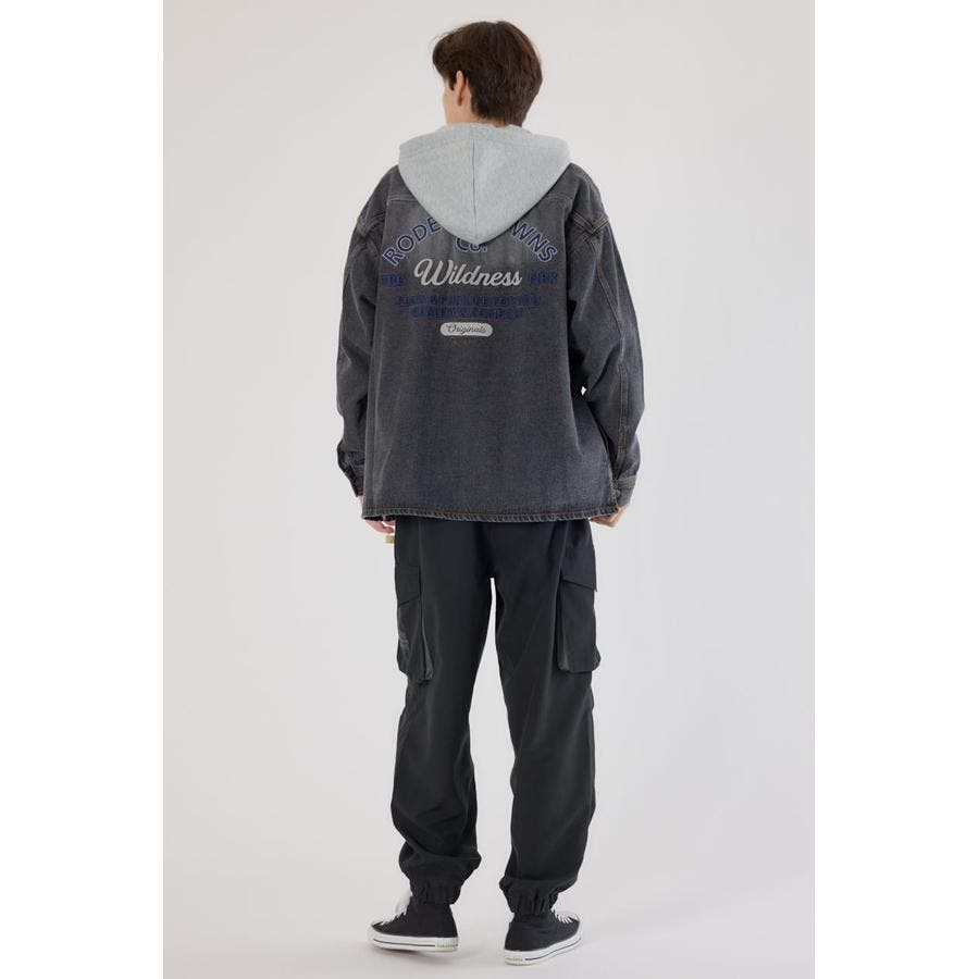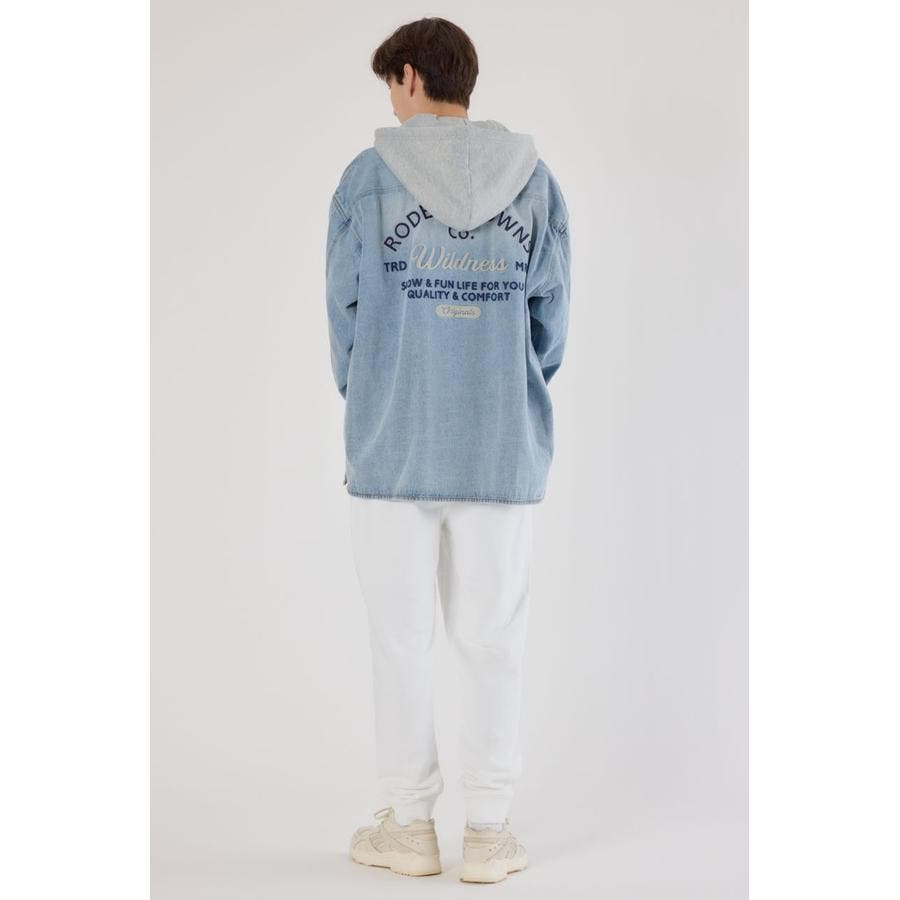 しっかりとしたデニム生地を使用したフード付きのデニムシャツジャケット。
